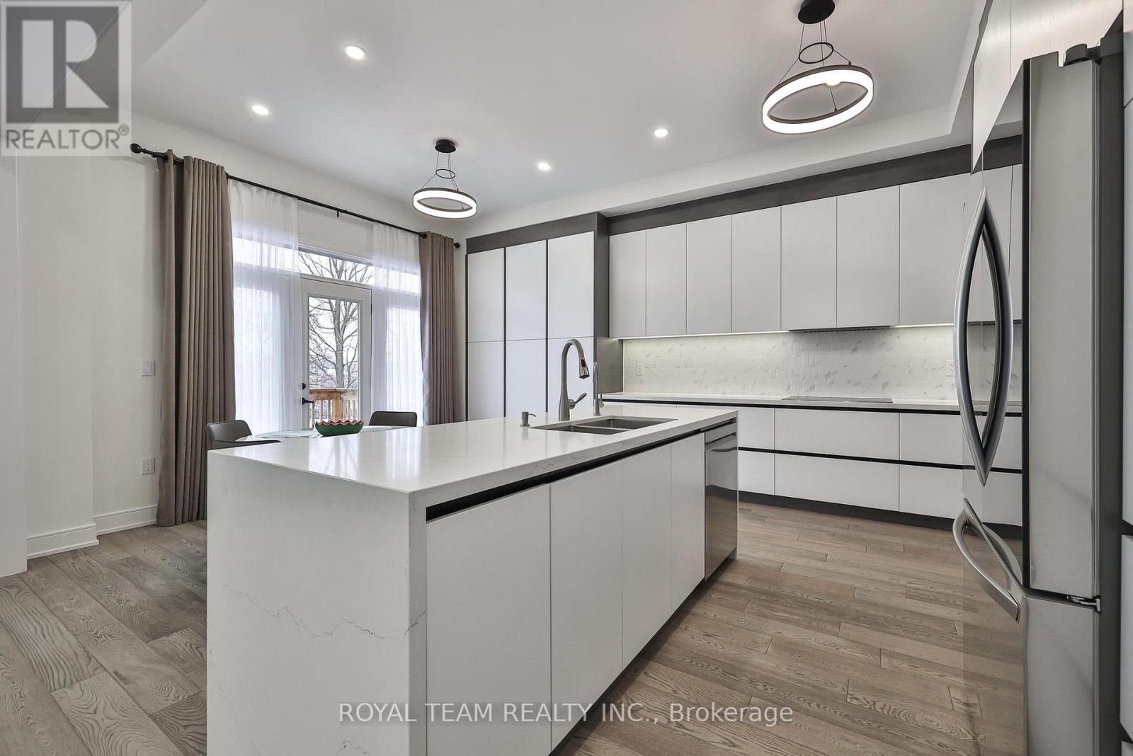 Welcome to this beautifully renovated home tucked away on a quiet private street in a sought-after Innisfil neighbourhood, backing onto peaceful greenspace. Offering a highly functional layout with a seamless flow, this home blends modern finishes with everyday comfort.The main floor features 10-ft ceilings and 8-ft interior doors, creating a bright, open feel throughout. Engineered white oak hardwood floors, smooth ceilings, pot lights, and custom wainscoting add warmth and a clean, elevated look.The open-concept kitchen is designed for both daily living and entertaining, complete with a large quartz waterfall island, custom floor-to-ceiling cabinetry, built-in appliances, and ample storage. The breakfast area walks out to a spacious deck overlooking serene green views.A dedicated home office provides the perfect work-from-home setup. The walk-out basement offers excellent potential for additional living space or income.Located just minutes to Lake Simcoe, parks, schools, and everyday amenities, this is a great opportunity to enjoy modern living in a quiet, nature-filled setting! (id:64974)