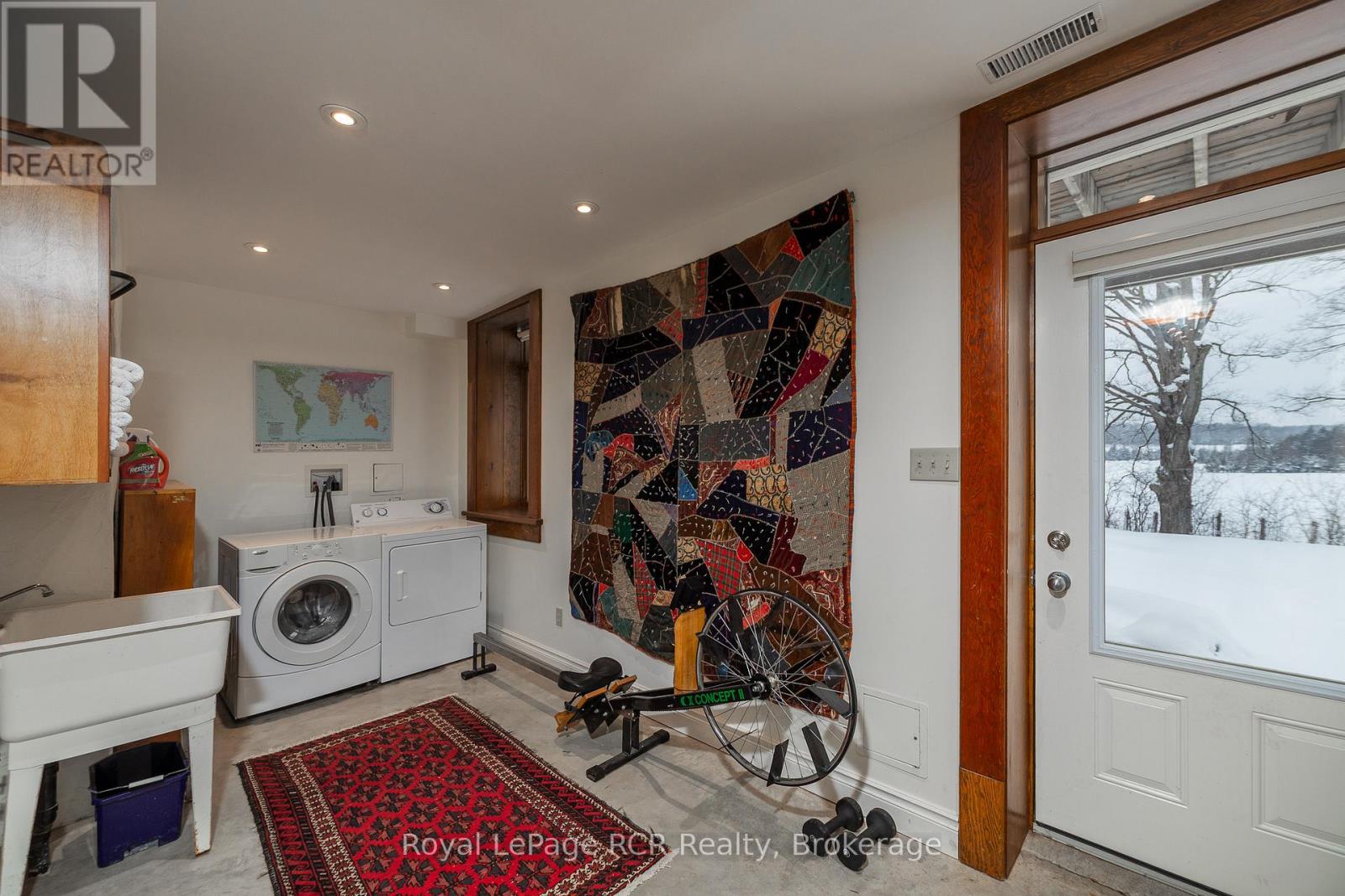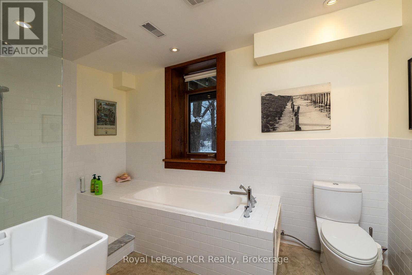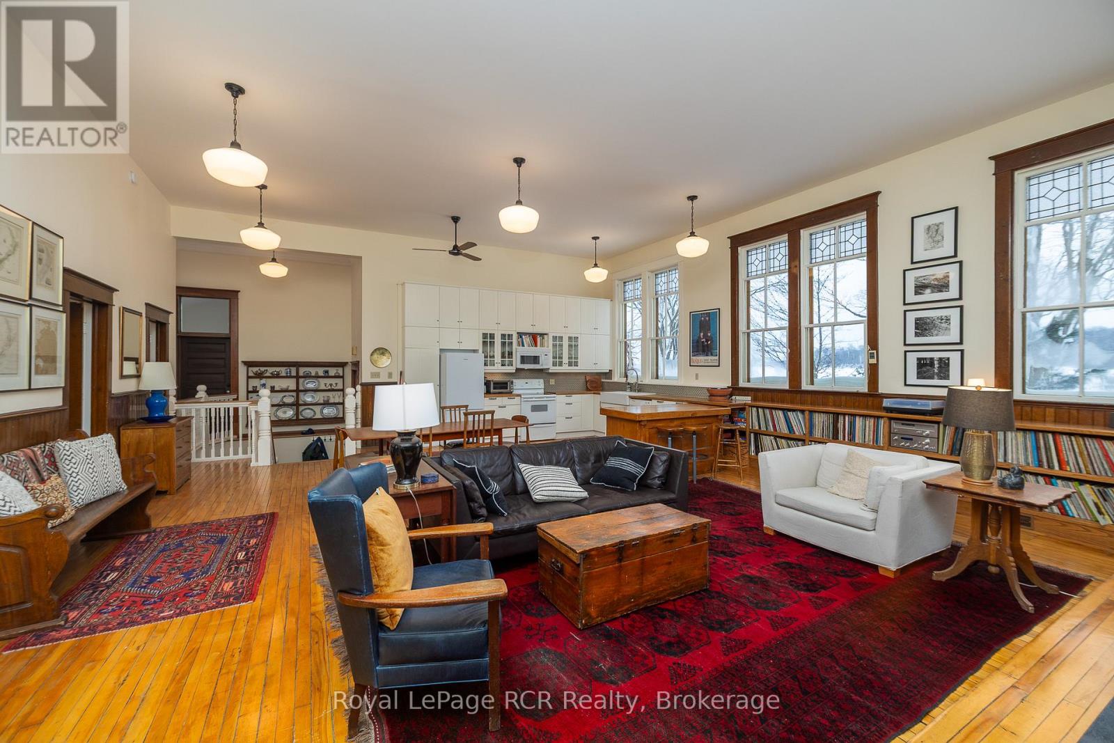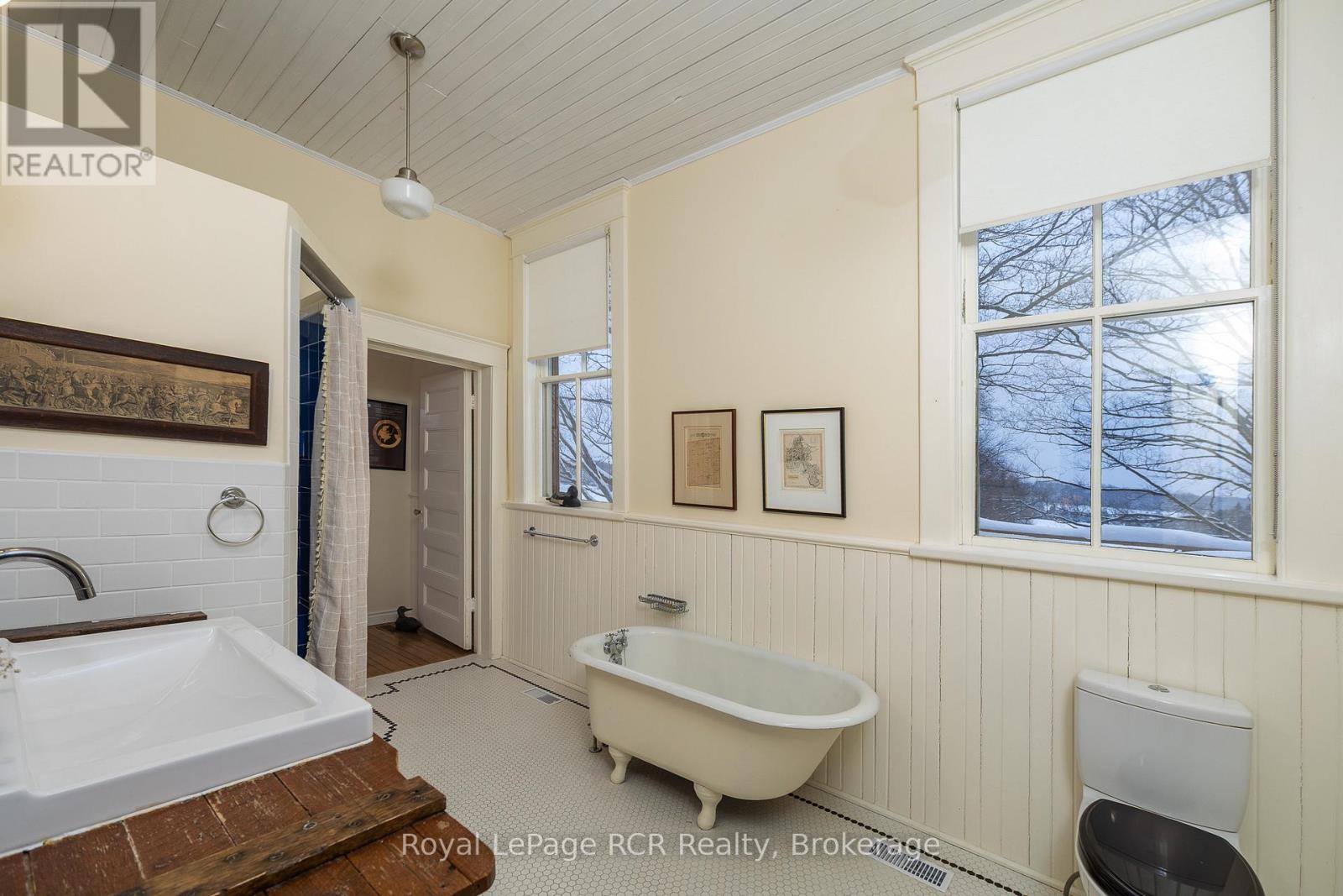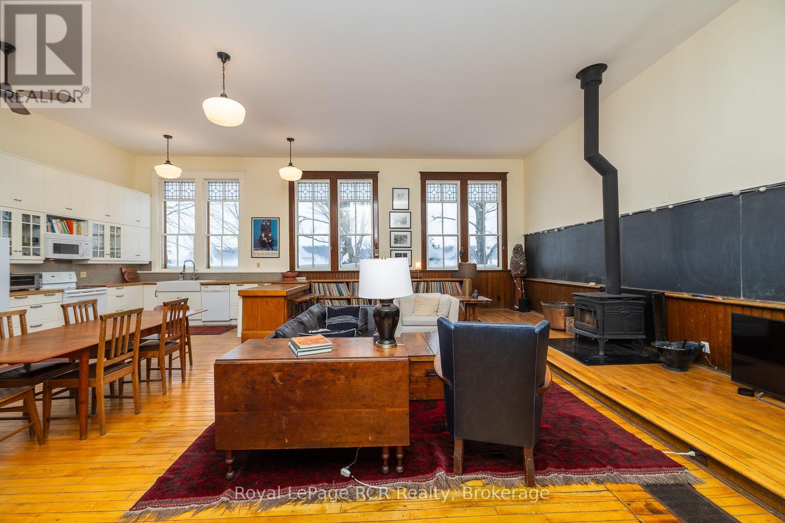 2 storey brick schoolhouse on a paved road with country views. Modern amenities and upgrades enhance the original features of this home with nearly 3,000 square feet of living space. The open living area, including kitchen and dining measures 26x31'3 with high ceilings and stylish windows providing lots of natural light. There are 3 bedrooms on this level, one being a little smaller that was the original infirmary. The full bath features a shower and a claw foot tub. Walk-out to the back deck with sunset views. The lower level is completely finished and is almost entirely above-grade. Featuring a family room, three bedrooms, a modern 4 piece bath and laundry room, there is also a workspace and walkout to the hottub. With forced air propane, a/c, in floor radiant on the lower level, heat pump and wood-stove fireplace, the home is well prepared for any season. An attached garage was built in 2008 providing additional storage, an ev charger. Set-up for in-floor heat (not connected). Convenient location is about as central to all things Grey County as it gets: Meaford 15 minutes, Blue Mountain 25 minutes, Markdale 15 minutes. (id:64974)