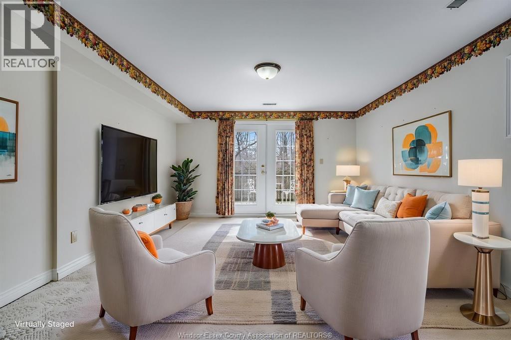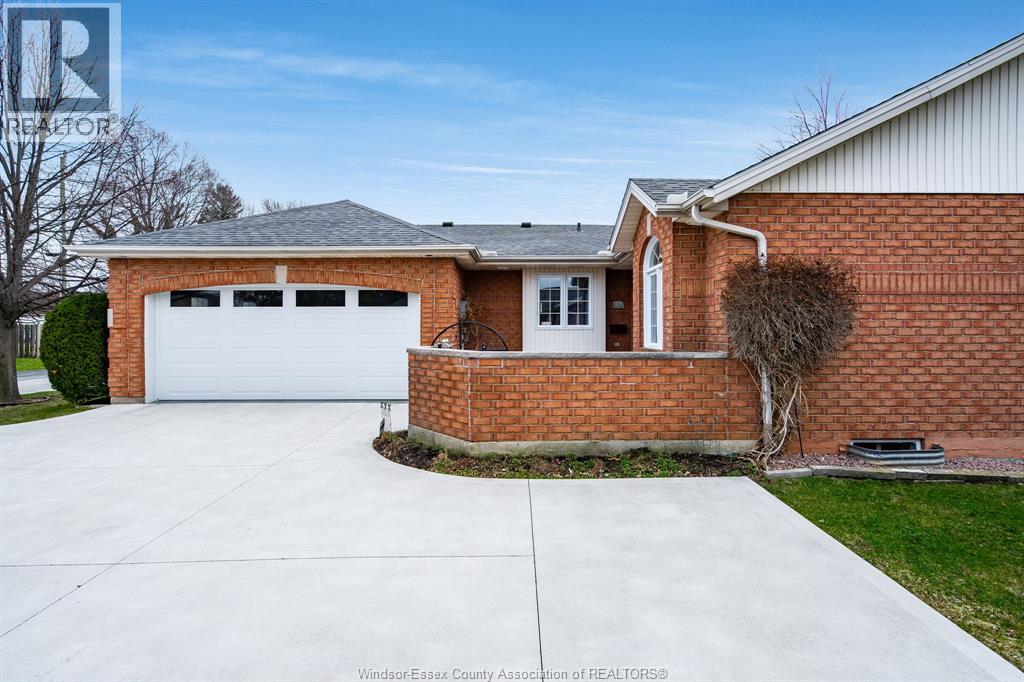 Rare opportunity to own an adult-oriented ranch-style end unit condo with walkout basement and no rear neighbours. This well-maintained 3-bedroom home features extra side windows for added natural light and a spacious layout with a kitchen offering ample storage, pantry with laundry, dining area, and living room with cozy gas fireplace. The large primary bedroom includes a walk-in closet, and the 5-piece main bath adds comfort and functionality. Enjoy a covered balcony overlooking Mill Creek and a peaceful wooded setting, perfect for enjoying a morning coffee or evening glass of wine. The finished basement offers a generous family room with walkout to sundeck, covered patio, 3rd bedroom, 4-piece bath, abundant storage, and separate entrance from the garage for added functionality. Extended cement driveway fits up to 4 cars. Located in the heart of Kingsville, just a short walk to shops, restaurants, parks, and amenities. (id:64974)