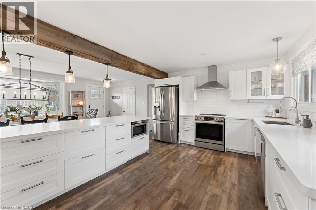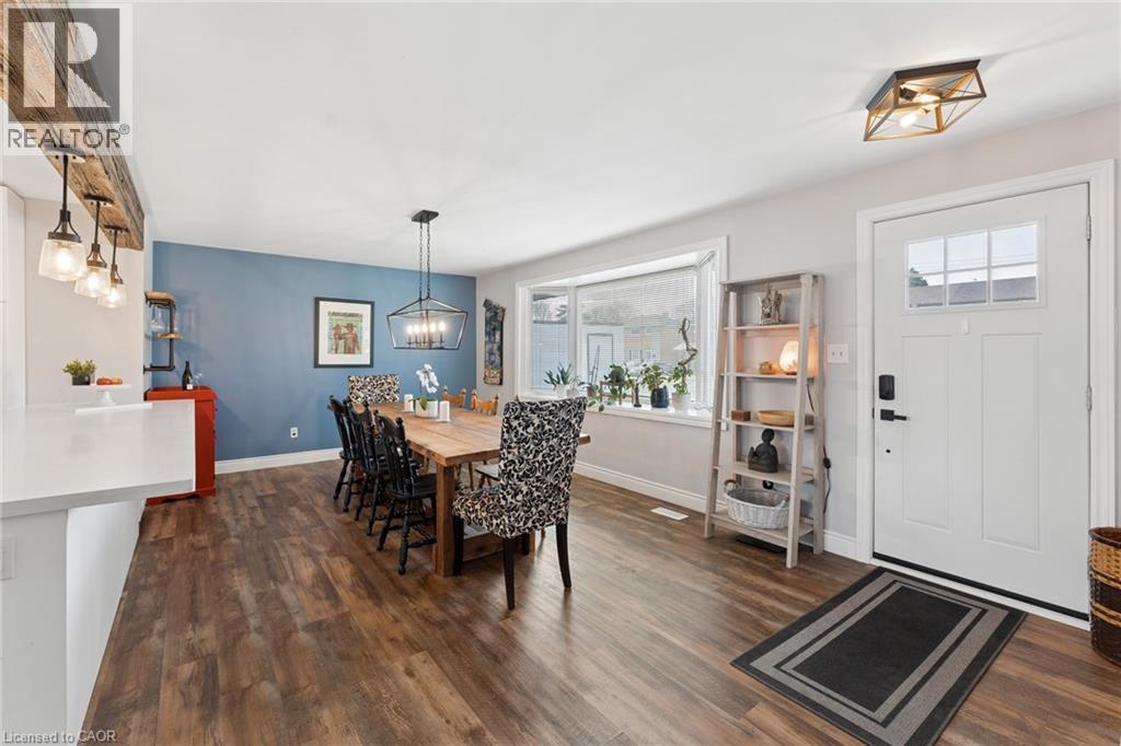 Welcome to 137 Donald Street, a well maintained bungalow in a quiet, established, family friendly neighbourhood known for its convenience and strong sense of community. With great curb appeal, a large lot, and interior and exterior updates already completed, this move in ready home shows pride of ownership from the moment you arrive. A bright main floor features an open layout filled with natural light. The kitchen offers modern finishes with a subtle rustic feel, a large peninsula, great storage, and a spacious dining area ideal for everyday living or hosting. The living room is a true highlight… generous in size, beautifully updated, and both modern and cozy. Custom built ins, a fireplace, and sliding doors to the backyard create a warm space that easily becomes the heart of the home. Five bedrooms and two full bathrooms provide flexibility, with three bedrooms on the main floor and two downstairs, ideal for families, guests, or home office space. The lower level also features a large bonus family room with a second fireplace and brick surround, creating a comfortable second living area. The fully fenced backyard offers a quiet and private feel with great space to enjoy without heavy maintenance, right in the heart of the city. A brand new deck, hot tub, and storage shed add function, while the newly paved driveway (2024) fits four cars plus the single garage. This home is close to downtown Kitchener, and is walking distance to all school levels, plus a community pool, library, and the Kitchener Auditorium. Close to shopping, restaurants, parks, transit, and minutes to both East an West Expressways, with easy drives to Waterloo, Guelph, and Cambridge. (id:64974)