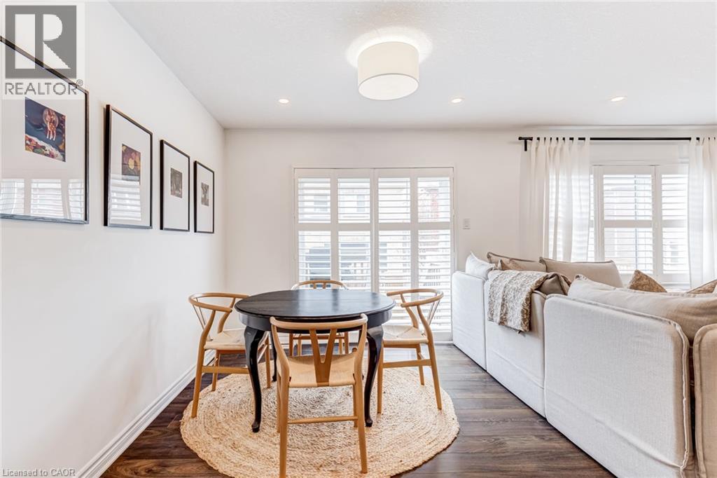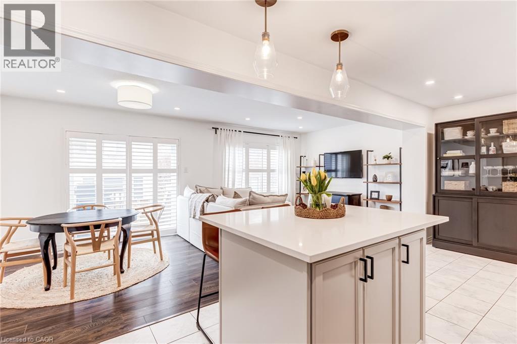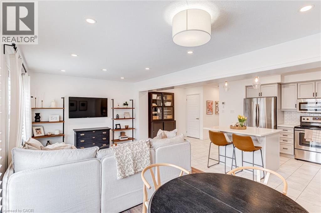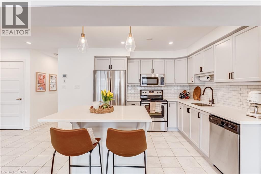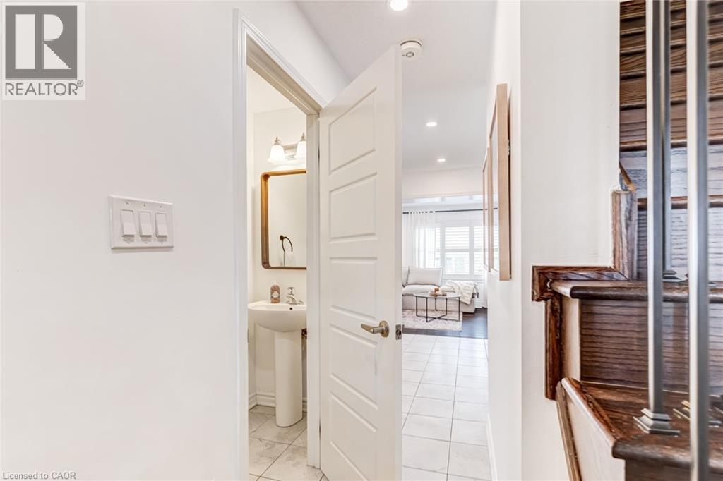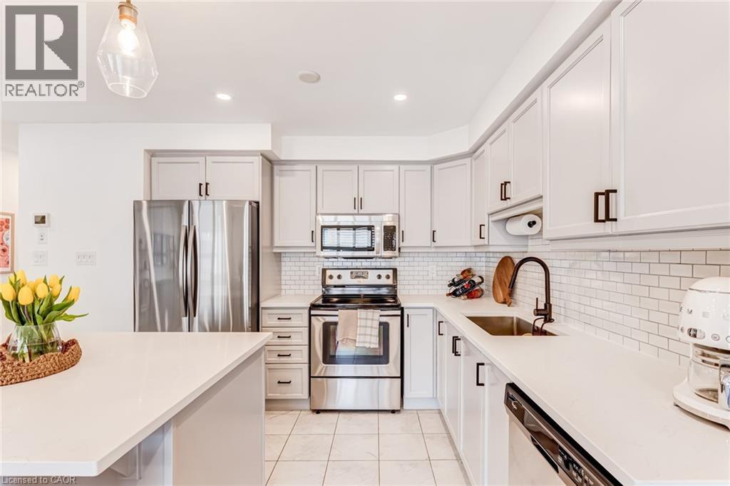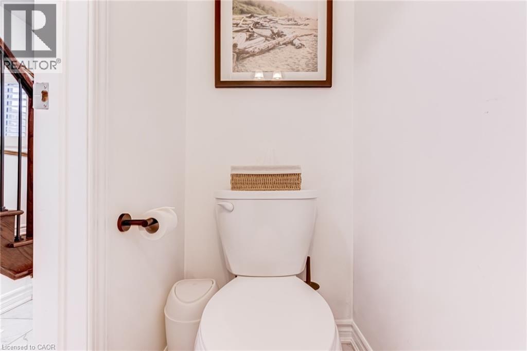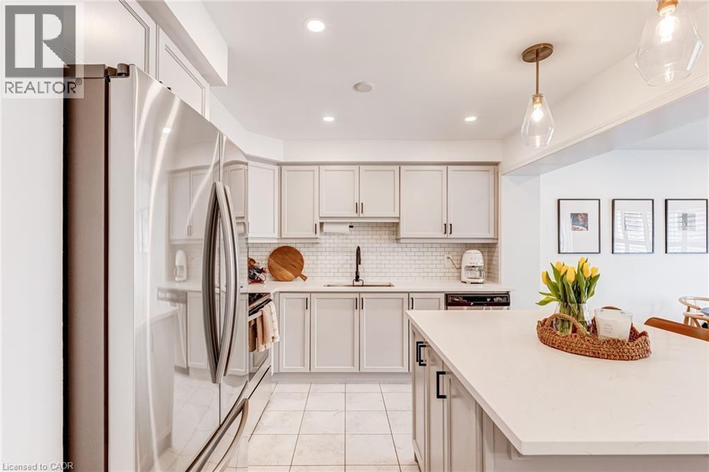 FREEHOLD 2-storey home in the charming neighbourhood of Waterdown East! This 3 bedroom, 2.5 bathroom home has just under 1400 square feet and has been wonderfully maintained. The main floor has been refined with tasteful updates throughout ownership. The kitchen features painted cupboards with upgraded hardware, stone countertops with a stainless steel under-mount sink, stainless steel appliances and a large kitchen island with added seating. The spacious dining/living room boasts a flexible layout with two options for a dining area, cozy lounging space and a walk-out to the backyard. The main level is complete with a 2-piece powder room, smooth ceilings, neutral colour palette and pot lights. The second level has great functionality with 3 spacious bedrooms and an additional 4-piece bathroom. The primary bedroom features amazing storage with TWO large walk-in closets and a 4-piece ensuite. The unfinished basement can be customized to any buyers wants and needs and adds an additional 600 square feet to the overall living space, with an oversized double window for plenty of natural light, laundry space and storage space. This property is situated at the back of a very quiet street with a large covered front porch, serene fully fenced backyard, 1-car garage and 2-car driveway. A short drive to all the restaurants and amenities of Downtown Waterdown, a quick walk to parks and trails. (id:64974)