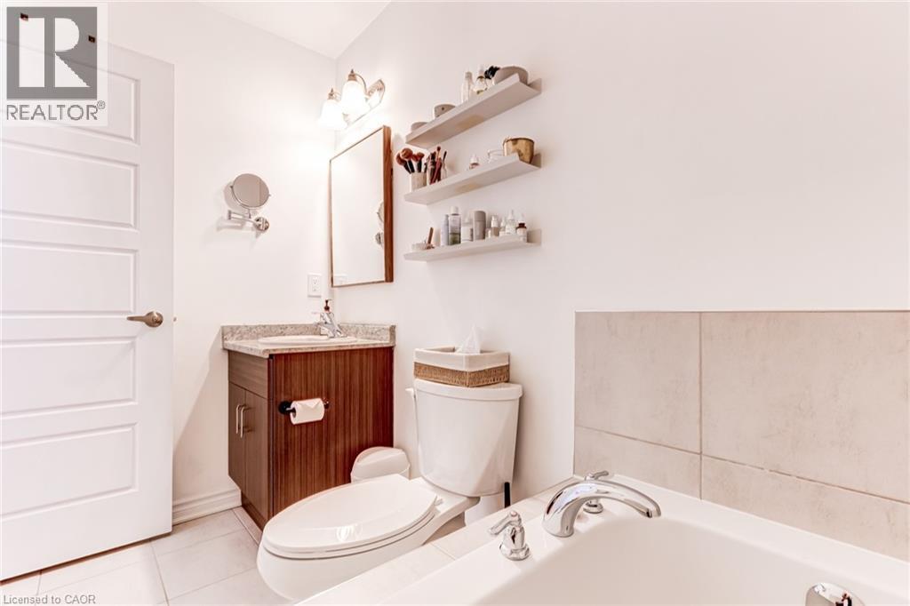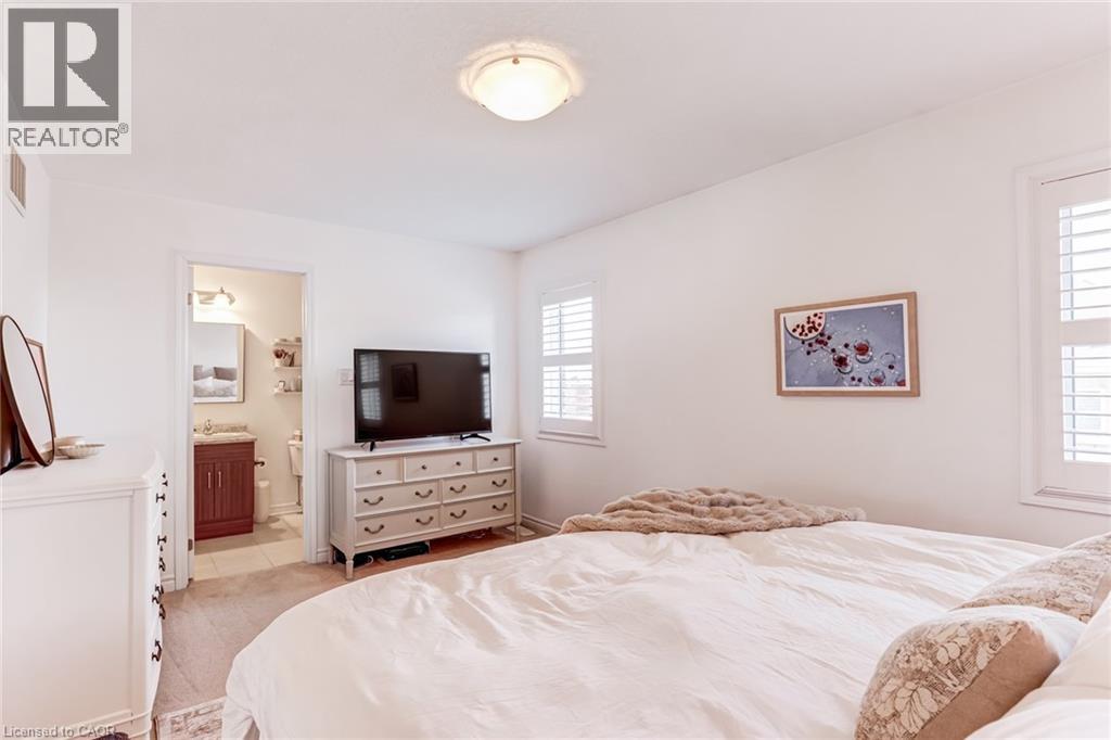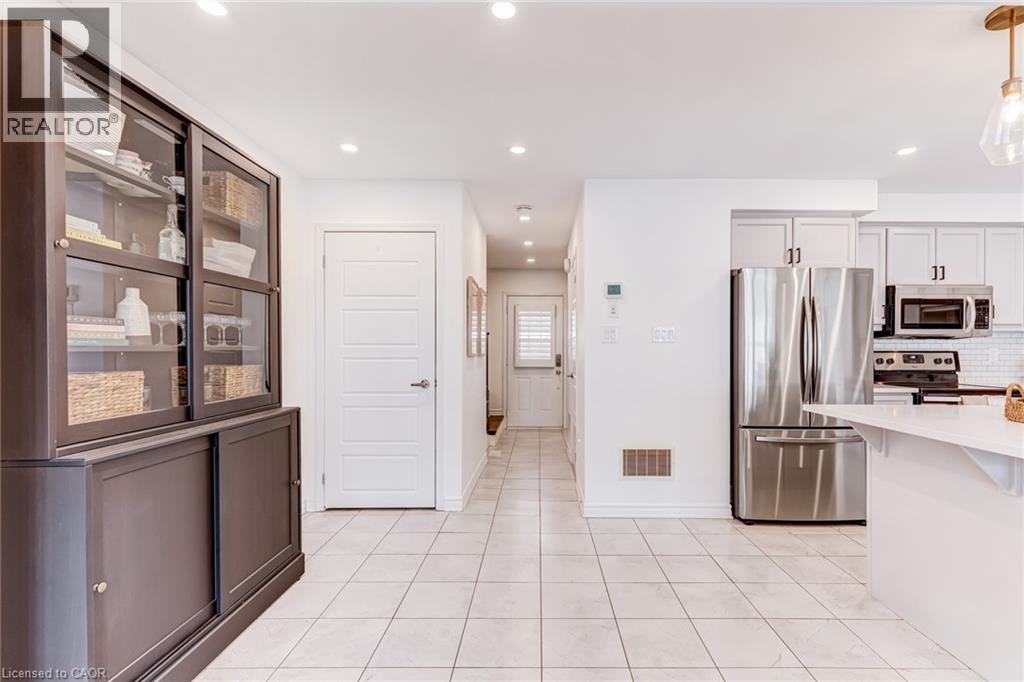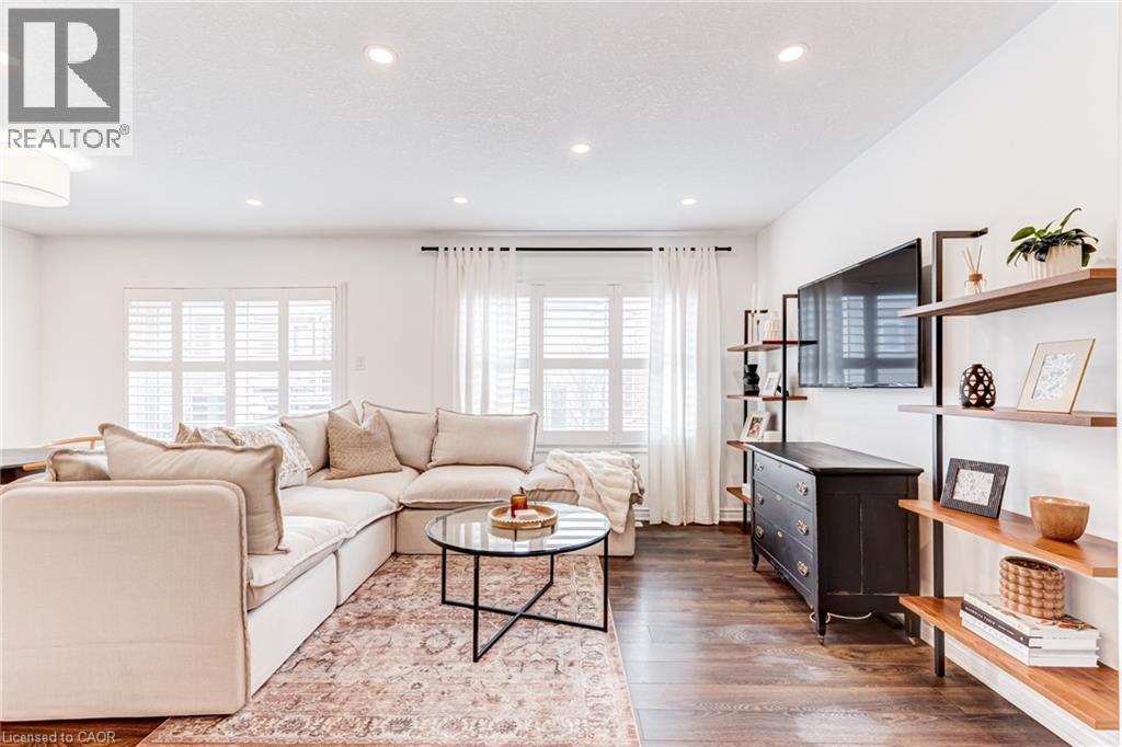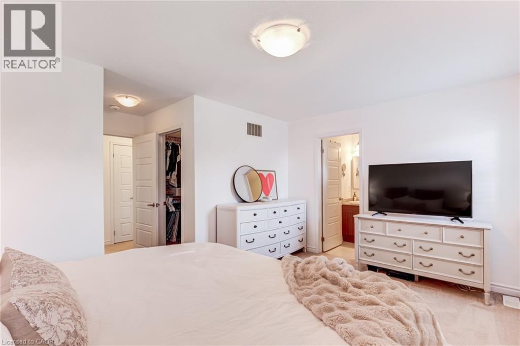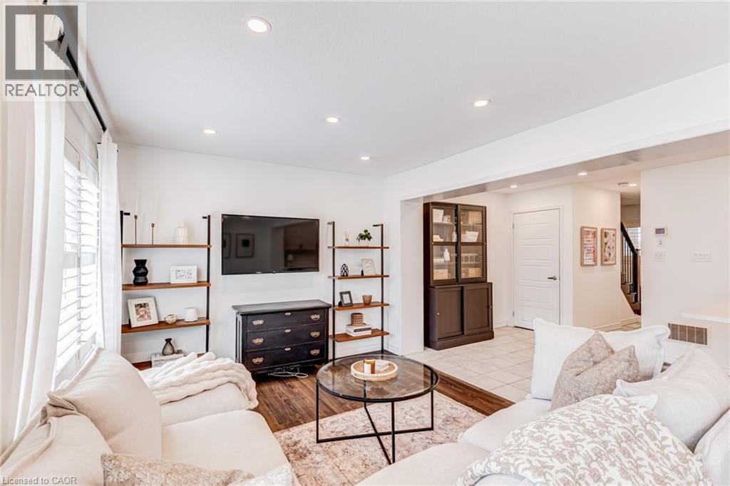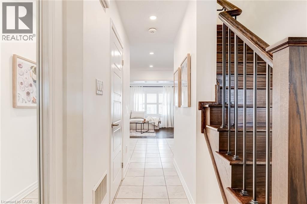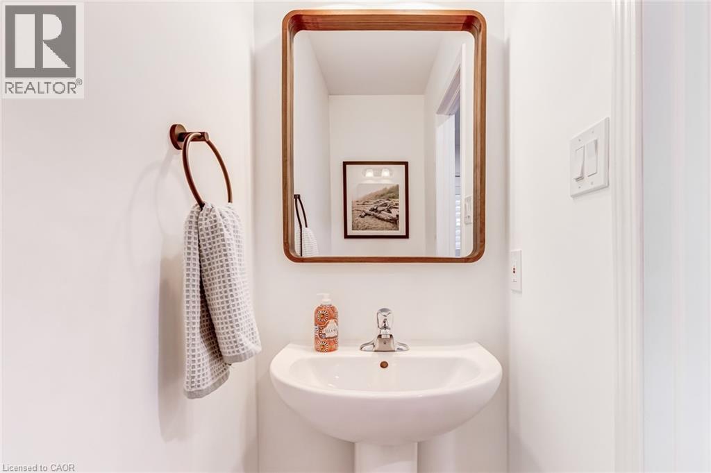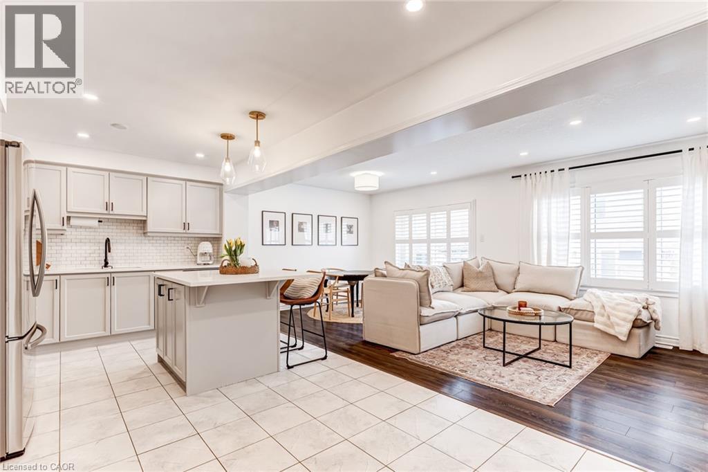 FREEHOLD 2-storey home in the charming neighbourhood of Waterdown East! This 3 bedroom, 2.5 bathroom home has just under 1400 square feet and has been wonderfully maintained. The main floor has been refined with tasteful updates throughout ownership. The kitchen features painted cupboards with upgraded hardware, stone countertops with a stainless steel under-mount sink, stainless steel appliances and a large kitchen island with added seating. The spacious dining/living room boasts a flexible layout with two options for a dining area, cozy lounging space and a walk-out to the backyard. The main level is complete with a 2-piece powder room, smooth ceilings, neutral colour palette and pot lights. The second level has great functionality with 3 spacious bedrooms and an additional 4-piece bathroom. The primary bedroom features amazing storage with TWO large walk-in closets and a 4-piece ensuite. The unfinished basement can be customized to any buyers wants and needs and adds an additional 600 square feet to the overall living space, with an oversized double window for plenty of natural light, laundry space and storage space. This property is situated at the back of a very quiet street with a large covered front porch, serene fully fenced backyard, 1-car garage and 2-car driveway. A short drive to all the restaurants and amenities of Downtown Waterdown, a quick walk to parks and trails. (id:64974)