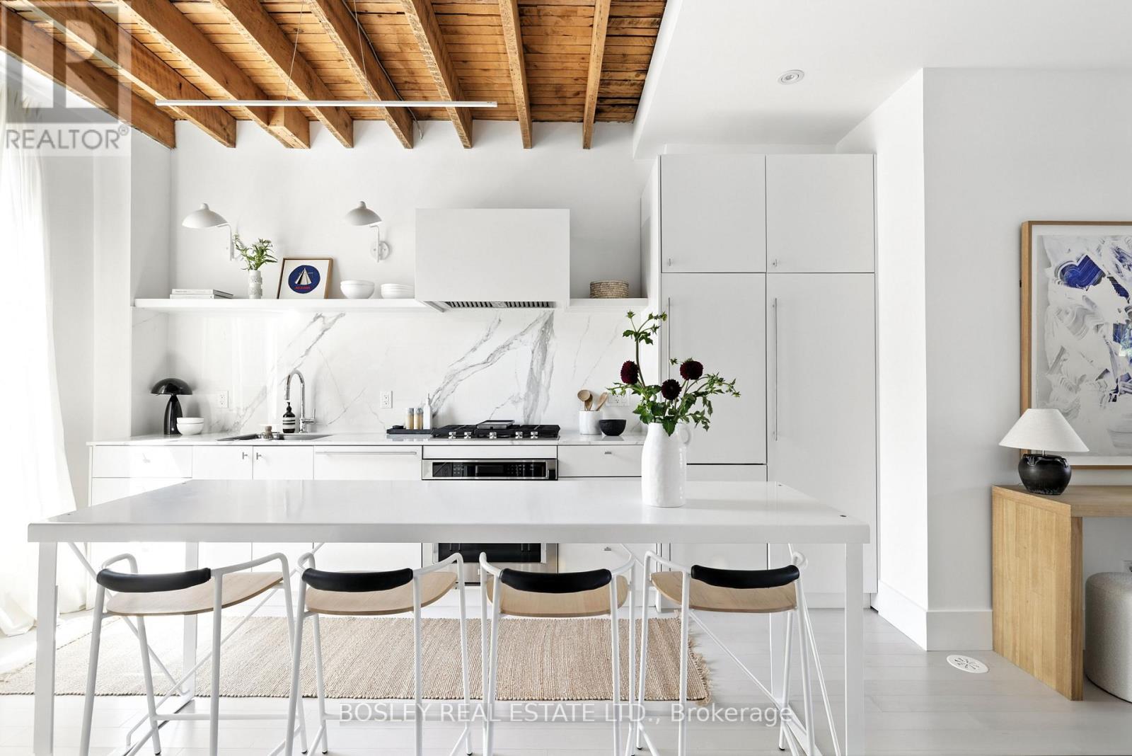 Bold by design and playful by nature, 137 Munro Street makes an unforgettable first impression. Beautifully transformed, this home showcases a renovation guided by intention, craftsmanship and thoughtful design. Positioned at the end of a row, the home enjoys the privacy and presence of a semi-detached. Step into the airy custom kitchen, where natural wood beams juxtapose timelessly against white cabinetry and porcelain surfaces. A fireplace anchors the gallery connecting the kitchen & living area, while just across the hall, the powder room delights with terrazzo wallpaper that pops against the home's natural palette. Unwind beside full-height, black-framed glass doors that flood the home with sunlight & offer a peaceful view of the private outdoor patio. Upstairs, the primary suite delivers the modern luxuries of a loft. Ascend the glass staircase to the private ensuite, featuring a dreamy soaker tub, waterfall shower, double vanity & two separate closets. A second bedroom, 3-piece bath & flex space/home office complete the upper level. The flex space could easily be converted back into a bedroom as it enjoys a large step-in closet and window. Downstairs, the basement is a blank canvas, ready for the new owner's vision. Taken back to the studs and completely reimagined, 137 Munro has been rebuilt with precision and care. Every major improvement has already been thoughtfully addressed.It's the kind of home where ownership feels easy, predictable and reassuringly low-stress for years to come. The neighbourhood completes the package. South Riverdale delivers everything at your doorstep: green parks hosting summer farmers' markets, lively bars & patios on Queen St. E, Leslieville bakeries, & local shops. Family-friendly amenities, from playgrounds to winter tobogganing hills, make it easy to enjoy the outdoors year-round. Highly walkable, the area invites exploration on foot, while a quick hop on the TTC or nearby DVP gets you downtown in minutes. (id:64974)