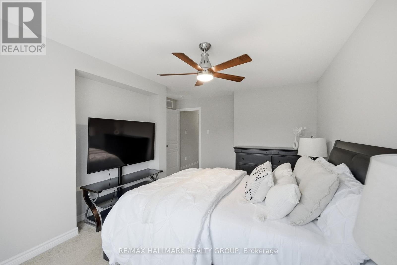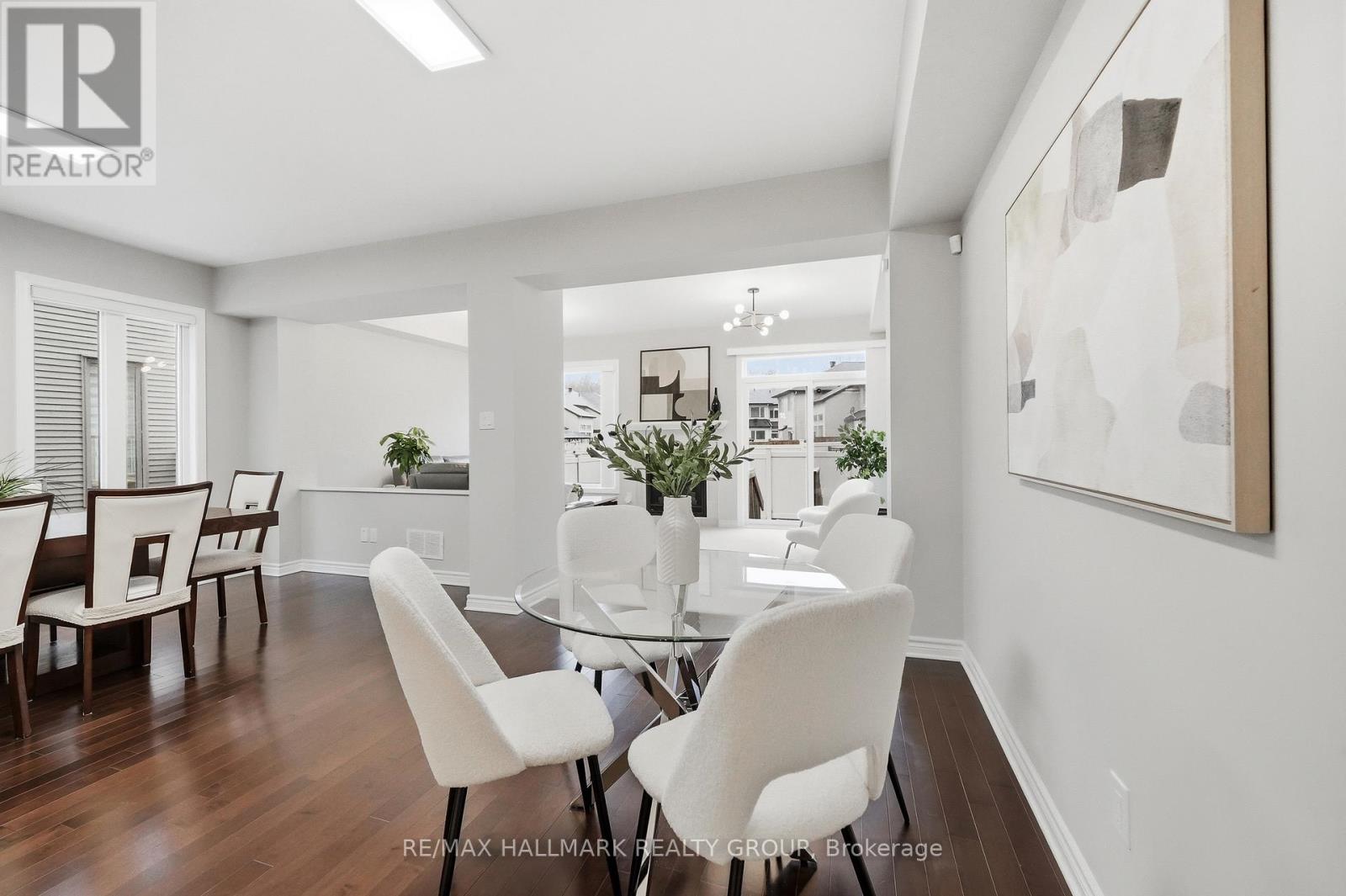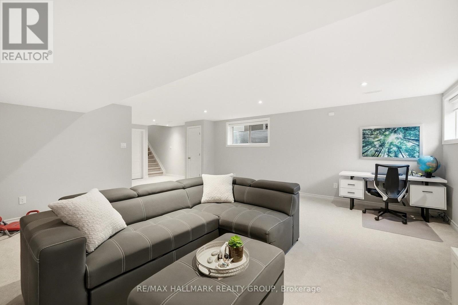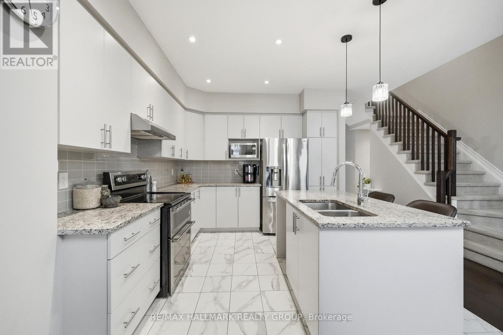 Welcome to 137 Wild Calla Way, a beautifully upgraded Richcraft Fairhaven End Unit townhome offering approx 2,539 sq ft of total living space, located in the desirable Bradley Estates community in Orleans. A rare 4 bedroom layout with the builder loft professionally converted to a 4th bedroom & 3 bathrooms, this home provides both space and functionality for modern living. Main level features a bright open concept design with hardwood flooring throughout the main hallway & dining areas. The inviting living room is finished with cozy carpeting, a gas fireplace & access to the backyard. The modern white kitchen overlooks the living space and includes stainless steel appliances, double oven, ice-maker fridge, centre island with double sink & breakfast bar, and plenty of cabinetry for storage. Upstairs you will find 4 spacious carpeted bedrooms including the primary suite, along with the convenience of second-floor laundry. All 3 bathrooms feature granite countertops, with upgraded power showers in the primary ensuite & second bathroom, and the main bath includes tile extended to the ceiling. Additional upgrades include oak stairs, modern light fixtures in the living room, kitchen island, dining room and primary bedroom, flow-through humidifier, central air conditioning, updated kitchen faucet, and plumbing improvements including new sink stoppers in all bathrooms & the powder room. The home has also been freshly painted throughout with updated baseboards. The finished lower level recreation room provides additional living space, while a large unfinished storage/utility area offers excellent storage potential. Outside, enjoy extended driveway parking with interlock for two vehicles, a single garage with inside entry featuring built-in tire rack and custom storage, plus a convenient side storage shed. Located close to parks, schools, transit, and everyday amenities, this move-in ready end unit offers comfort, upgrades, and an excellent family-friendly location! (id:64974)