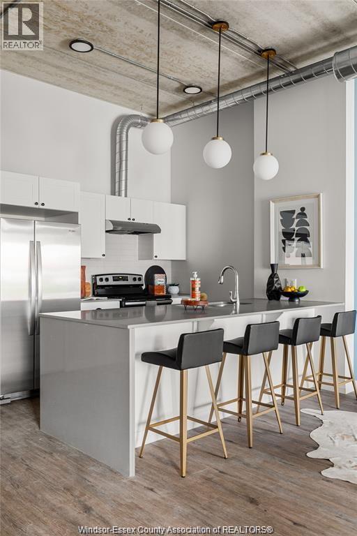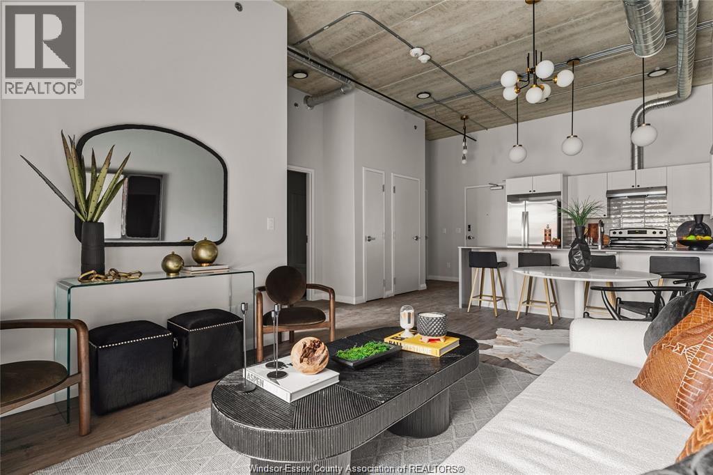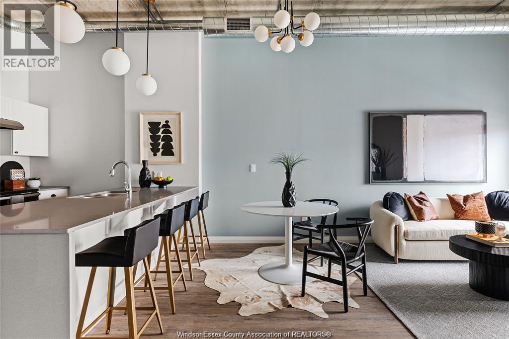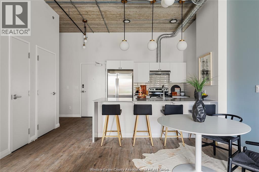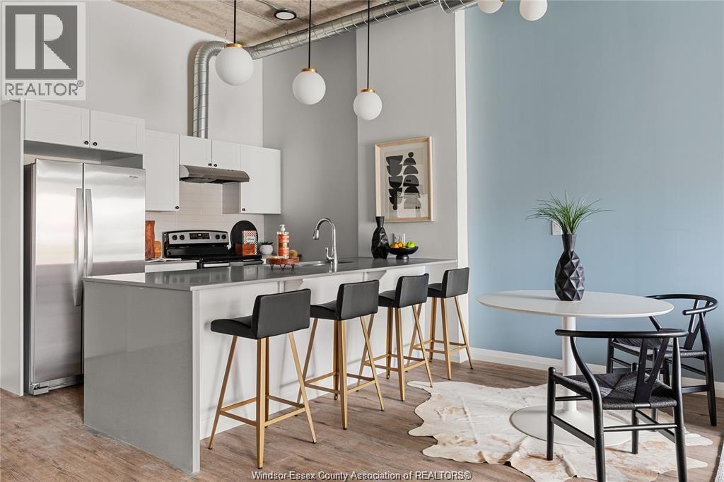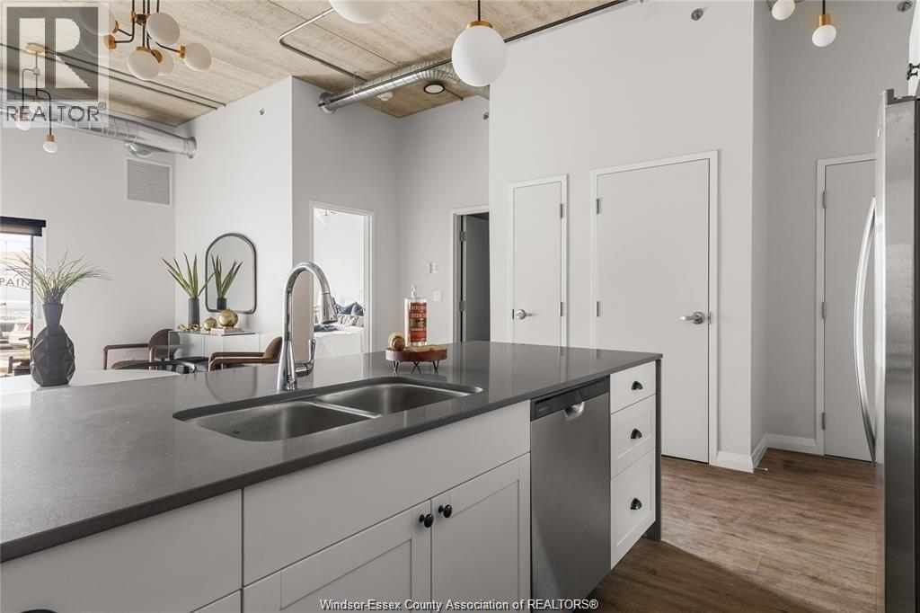Discover comfortable loft style living at The Argyle in Walkerville, Windsor. This spacious 2 bedroom, 2 bathroom suite offers an open concept layout with high ceilings featuring exposed ductwork, quartz countertops, and the convenience of in suite laundry. The kitchen includes a large island perfect for everyday living and entertaining, while the primary bedroom features a walk in closet. Enjoy outdoor space with your own patio and the security of key fob entry and monitored cameras throughout the building. Located in the heart of Walkerville, you are just steps from popular cafes, restaurants, and boutique shops. Utilities extra. Contact listing agent for application details. (id:64974)