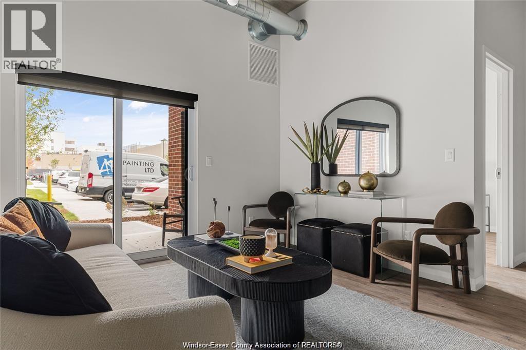 Experience luxury living at The Canadian at The Argyle in Walkerville, Windsor! This stunning one-bedroom loft blends modern elegance with industrial charm, featuring exposed ductwork ceilings and sleek quartz countertop. The accessible features are throughout this suite with a walk in shower, wall oven and accessible cook-top & sink. Enjoy the convenience of in-suite laundry, a stylish bathroom, and secure keyless entry with advanced security cameras for peace of mind. Located in the heart of Walkerville, you're just steps from trendy cafes, restaurants, and boutiques, offering a vibrant and sophisticated lifestyle. Plus utilities. Contact the listing agent for an application! (id:64974)