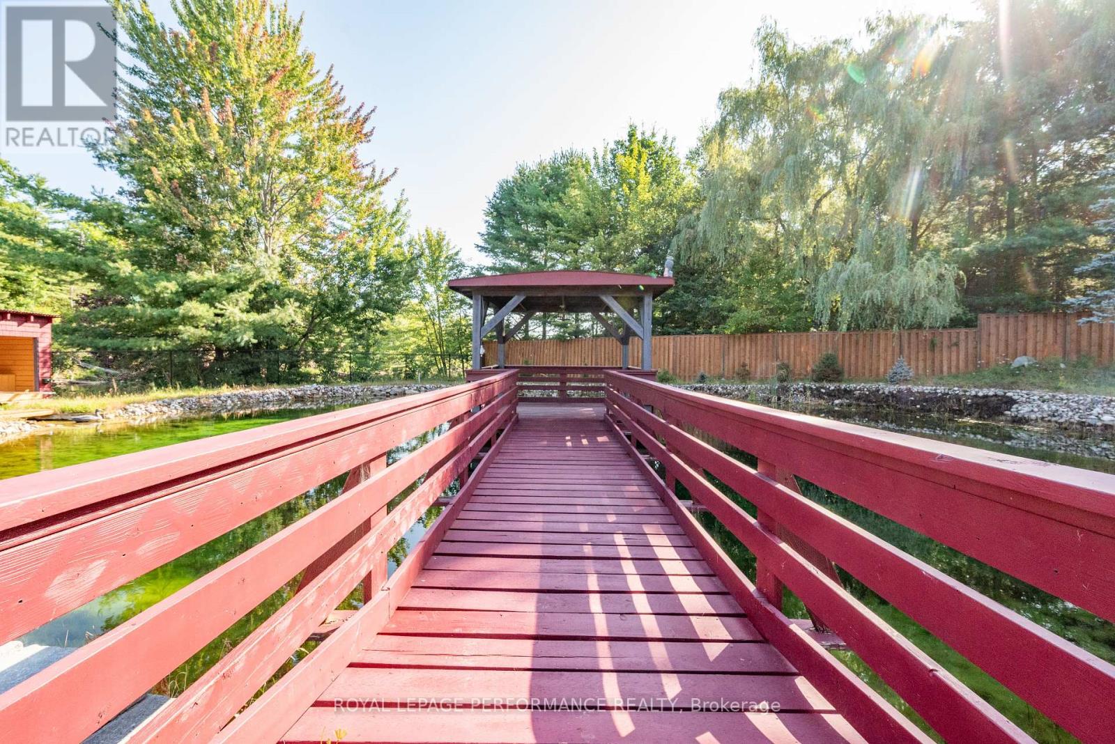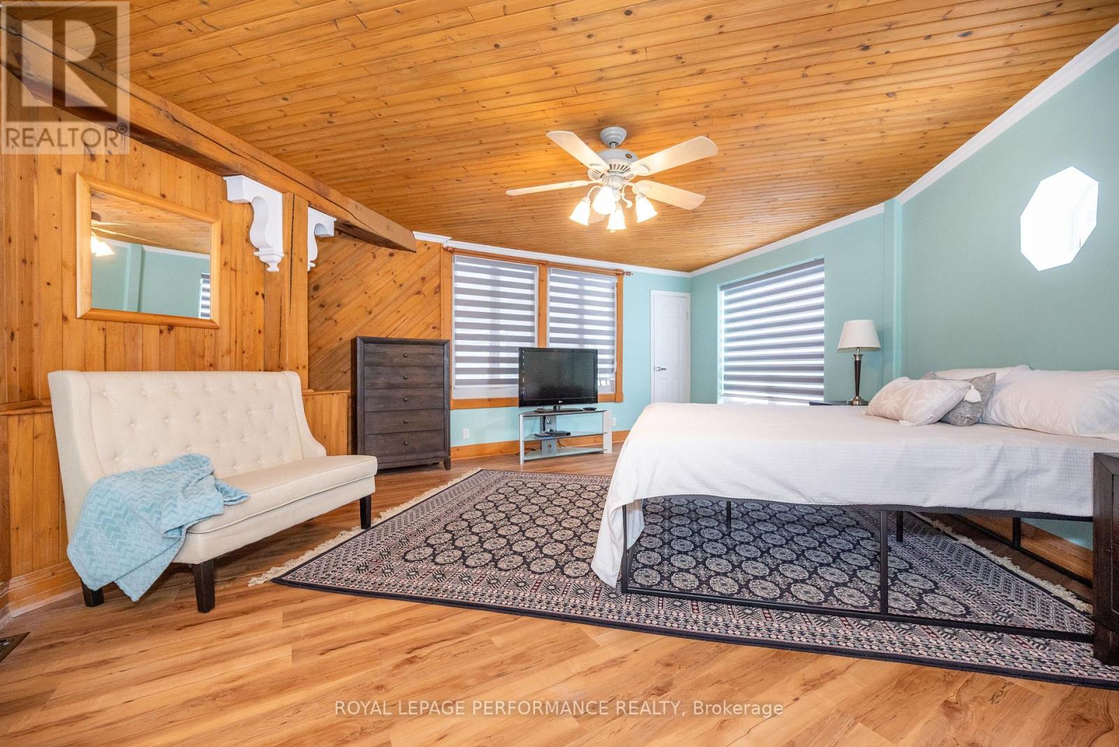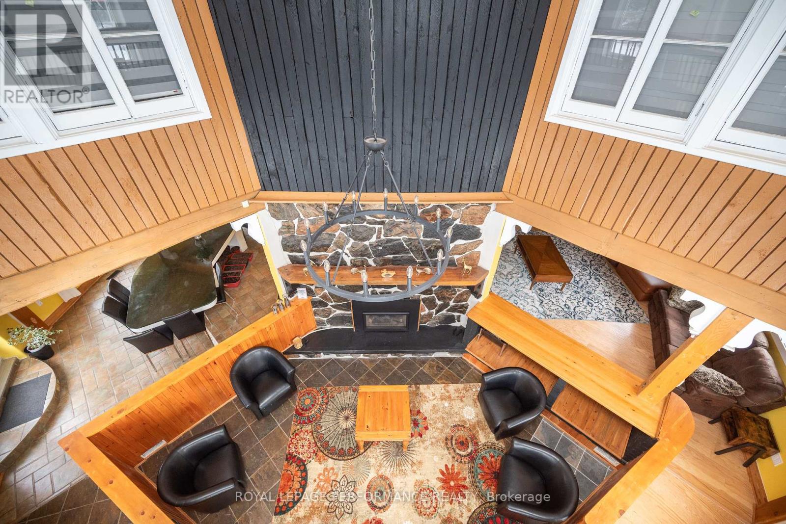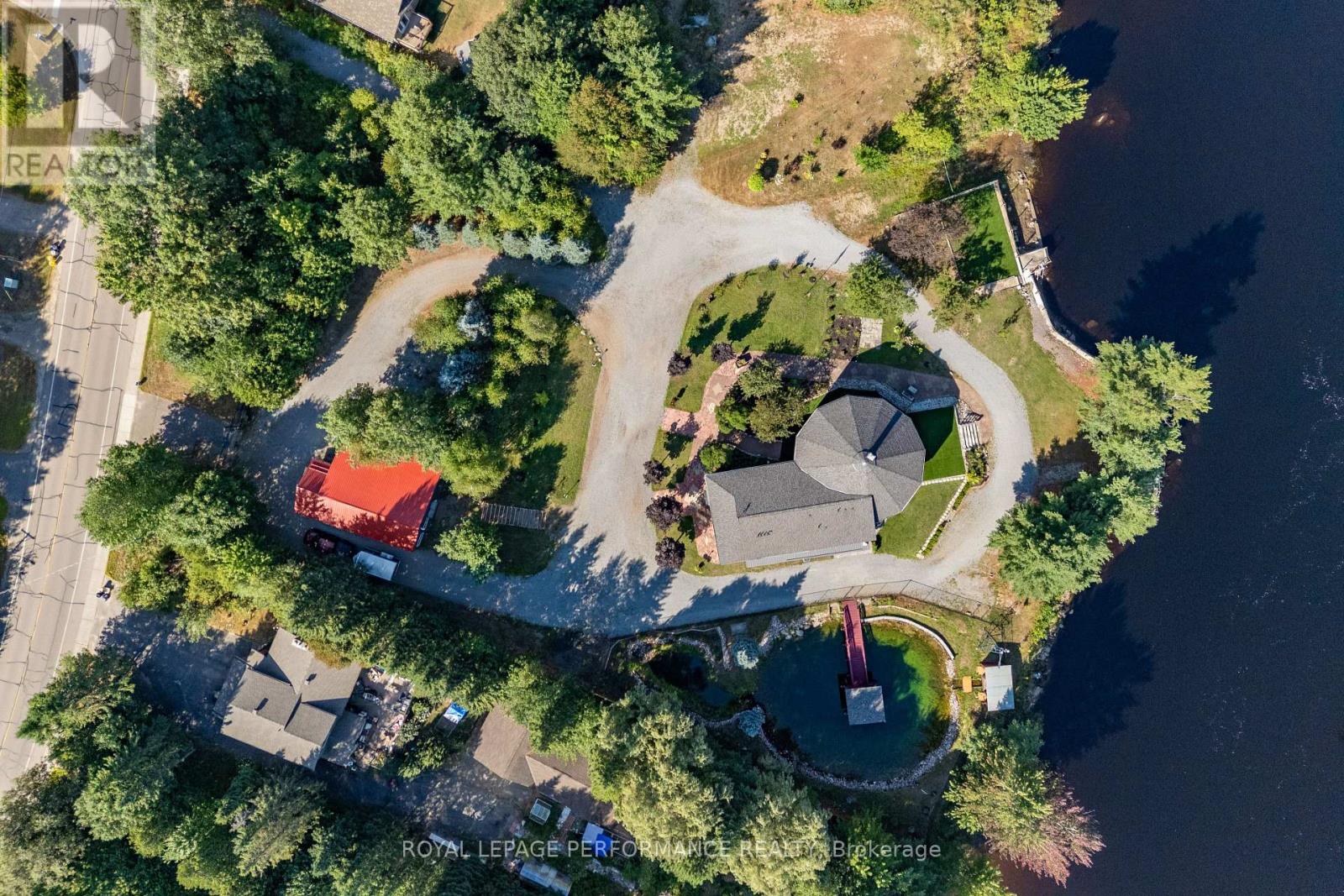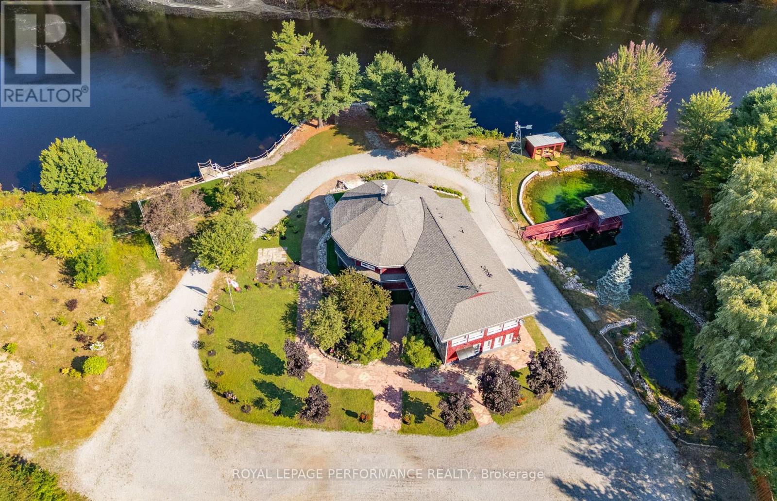 STUNNING one of a kind custom built home on 2.36 acres with ~300 feet of private waterfront shoreline. This beautiful property is absolutely perfect for large or multigenerational families offering more than 4000sqft of spacious sun filled rooms. BONUS: As a result of Re Zoning -This amazing property can also be operated as a Bed & Breakfast or Group Home. This magnificent move in ready home has undergone EXTENSIVE renovations and upgrades over the past 3 years. Work performed by qualified contractors with required permits. The home is setback from the road offering loads of privacy. It features a spring fed pond to the east, a large level lot to the west and forested hillsides to the north. The moment you walk through the new front door into the grand foyer you can immediately appreciate the impressive post and beam construction of this home. An abundance of large windows throughout the house allows for amazing views of the river, pond and gardens with custom zebra blinds installed on 29 windows. The entire home has been painted inside and out. The LR has new hardwood flooring, new ceiling fans and pot lights. The kitchen area has been completely upgraded with a new window, drop ceiling, lighting, flooring, cabinetry, sink, quartz counter tops and also boasts high end appliances. Gorgeous stone fireplace has been converted to gas. Chimney was repaired and serviced. Wood wainscoting installed on lower staircase and on firepit half walls. All wall to wall carpets on second floor have been removed and replaced with high quality LVF. New pot lights and lighting installed throughout. The second floor catwalk has been rebuilt and new railing installed to code.15 new doors installed throughout. Washrooms have been upgraded with new vanities(x5), Led mirrors(x2), toilets and new flooring on 2nd floor. Attachments include a comprehensive list of upgrades to the property including the auxiliary building. A rare opportunity to own a one of a kind waterfront property. (id:64974)