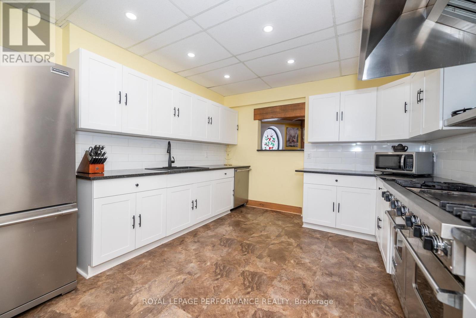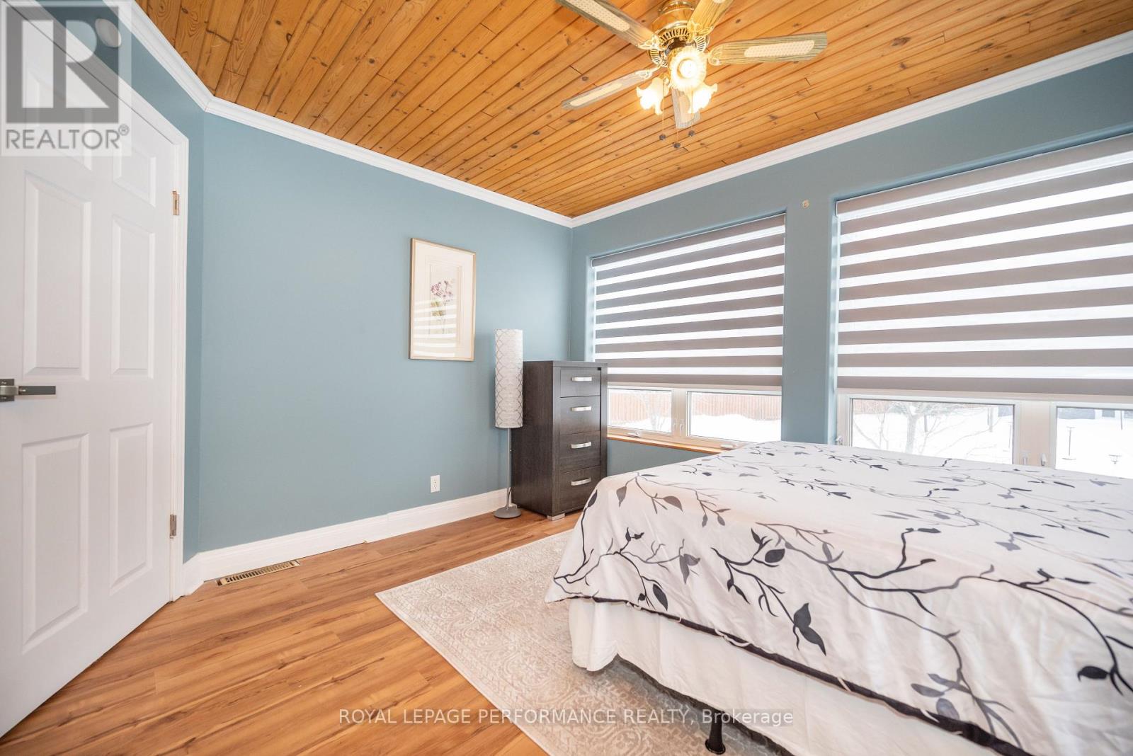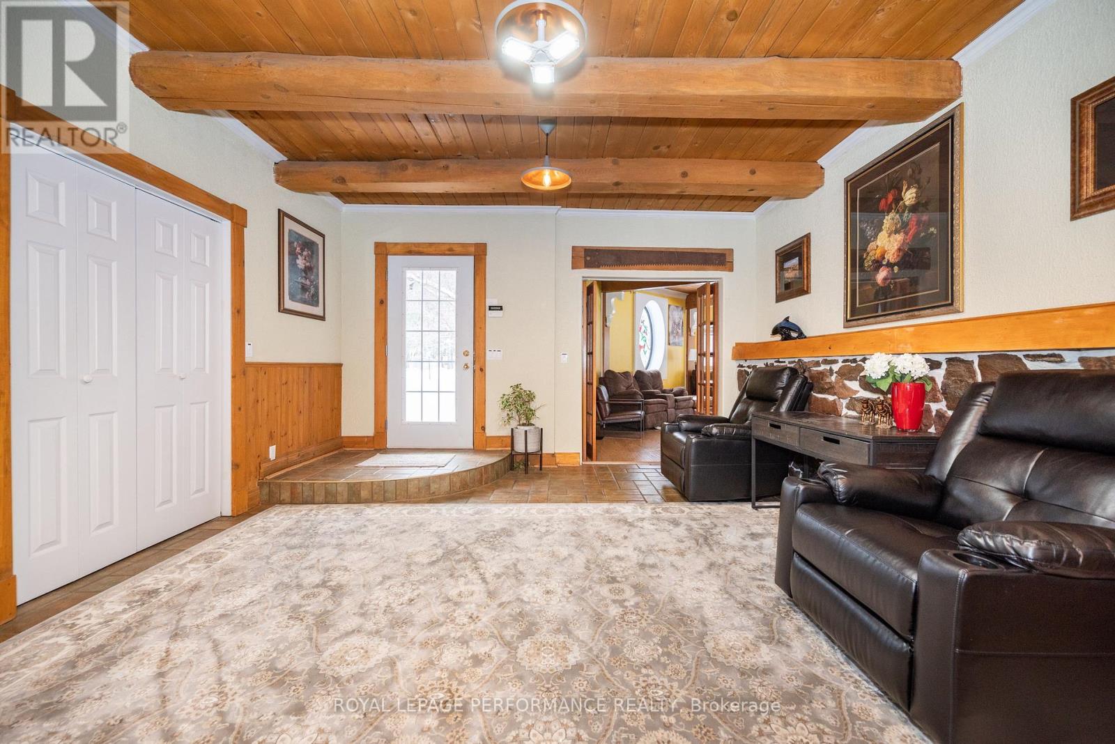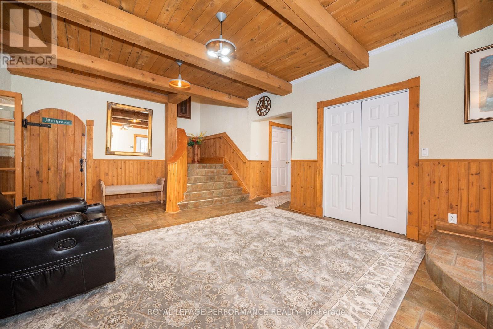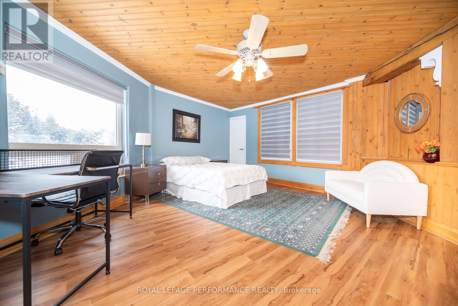STUNNING one of a kind custom built home on 2.36 acres with ~300 feet of private waterfront shoreline. This beautiful property is absolutely perfect for large or multigenerational families offering more than 4000sqft of spacious sun filled rooms. BONUS: As a result of Re Zoning -This amazing property can also be operated as a Bed & Breakfast or Group Home. This magnificent move in ready home has undergone EXTENSIVE renovations and upgrades over the past 3 years. Work performed by qualified contractors with required permits. The home is setback from the road offering loads of privacy. It features a spring fed pond to the east, a large level lot to the west and forested hillsides to the north. The moment you walk through the new front door into the grand foyer you can immediately appreciate the impressive post and beam construction of this home. An abundance of large windows throughout the house allows for amazing views of the river, pond and gardens with custom zebra blinds installed on 29 windows. The entire home has been painted inside and out. The LR has new hardwood flooring, new ceiling fans and pot lights. The kitchen area has been completely upgraded with a new window, drop ceiling, lighting, flooring, cabinetry, sink, quartz counter tops and also boasts high end appliances. Gorgeous stone fireplace has been converted to gas. Chimney was repaired and serviced. Wood wainscoting installed on lower staircase and on firepit half walls. All wall to wall carpets on second floor have been removed and replaced with high quality LVF. New pot lights and lighting installed throughout. The second floor catwalk has been rebuilt and new railing installed to code.15 new doors installed throughout. Washrooms have been upgraded with new vanities(x5), Led mirrors(x2), toilets and new flooring on 2nd floor. Attachments include a comprehensive list of upgrades to the property including the auxiliary building. A rare opportunity to own a one of a kind waterfront property. (id:64974)
