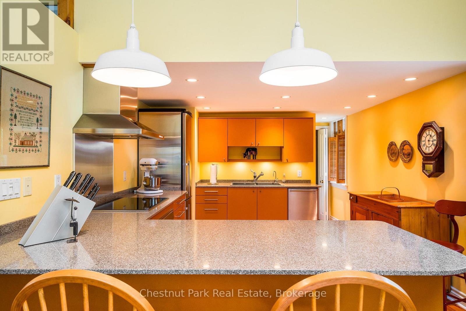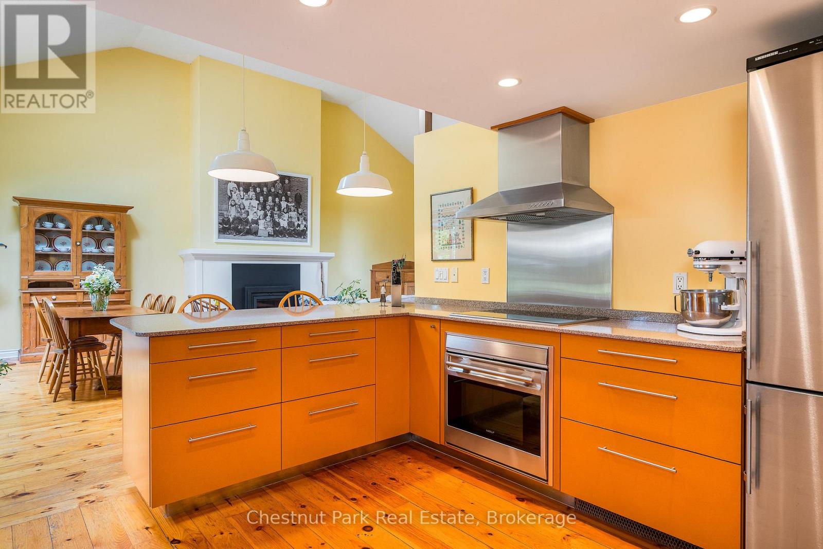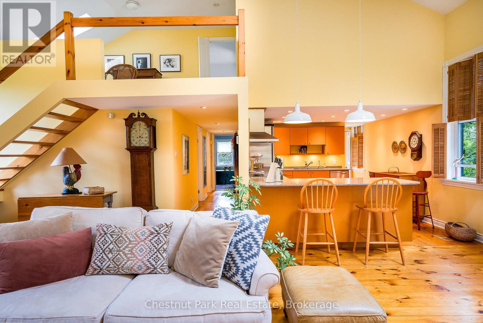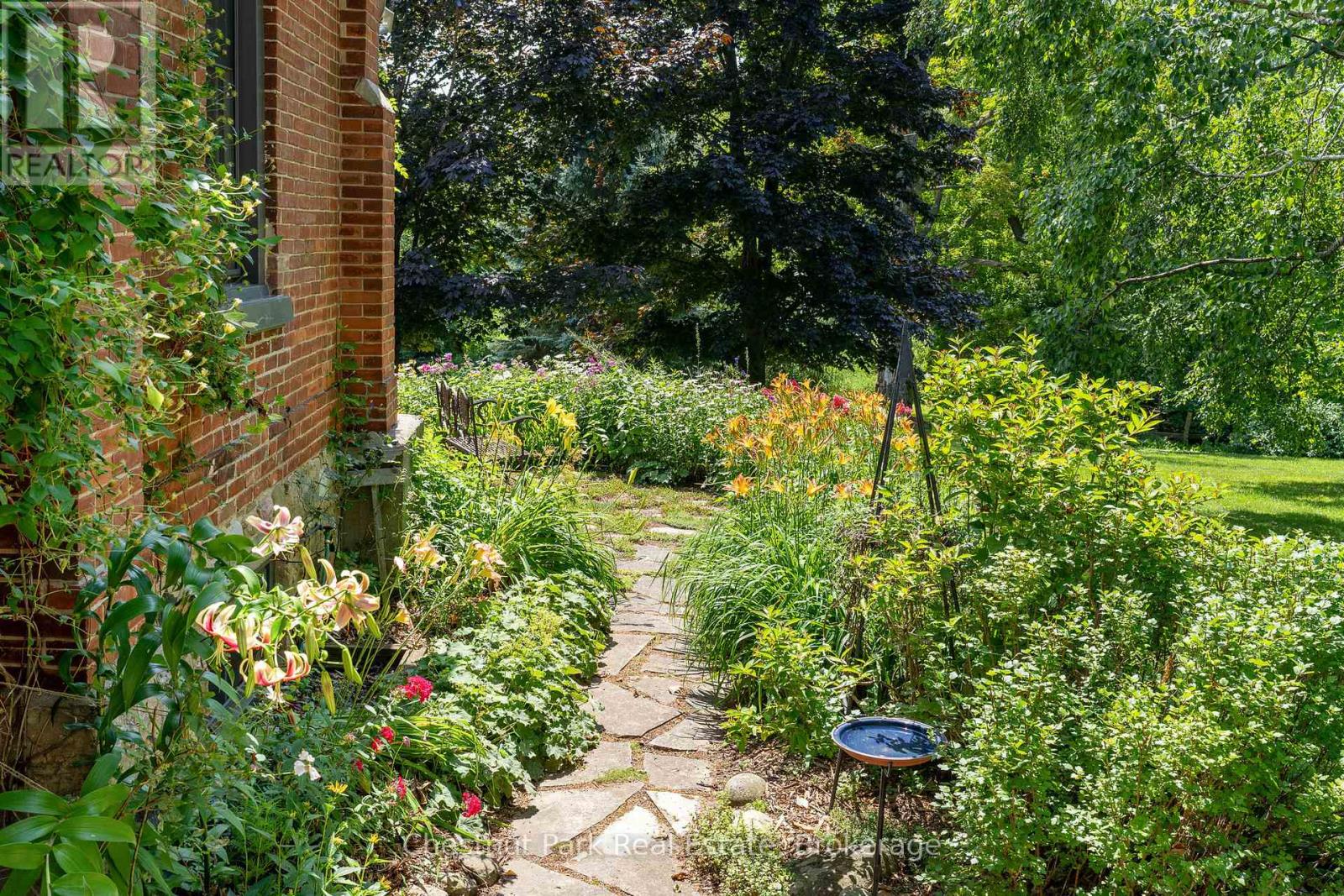 This exceptional property full of history, love, and calmness is a true paradise on Scotch Mountain. The Sellers purchase this beautiful schoolhouse property back in 1980 and moved full time to it in 2005. This perfectly maintained home has a history back to 1900 when the first class opened and the Owner discovered that her Grandmother, was actually a student in that very classroom along with other family members. So many wonderful memories have been created over the years. The extremely well-kept grounds offer gorgeous, ever changing perennial gardens, terrific vegetable garden beds, fabulous mature trees, a plethora of song birds and plenty of sunshine. The relaxed country life has provided the Owners, with privacy, serenity and pure joy for many years. The Schoolhouse itself has so much character and a wonderful flow. Filled with light, high ceilings, an open concept, with a well-appointed functional kitchen with stainless appliances and breakfast counter is right off the expansive dining and living room with the high ceilings on the main floor. A lovely bedroom, full bathroom, large entrance foyer, butler's pantry, plenty of storage and closet space complete the main floor. The living area displays a large fireplace to snuggle up in front of. Off the dining area is a very private deck where you can relax and take in all the beauty so perfectly surrounding the home. Upstairs is a loft overlooking the living/dining area, the private primary bedroom, ensuite bathroom plus a 3rd bedroom. The lower level is full height, dry, bright and has exceptional stone walls all around, plus an abundance of storage space. It is a palette waiting to be painted. A cozy family room with the fireplace to enjoy, perhaps an additional bedroom, office? 15 minutes to downtown, 20 min. to Owen Sound, close to ski hills, Georgian Bay, shopping, dining and a great variety of entertainment at the Meaford Hall. This amazing property could be your future oasis. (id:64974)
