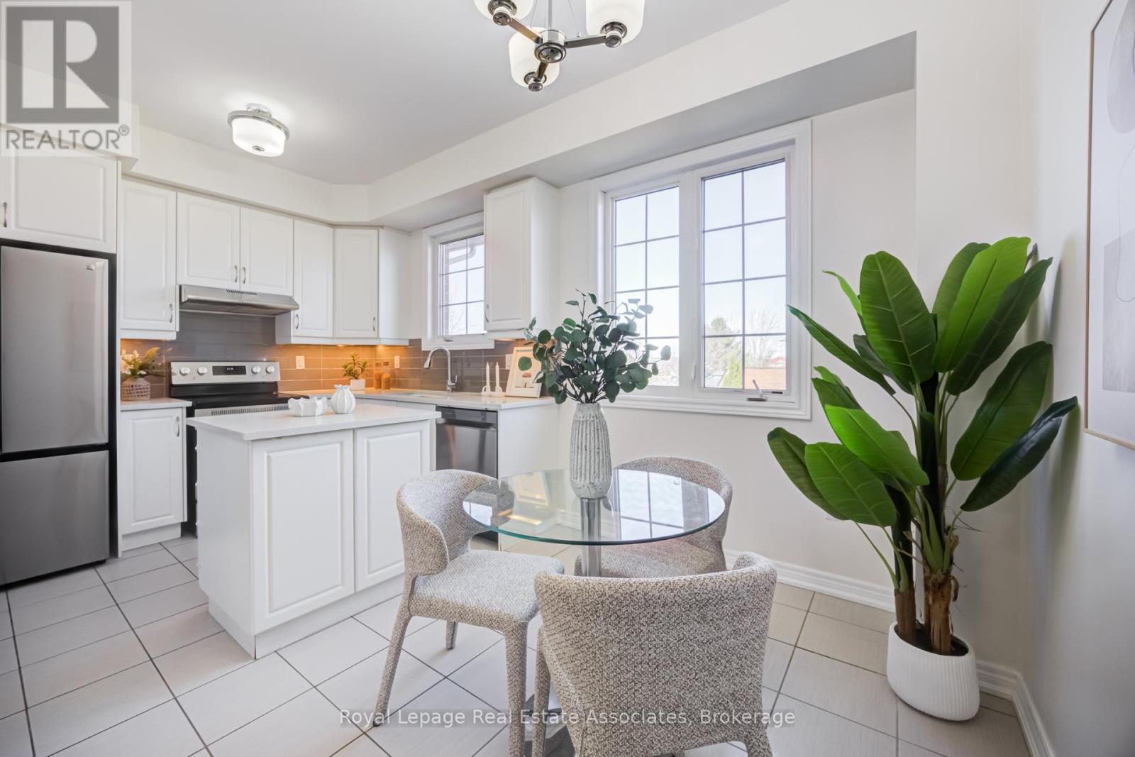 Located in Centre of East Credit Neighbourhood, this bright, all above-ground freehold townhouse is perfect for first time buyers or a startingfamily. Ideally positioned overlooking the park, this home offers a peaceful setting while the front entrance conveniently faces visitor parking for easy access.The heart of the home is soaring 9-foot ceilings on the main floor, its modern, family-friendly kitchen, complete with a stylish backsplash, centre island, ample pantry space, sleek under-cabinet lighting, and a cozy eat-in area. All brand-new appliances add both style andfunctionality. Retreat to the generous primary suite, featuring a walk-in closet and a spa-like 4-piece ensuite. Two additional well-sized bedroomsshare a 4-piece bathroom.The ground-floor level offers a walk-out to a private, fully fenced backyard oasis, complete with a pergola beautifullycovered by mature grapevines-perfect for relaxing or entertaining. The entire home has been freshly painted and offers abundant storage spacethroughout. Roof has been Replaced in 2022. Enjoy low-maintenance living with just a $102/month POTL road maintenance fee, plus plenty of visitor parking nearby.Perfectly located in a prime area near schools, steps to the park, Trails, vibrant shopping, easy transit, and major highways.Don't miss this incredible gem! (id:64974)