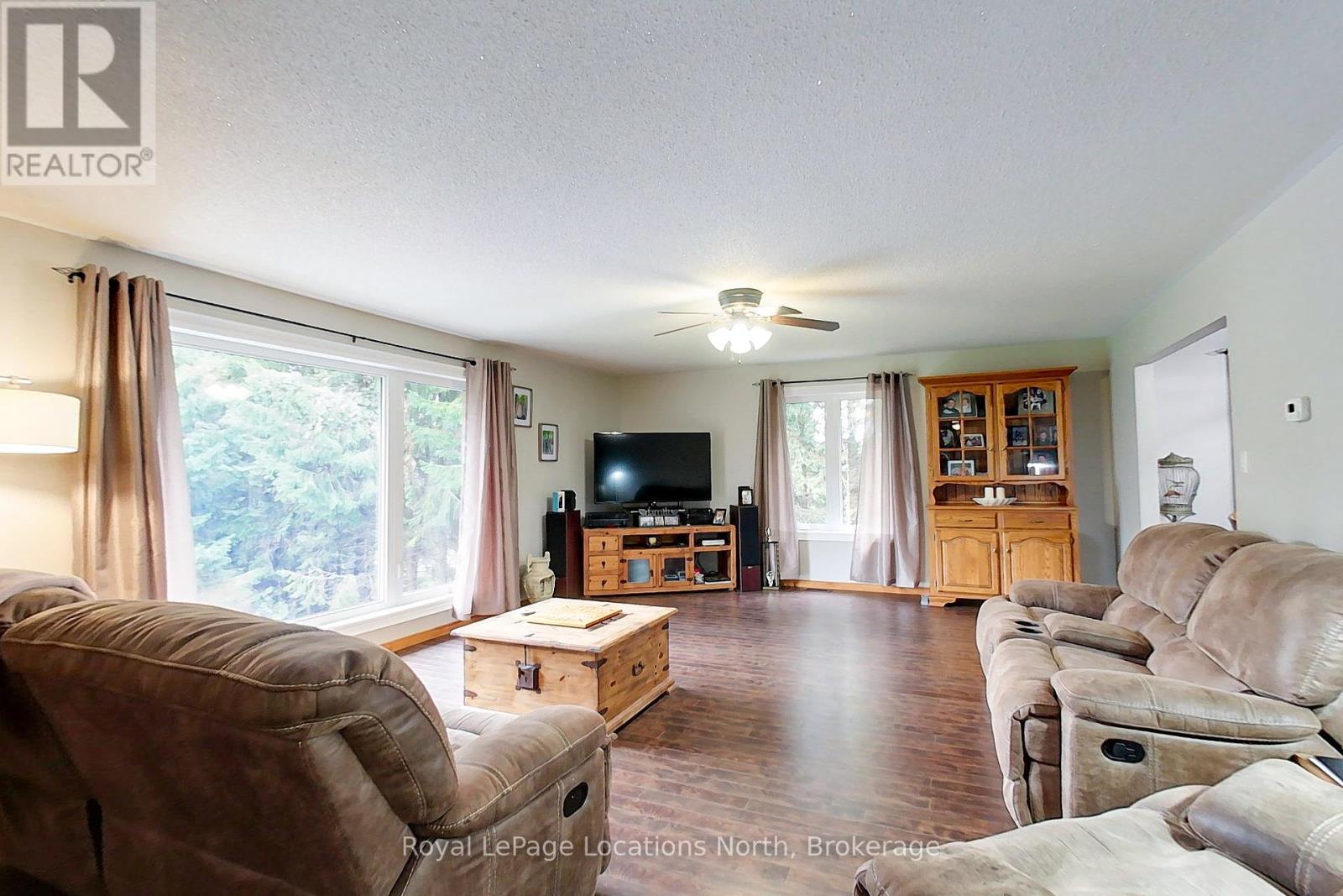 This custom built brick bungalow was designed for active families. Located just a few minutes from town means you have quick access to all the amenities but the bonus of country living. Main floor features 3 bedrooms updated primary bath, main floor laundry and plenty of space in the large principal rooms. The lower level has an indoor pool which is covered and presently used as a recreation room, but could be converted back. When built, the indoor pool was heated by a custom made wood furnace which could be re-used or change it as preferred. Most windows replaced 2025, GeoThermal heat and A/C. 24 X 30 Workshop with hydro is perfect for your business or hobbies. (id:64974)