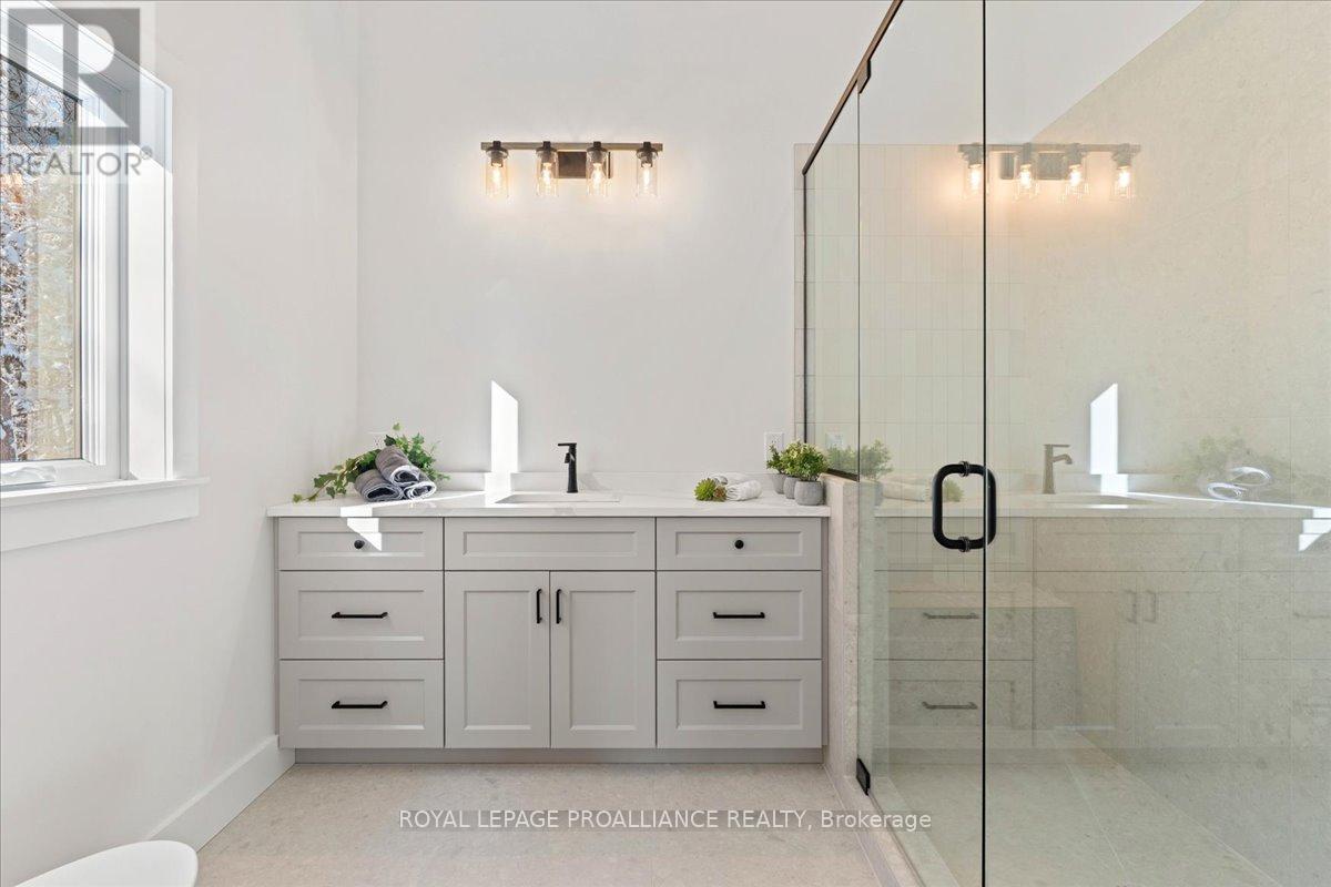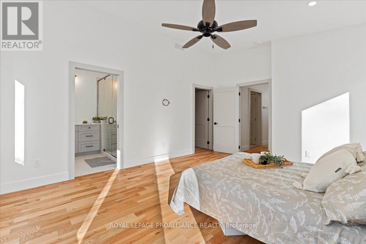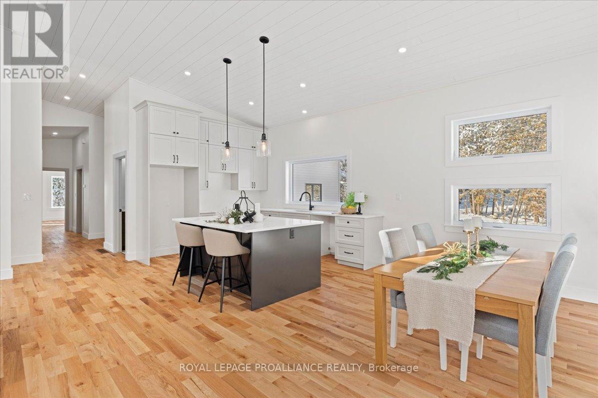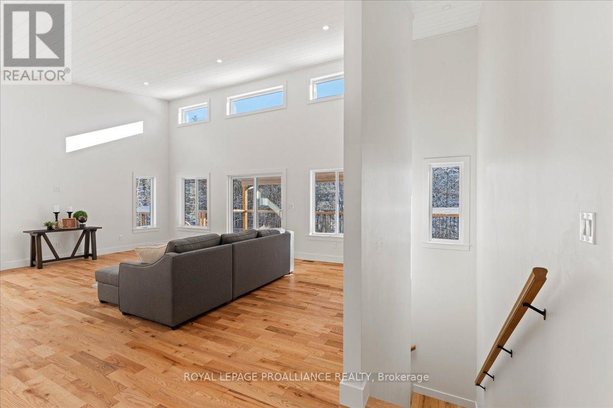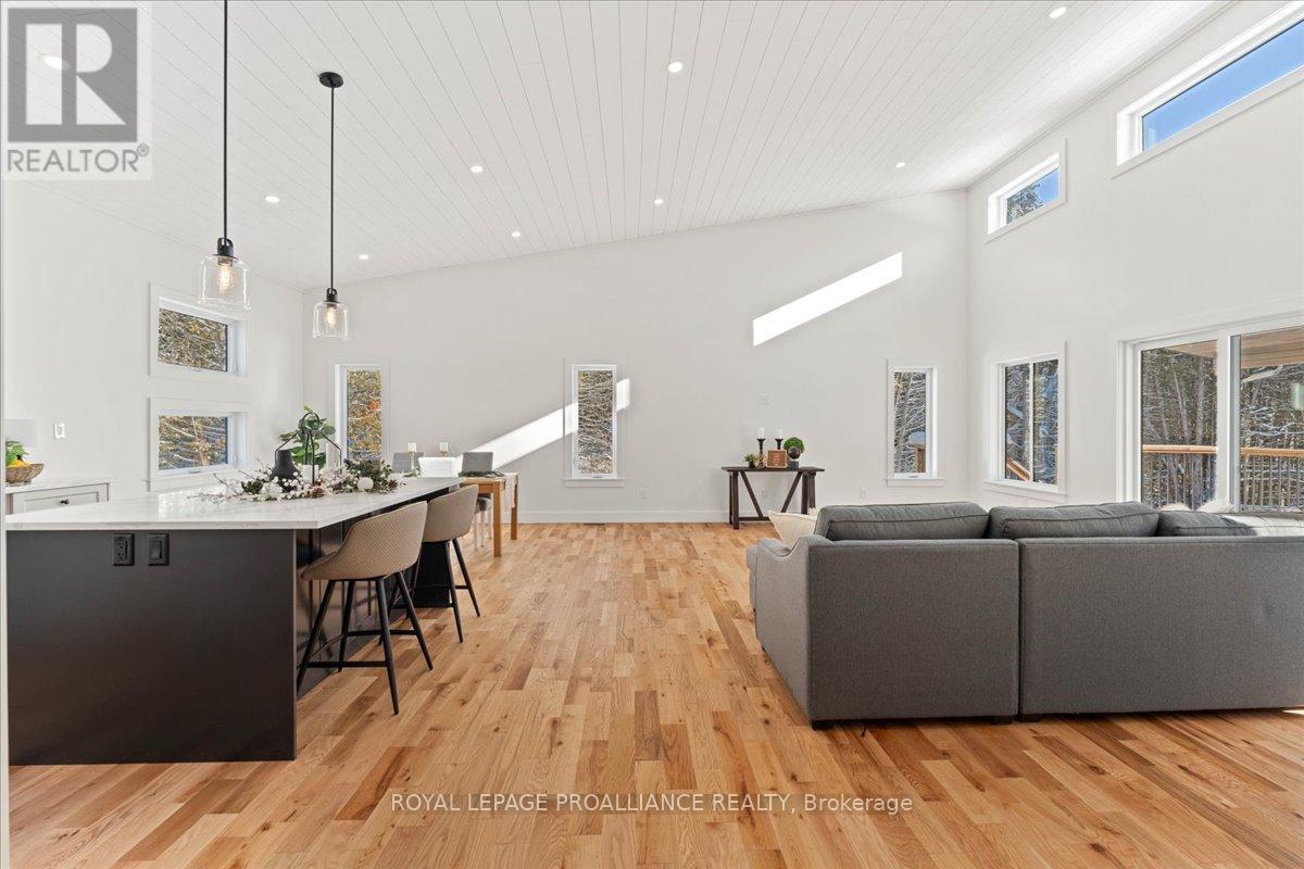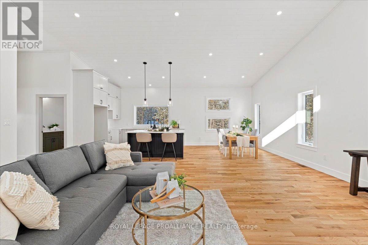 Welcome to this bright, spacious and contemporary bungalow, perfectly set on a stunning wooded 1.93 acre lot in one of the areas most sought after neighborhood's. This brand-new build combines modern design with high-quality finishes and the peaceful charm of a private, treed setting. The home features an open-concept floor plan with soaring vaulted ceilings and beautiful hardwood flooring throughout the main level. Large windows fill the space with natural light, while the spacious living and dining areas flow seamlessly to the kitchen and out to the large covered rear deck ideal for relaxing and entertaining while surrounded by nature. Offering 2 bedrooms and 2 bathrooms (there is also a 3rd bath plumbed in the basement), including a luxurious ensuite, this home is thoughtfully designed for comfort and style. The full walkout basement provides excellent potential for additional living space, hobbies, or storage. You will be wowed by the beautiful bright and spacious attached two-car garage. Opportunity to enjoy contemporary living in a private, wooded setting this home is move-in ready and has a full Tarion Warranty. If Modern Country Hideaway is your vibe - it is here - waiting for you!! (id:64974)