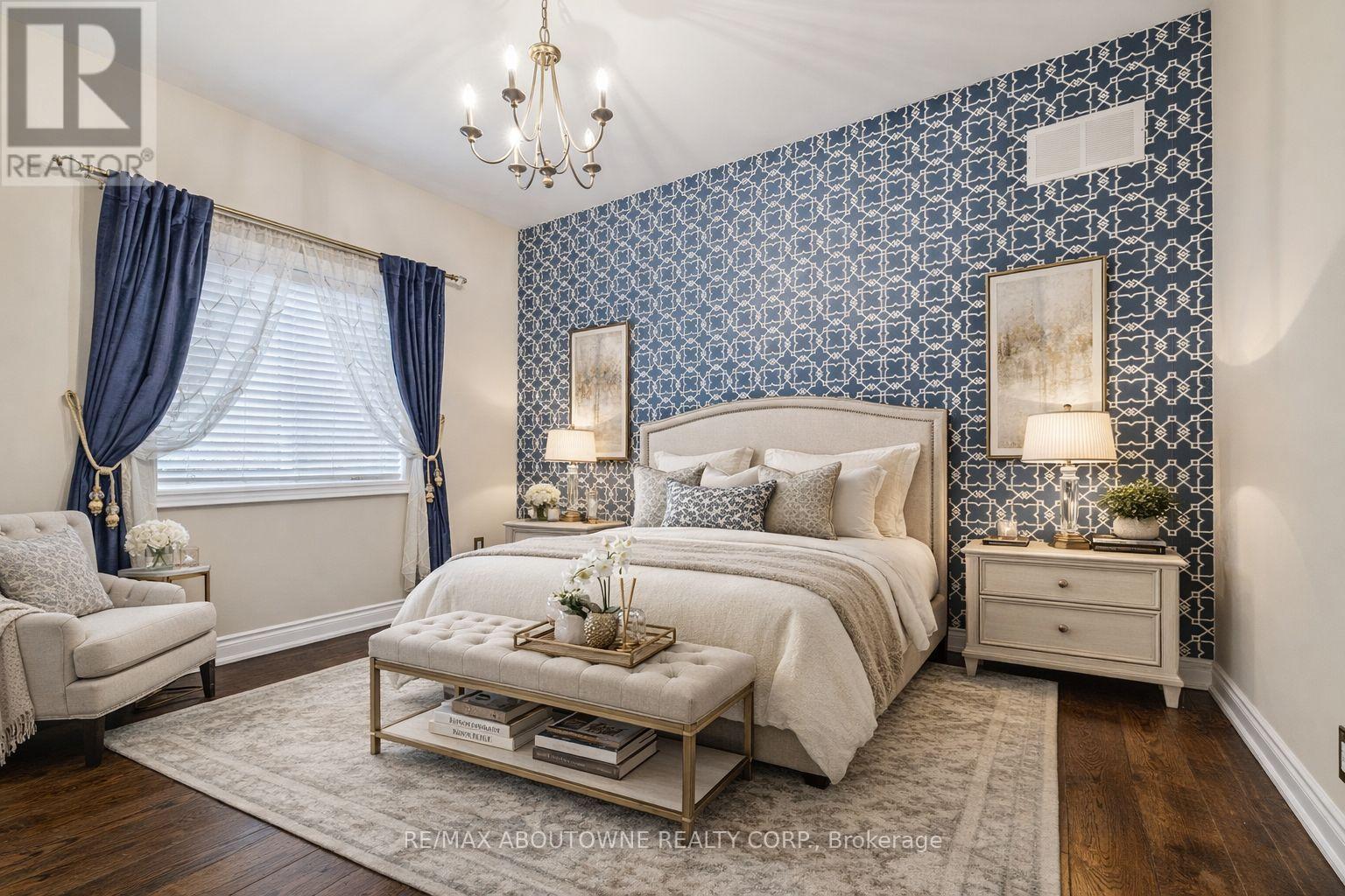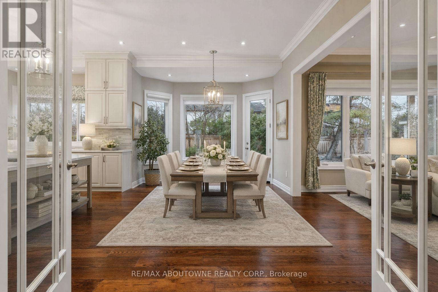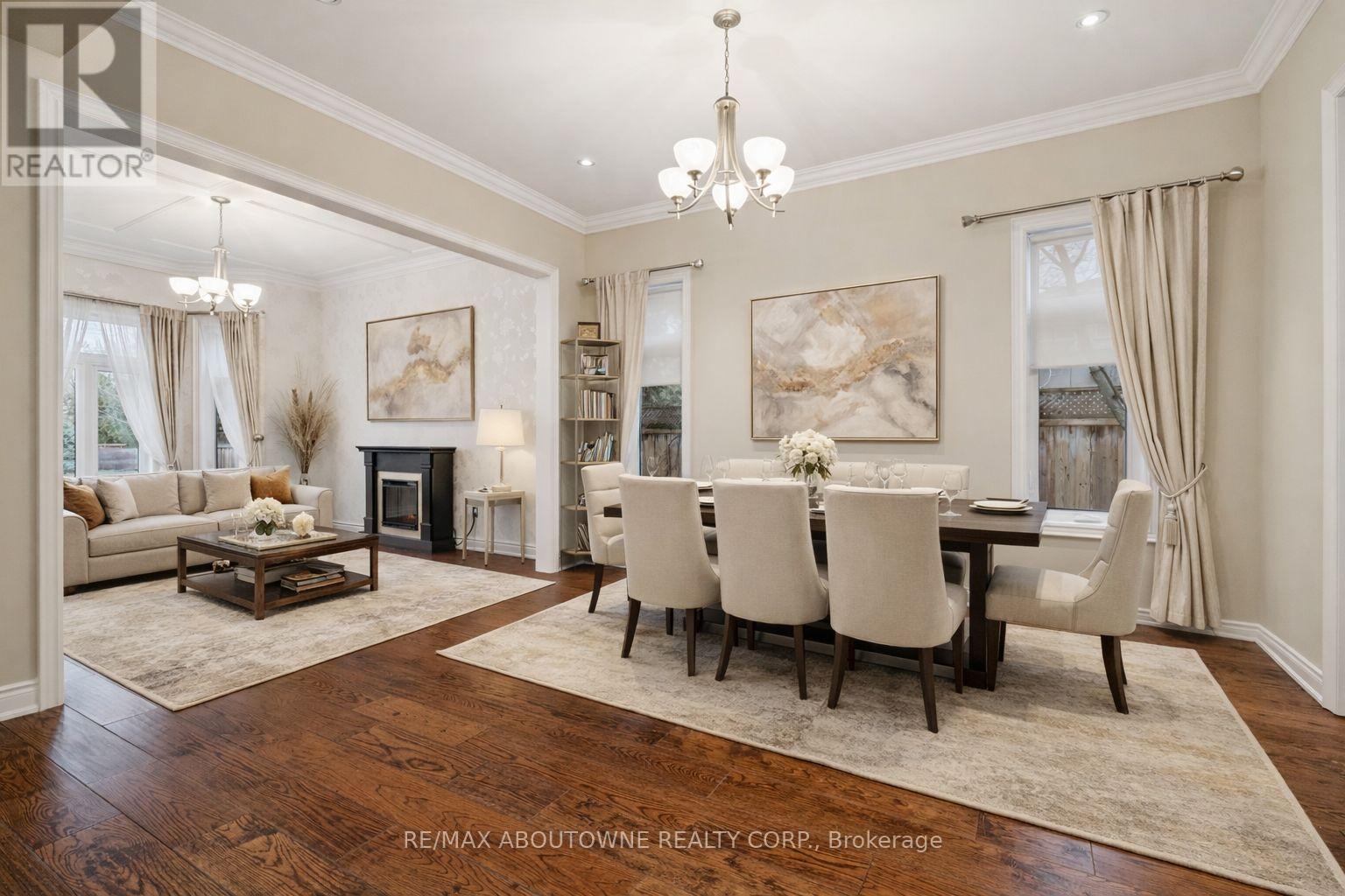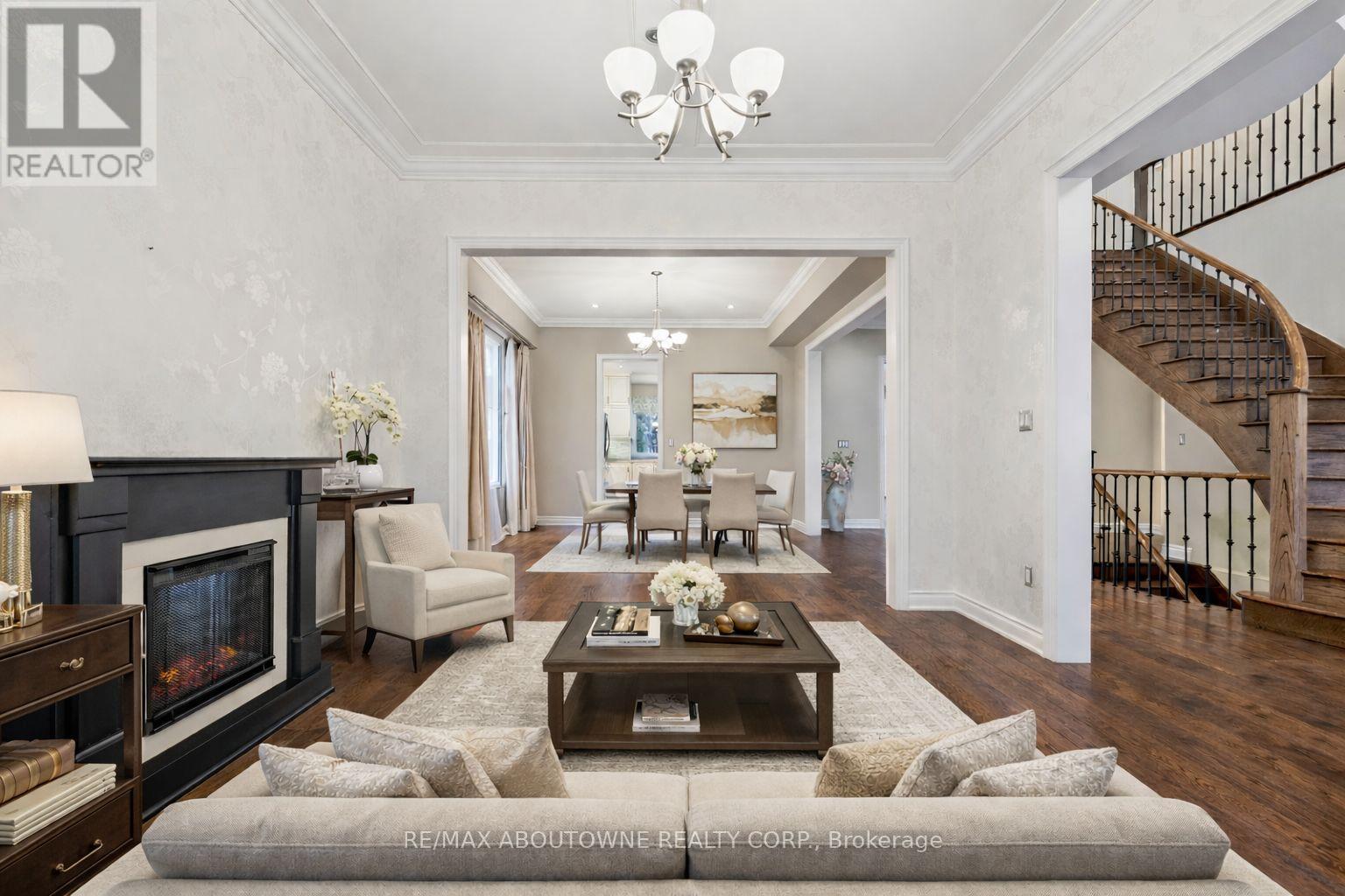Welcome to this exceptional home in the heart of sought-after West Oakville, where timeless design meets modern comfort. Discover refined living, where elegance, space, and privacy come together on a premium lot with gated driveway, double car garage & landscaped front & back yards. This large home offers an ideal balance, perfect for both executive entertaining & a family home. An impressive cathedral-ceiling entrance with stunning chandelier fills the home with natural light & creates a grand first impression. The main floor features a spacious open-concept living area that offers elegant finishes & seamless flow throughout. The large gourmet kitchen with wine & bar fridge, & space for a large kitchen table for those informal get togethers is a home chef's delight. Family room, with gas fireplace and built-in bookshelves, can be closed off with large French doors. Separate dining & living rooms for more formal entertaining. A large main floor office, walk-in closet, powder room & mud room with access to the attached double car garage complete this level. The second floor delivers comfort & privacy for family members & guests alike. The primary bedroom has ample storage with beautifully designed built-in closets, a separate walk-in closet & 5-pc ensuite. Each bedroom is generously sized. Two bedrooms share a 5-pc ensuite & the 4th bedroom offers a 4-pc ensuite & walk-in closet. The beautifully finished walk-out basement provides incredible versatility, complete with in-law suite capability, good size bedroom with large walk-in closet, 3-pc bath, entertaining area, & kitchenette, ideal for multi-generational living, extended family, or potential income opportunities. Located in one of Oakville's most desirable neighbourhoods, close to top-rated schools, parks, lakefront trails, Walmart, Metro, LCBO & QEW, this home offers the perfect blend of luxury, functionality, & lifestyle. A rare opportunity in West Oakville - don't miss your chance to call it home. (id:64974)