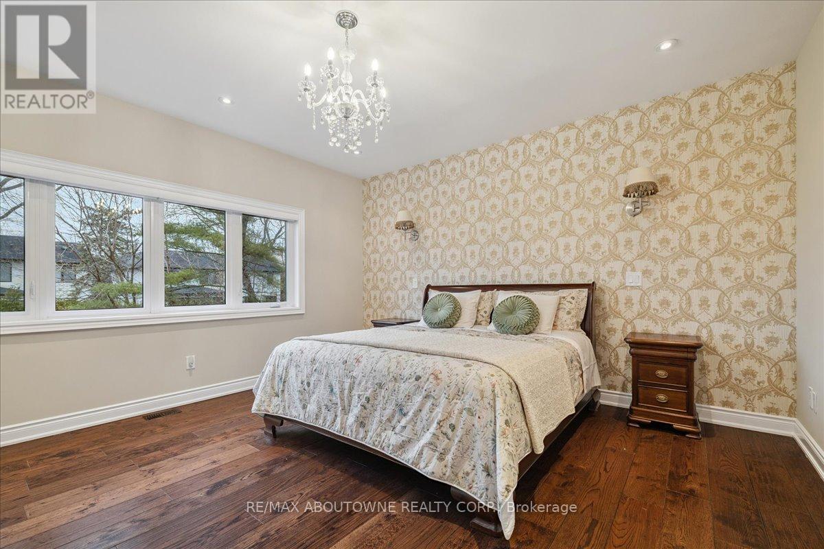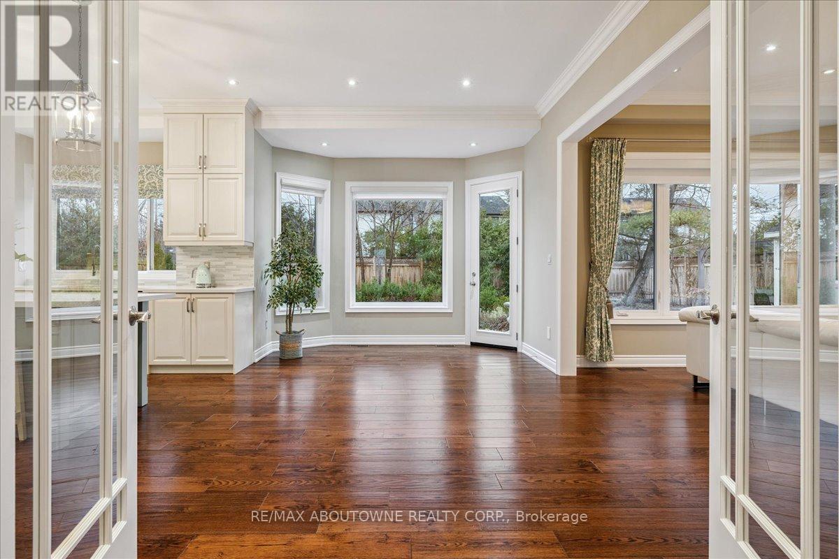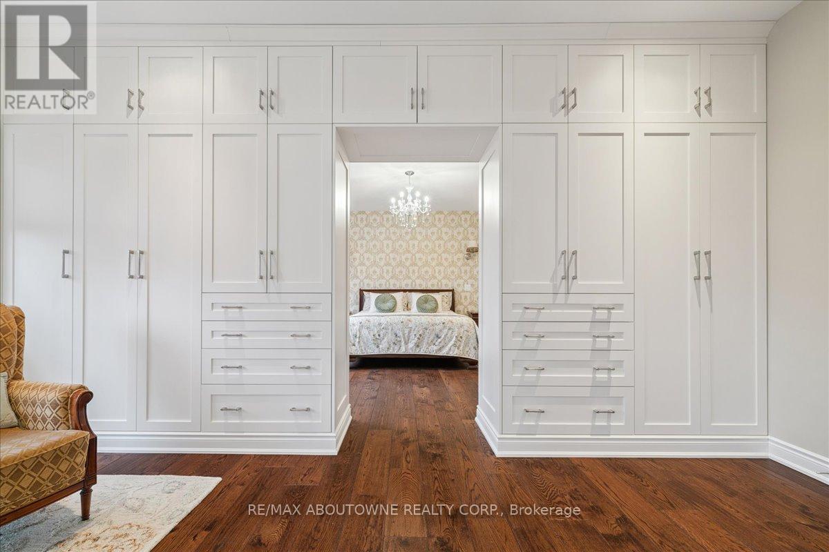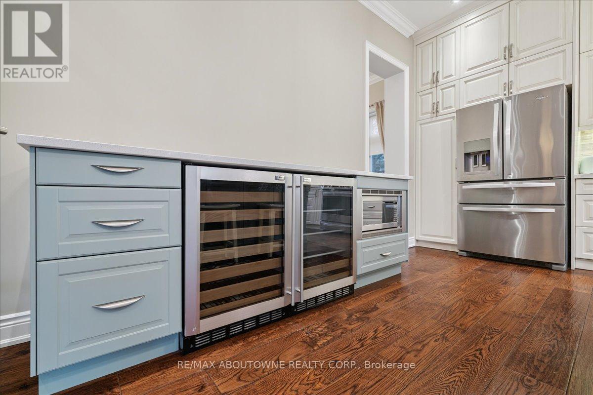 Welcome to this exceptional home in the heart of sought-after West Oakville, where timeless design meets modern comfort. Discover refined living, where elegance, space, and privacy come together on a premium lot with gated driveway, double car garage & landscaped front & back yards. This large home offers an ideal balance, perfect for both executive entertaining & a family home. An impressive cathedral-ceiling entrance with stunning chandelier fills the home with natural light & creates a grand first impression. The main floor features a spacious open-concept living area that offers elegant finishes & seamless flow throughout. The large gourmet kitchen with wine & bar fridge, & space for a large kitchen table for those informal get togethers is a home chef's delight. Family room, with gas fireplace and built-in bookshelves, can be closed off with large French doors. Separate dining & living rooms for more formal entertaining. A large main floor office, walk-in closet, powder room & mud room with access to the attached double car garage complete this level. The second floor delivers comfort & privacy for family members & guests alike. The primary bedroom has ample storage with beautifully designed built-in closets, a separate walk-in closet & 5-pc ensuite. Each bedroom is generously sized. Two bedrooms share a 5-pc ensuite & the 4th bedroom offers a 4-pc ensuite & walk-in closet. The beautifully finished walk-out basement provides incredible versatility, complete with in-law suite capability, good size bedroom with large walk-in closet, 3-pc bath, entertaining area, & kitchenette, ideal for multi-generational living, extended family, or potential income opportunities. Located in one of Oakville's most desirable neighbourhoods, close to top-rated schools, parks, lakefront trails, Walmart, Metro, LCBO & QEW, this home offers the perfect blend of luxury, functionality, & lifestyle. A rare opportunity in West Oakville - don't miss your chance to call it home. (id:64974)