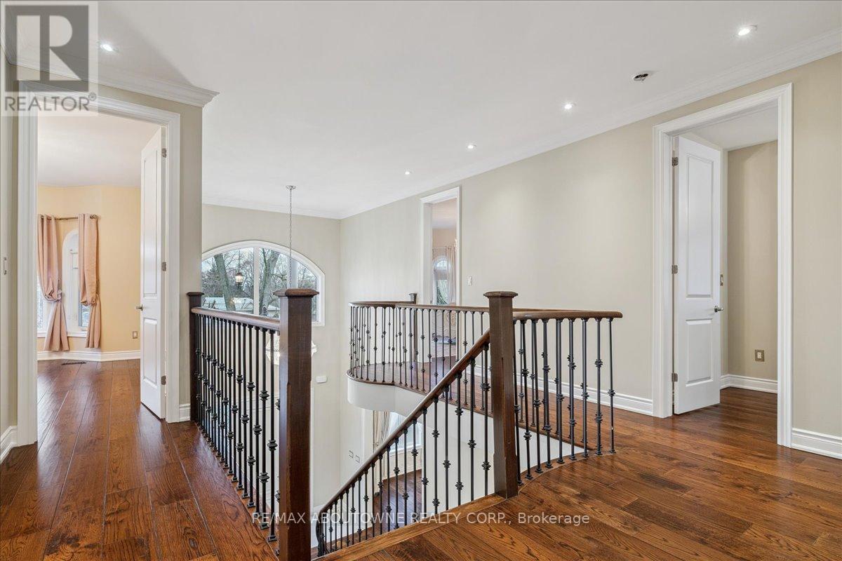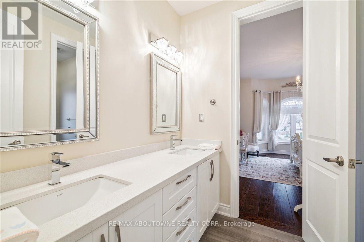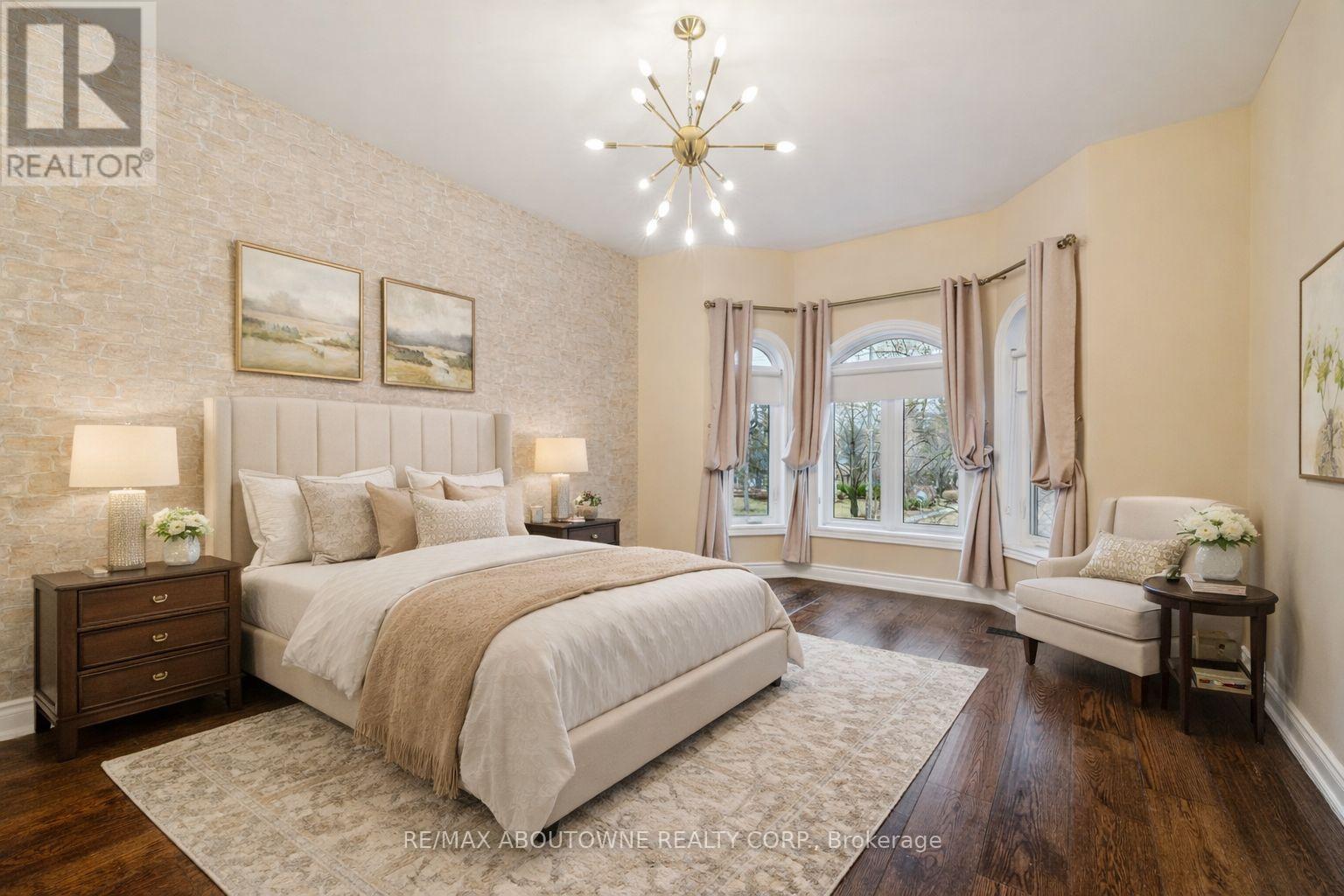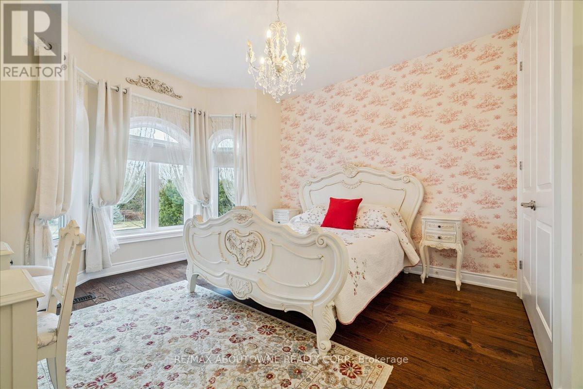 Welcome to this exceptional home in the heart of sought-after West Oakville, where timeless design meets modern comfort. Discover refined living, where elegance, space, and privacy come together on a premium lot with gated driveway, double car garage & landscaped front & back yards. This large home offers an ideal balance, perfect for both executive entertaining & a family home. An impressive cathedral-ceiling entrance with stunning chandelier fills the home with natural light & creates a grand first impression. The main floor features a spacious open-concept living area that offers elegant finishes & seamless flow throughout. The large gourmet kitchen with wine & bar fridge, & space for a large kitchen table for those informal get togethers is a home chef's delight. Family room, with gas fireplace and built-in bookshelves, can be closed off with large French doors. Separate dining & living rooms for more formal entertaining. A large main floor office, walk-in closet, powder room & mud room with access to the attached double car garage complete this level. The second floor delivers comfort & privacy for family members & guests alike. The primary bedroom has ample storage with beautifully designed built-in closets, a separate walk-in closet & 5-pc ensuite. Each bedroom is generously sized. Two bedrooms share a 5-pc ensuite & the 4th bedroom offers a 4-pc ensuite & walk-in closet. The beautifully finished walk-out basement provides incredible versatility, complete with in-law suite capability, good size bedroom with large walk-in closet, 3-pc bath, entertaining area, & kitchenette, ideal for multi-generational living, extended family, or potential income opportunities. Located in one of Oakville's most desirable neighbourhoods, close to top-rated schools, parks, lakefront trails, Walmart, Metro, LCBO & QEW, this home offers the perfect blend of luxury, functionality, & lifestyle. A rare opportunity in West Oakville - don't miss your chance to call it home. (id:64974)