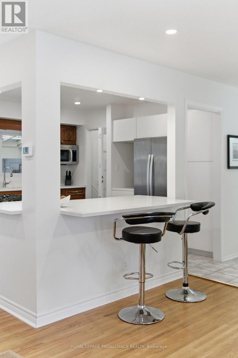 Charming Brick Bungalow with Versatile Potential. Ideally situated between Trenton and Belleville, this meticulously maintained, carpet-free brick bungalow offers a blend of modern updates and flexible living. Perfectly positioned for professionals and families alike, the property is minutes from 8 Wing Trenton, Loyalist College, and Highway 401, with the added benefit of being within walking distance to elementary and secondary schools. The main level features a functional, light-filled layout with three spacious bedrooms and a contemporary 4-piece bath. The recently renovated kitchen serves as the home's centerpiece, recently renovated with elegant quartz countertops and premium stainless steel appliances. Adjacent to the main living area, a climate-controlled four-season sunroom and a private screened porch offer year-round enjoyment of the tranquil backyard. The fully finished lower level presents a wonderful future opportunity for an in-law suite or supplemental rental income, already featuring a secondary kitchen and a 3-piece bathroom. With notable upgrades including newer main-floor windows (2023), roof (2018), and high-efficiency gas heating, this move-in-ready home offers both comfort and long-term flexibility in a prime location. (id:64974)