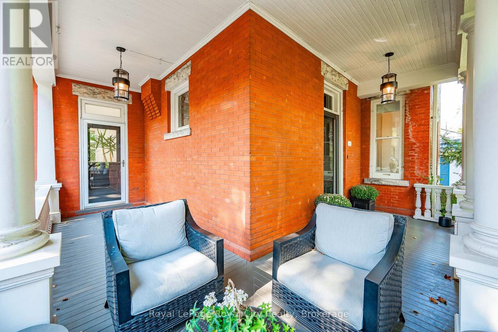 Step into the timeless elegance of 138 Dublin Street N, a captivating century home nestled in the heart of Downtown Guelph. From the moment you arrive, the charming wraparound porch beckons you into a residence where historic beauty meets modern sophistication. Every detail has been thoughtfully curated, from the exquisite stained-glass windows to the grand curved staircase in the foyer. Hardwood floors, crown moulding, and soaring ceilings create a sense of refinement, while the intricate artistry throughout sets this home apart. The inviting living and dining rooms boast quintessential century home features, including pocket doors and a new electric fireplace, perfect for cozy evenings. The main level also offers a versatile family room with walkout access to the porch. The heart of the home is the fully remodeled kitchen, showcasing custom Barzotti cabinetry, a spacious island, and top-of-the-line Viking and Miele appliances. A secondary staircase, convenient laundry/mudroom, two pantries, and a 2-piece powder room complete this level, leading seamlessly to your private backyard retreat. Upstairs, the primary suite is a sanctuary, featuring a custom walk-in closet and a luxurious ensuite. Two additional bedrooms and a sunroom with balcony access add to the charm. The third level offers a fourth bedroom and a versatile recreation space, ideal for hobbies, yoga, or quiet reflection. Outside, the low-maintenance backyard is an entertainers dream, with a spacious deck, new gazebo, hot tub, and detached garage equipped with a 50-amp EV charging station. The lower level provides ample storage and potential for additional living space. Enjoy the best of both worldsproximity to Guelphs vibrant downtown with its boutique shops, cafés, and restaurants, and the serenity of your own private oasis. This cherished gem is truly one of a kind. Schedule your private showing today and experience the magic for yourself! (id:64974)