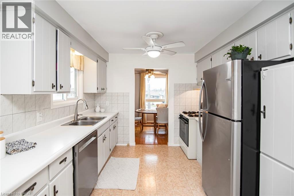 Welcome to this beautifully maintained 3 plus 2 bedroom home with 2072 sq. feet of living space in prime Central Hamilton Mountain location. Situated on a desirable pie-shaped lot, this property offers exceptional outdoor space and privacy. Pride of ownership is evident throughout. This home features two gas ovens for the chef and two gas fireplaces, perfect for comfortable living year-round. The fully finished basement includes an additional kitchen, two bedrooms, gorgeous bathroom and oversized laundry area-making it an excellent option for in-laws, extended family, or multi-generational living. A rare opportunity offering flexibility space, and outstanding care in a sought after neighbourhood. The two bathrooms are updated and the lower level bathroom includes heated flooring and wonderful custom made walk-in shower. Both kitchens have wonderful counter space and the sharp white cabinetry is a desirable feature. This home has upgraded lighting in many rooms and also has central vacuum and central air conditioning. Enjoy your wonderful pie shaped and beautiful back yard with the gorgeous shed with electricity and natural gas hook up for barbequing. Your main floor den or office adds another get away and private area for a work office. A nice clean and dry crawl space is perfect for storage! In addition this home is nestled in a quiet and desirable Hamilton Mountain location and conveniently located near shopping, transportation and schools. This home has been exceptionally well cared for and thiswill not last! (id:64974)