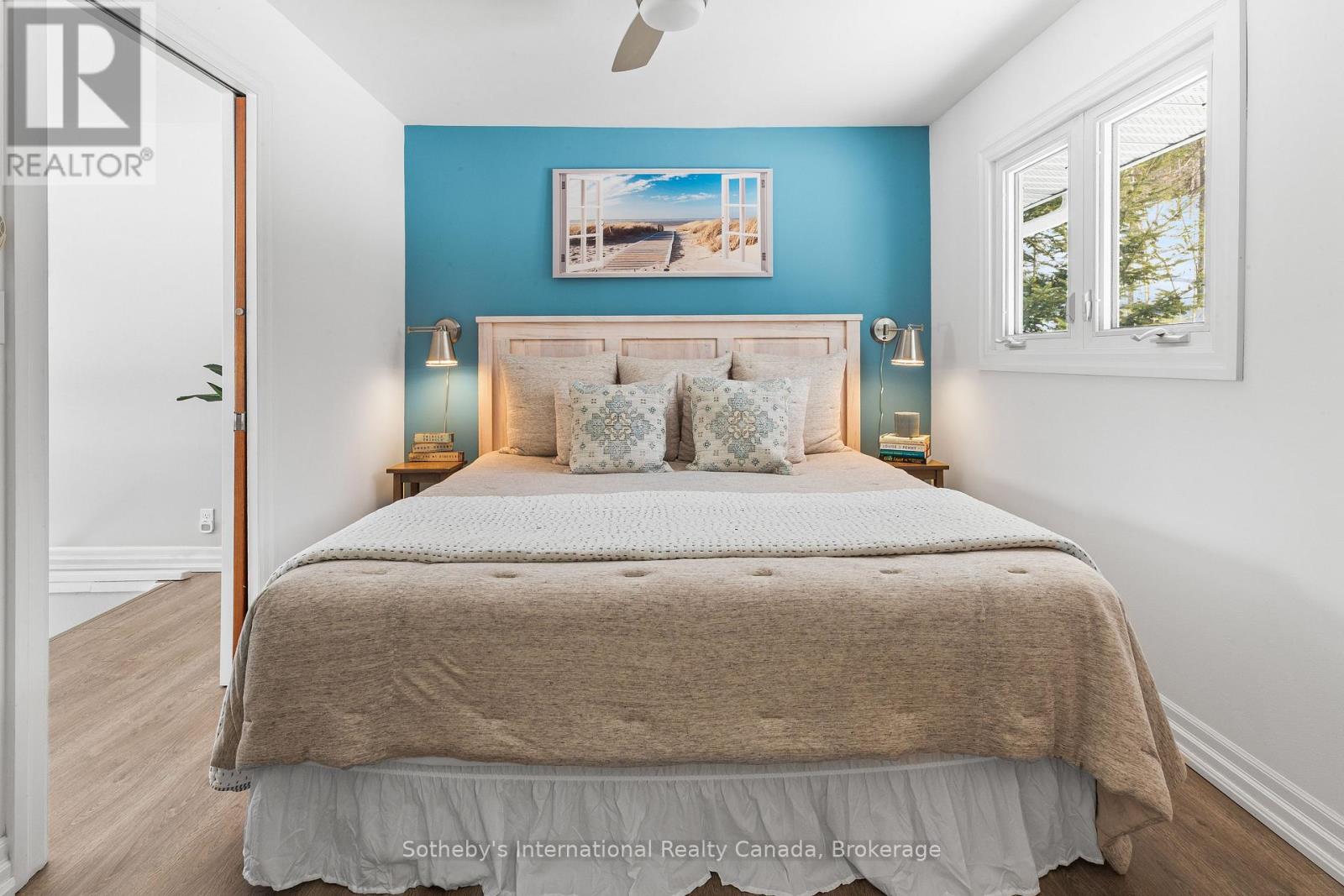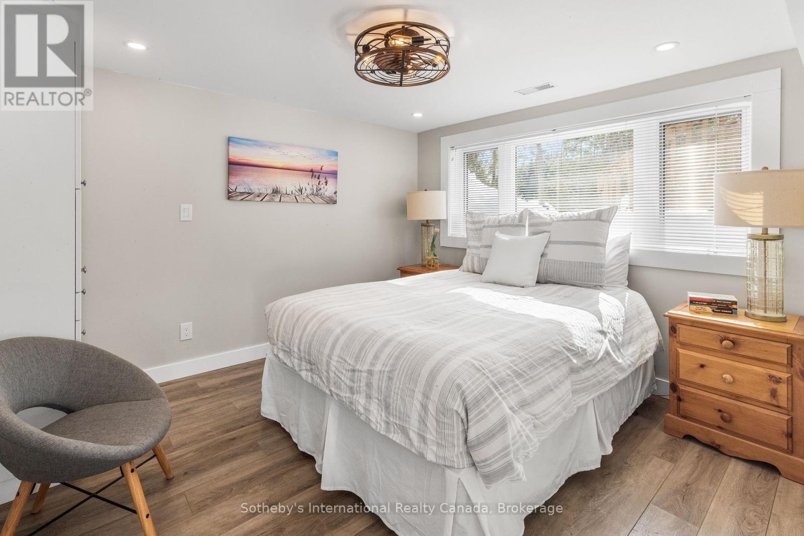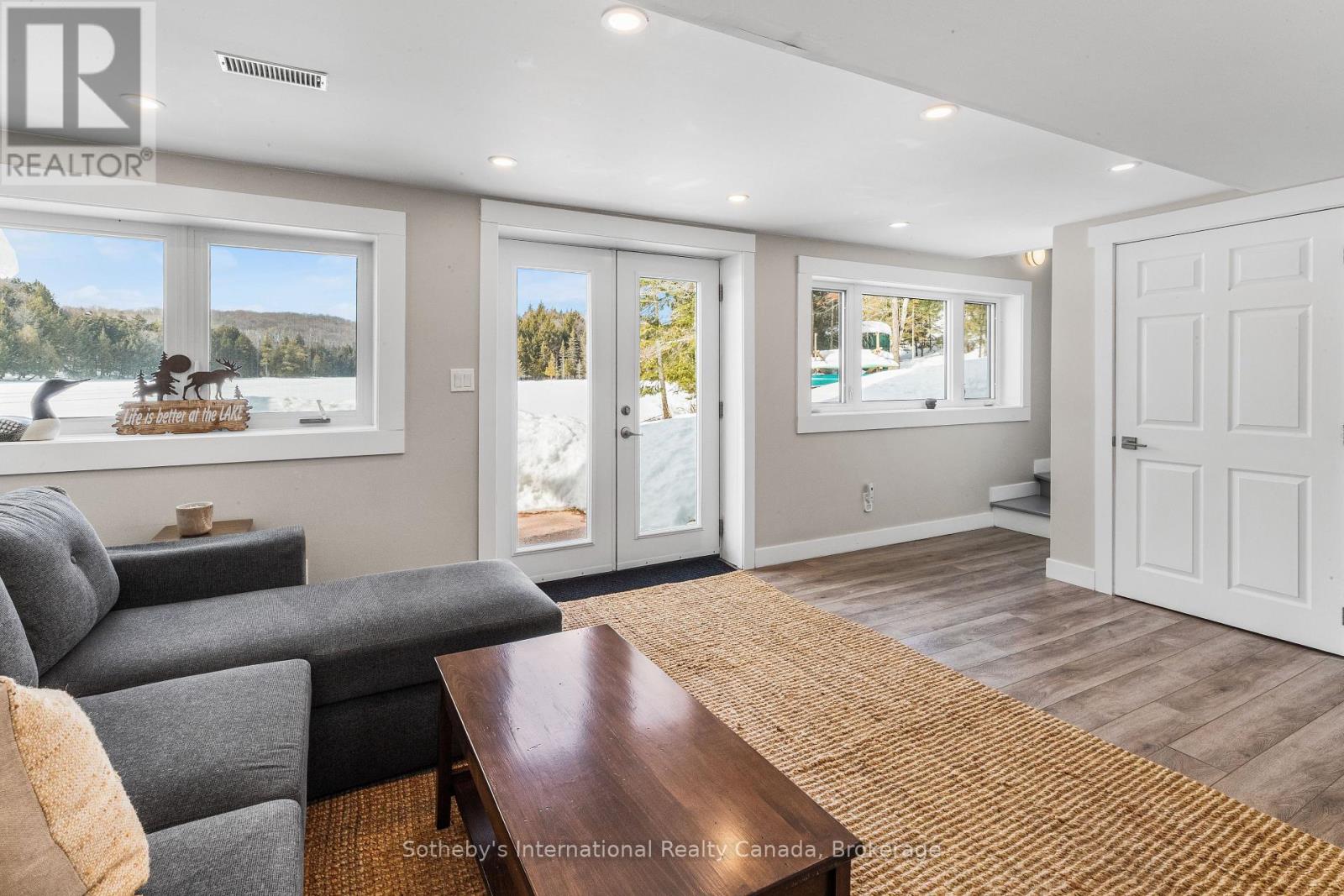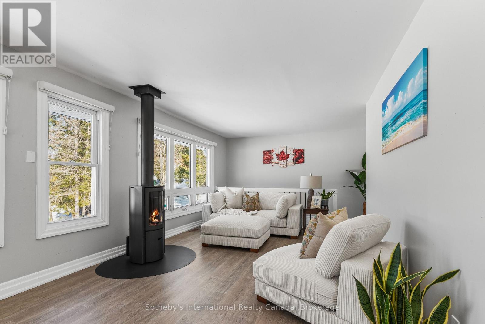 Nestled in a serene and secluded setting, this fully renovated three-bedroom cottage is a perfect blend of modern comfort and natural beauty. Boasting an impressive 726 feet of pristine water frontage, this gem offers breathtaking views and an enviable southwest exposure, ensuring you bask in all-day sunshine and spectacular sunsets. Just steps from the shore, this cottage is a rare find; you could not replicate such a prime location today. Enjoy the tranquility of your private beach while being conveniently located only 10 minutes from Arrowhead Provincial Park and 15 minutes from downtown Huntsville. Here, you'll find a vibrant selection of restaurants, golf courses, and grocery stores, making every amenity easily accessible. For those quick errands, a small grocery store in Novar is just a five-minute drive away, providing the convenience you need while maintaining the peaceful retreat vibe. This cottage is not just a home; it's a lifestyle. Imagine sipping your morning coffee overlooking the gentle waves or winding down with friends around a fire pit as the sun sets over the water. With its fresh renovations, immaculate interiors, and stunning outdoor spaces, this property is designed for both relaxation and entertainment. Whether you're seeking a year-round residence or a weekend getaway, this cottage offers the ideal escape from the hustle and bustle of everyday life. This cottage is also currently a very successful AirBnB and in a township where a permit is not required - excellent opportunity to make an income while not there. Don't miss this opportunity to own your own slice of paradise-schedule a viewing today and experience firsthand the magic of lakeside living! (id:64974)