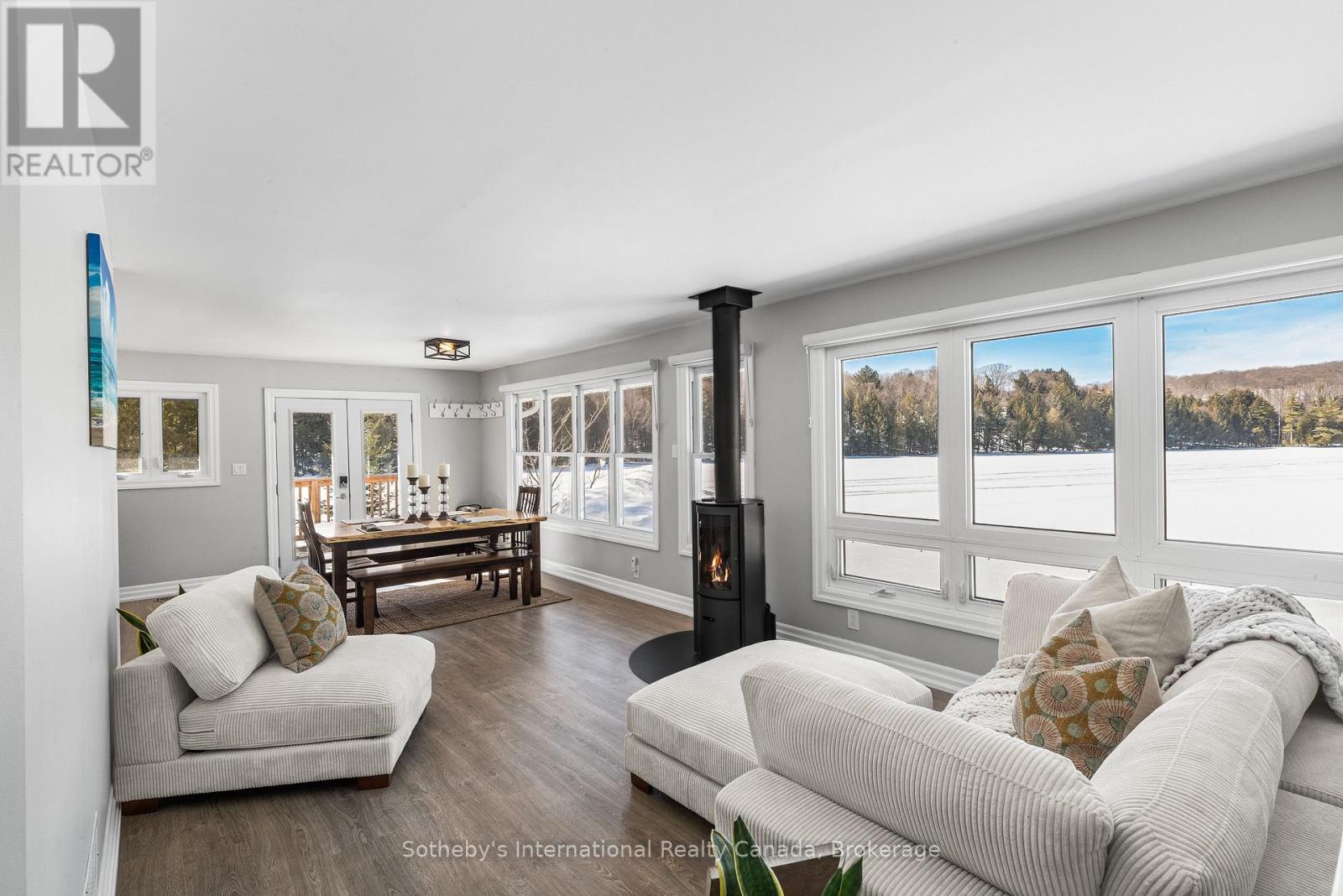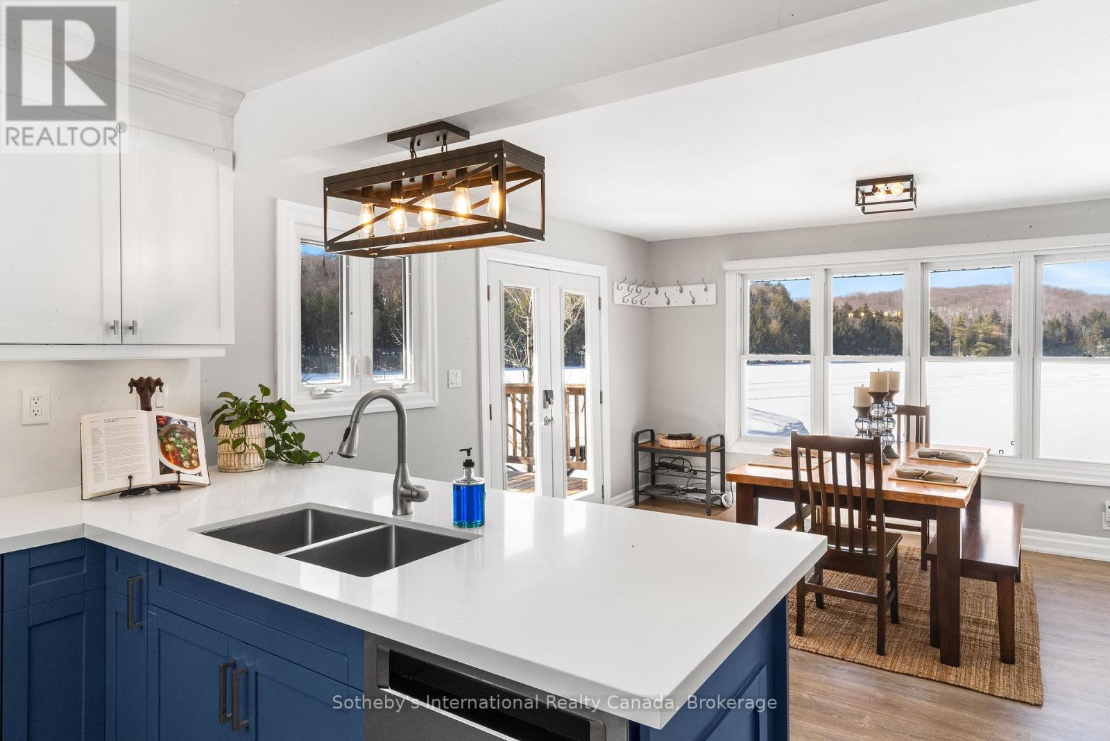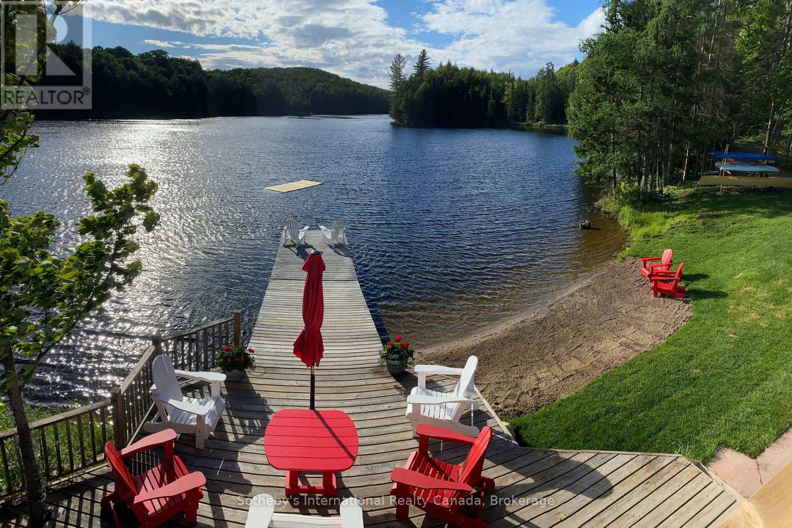 Nestled in a serene and secluded setting, this fully renovated three-bedroom cottage is a perfect blend of modern comfort and natural beauty. Boasting an impressive 726 feet of pristine water frontage, this gem offers breathtaking views and an enviable southwest exposure, ensuring you bask in all-day sunshine and spectacular sunsets. Just steps from the shore, this cottage is a rare find; you could not replicate such a prime location today. Enjoy the tranquility of your private beach while being conveniently located only 10 minutes from Arrowhead Provincial Park and 15 minutes from downtown Huntsville. Here, you'll find a vibrant selection of restaurants, golf courses, and grocery stores, making every amenity easily accessible. For those quick errands, a small grocery store in Novar is just a five-minute drive away, providing the convenience you need while maintaining the peaceful retreat vibe. This cottage is not just a home; it's a lifestyle. Imagine sipping your morning coffee overlooking the gentle waves or winding down with friends around a fire pit as the sun sets over the water. With its fresh renovations, immaculate interiors, and stunning outdoor spaces, this property is designed for both relaxation and entertainment. Whether you're seeking a year-round residence or a weekend getaway, this cottage offers the ideal escape from the hustle and bustle of everyday life. This cottage is also currently a very successful AirBnB and in a township where a permit is not required - excellent opportunity to make an income while not there. Don't miss this opportunity to own your own slice of paradise-schedule a viewing today and experience firsthand the magic of lakeside living! (id:64974)