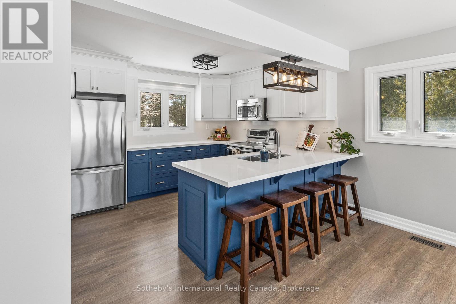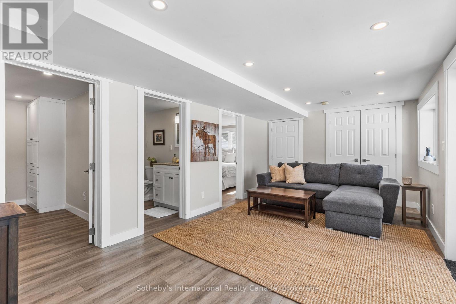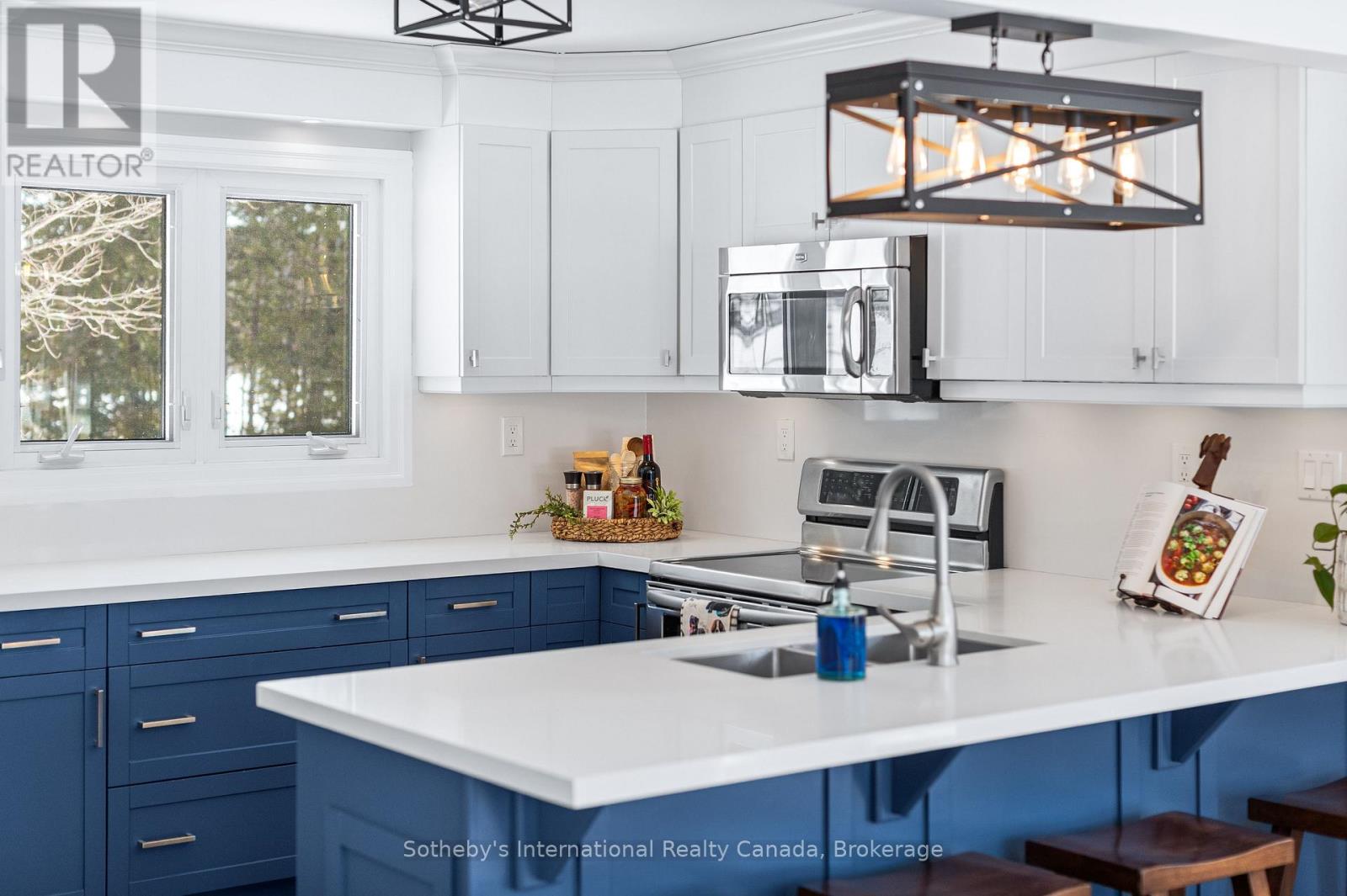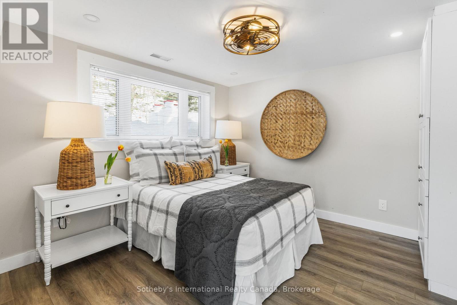 Nestled in a serene and secluded setting, this fully renovated three-bedroom cottage is a perfect blend of modern comfort and natural beauty. Boasting an impressive 726 feet of pristine water frontage, this gem offers breathtaking views and an enviable southwest exposure, ensuring you bask in all-day sunshine and spectacular sunsets. Just steps from the shore, this cottage is a rare find; you could not replicate such a prime location today. Enjoy the tranquility of your private beach while being conveniently located only 10 minutes from Arrowhead Provincial Park and 15 minutes from downtown Huntsville. Here, you'll find a vibrant selection of restaurants, golf courses, and grocery stores, making every amenity easily accessible. For those quick errands, a small grocery store in Novar is just a five-minute drive away, providing the convenience you need while maintaining the peaceful retreat vibe. This cottage is not just a home; it's a lifestyle. Imagine sipping your morning coffee overlooking the gentle waves or winding down with friends around a fire pit as the sun sets over the water. With its fresh renovations, immaculate interiors, and stunning outdoor spaces, this property is designed for both relaxation and entertainment. Whether you're seeking a year-round residence or a weekend getaway, this cottage offers the ideal escape from the hustle and bustle of everyday life. This cottage is also currently a very successful AirBnB and in a township where a permit is not required - excellent opportunity to make an income while not there. Don't miss this opportunity to own your own slice of paradise-schedule a viewing today and experience firsthand the magic of lakeside living! (id:64974)