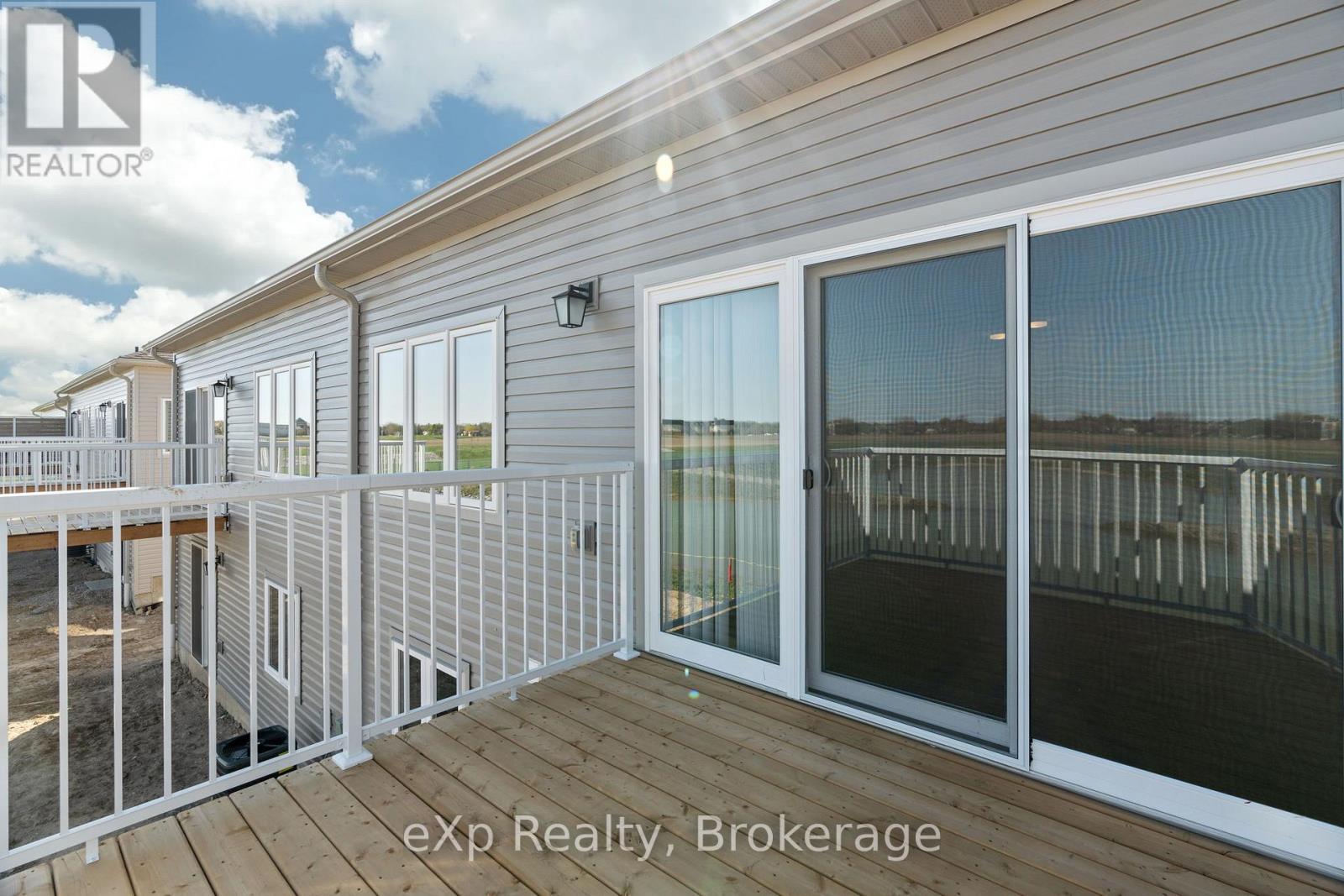 Welcome to this beautifully built 2025 bungalow townhome offering 2 spacious bedrooms and 2 full bathrooms in a serene, newly developed community. Backing onto a pond, this home provides peaceful views and a perfect setting for quiet living.Inside, you'll find a bright, open-concept layout filled with natural light and modern finishes throughout, including a convenient upstairs laundry closet. Step out onto the back deck to enjoy the fresh air, or take advantage of the walkout basement with a covered patio area below.An ideal lease opportunity for anyone looking for a stylish, low-maintenance home in a quiet location. (id:64974)