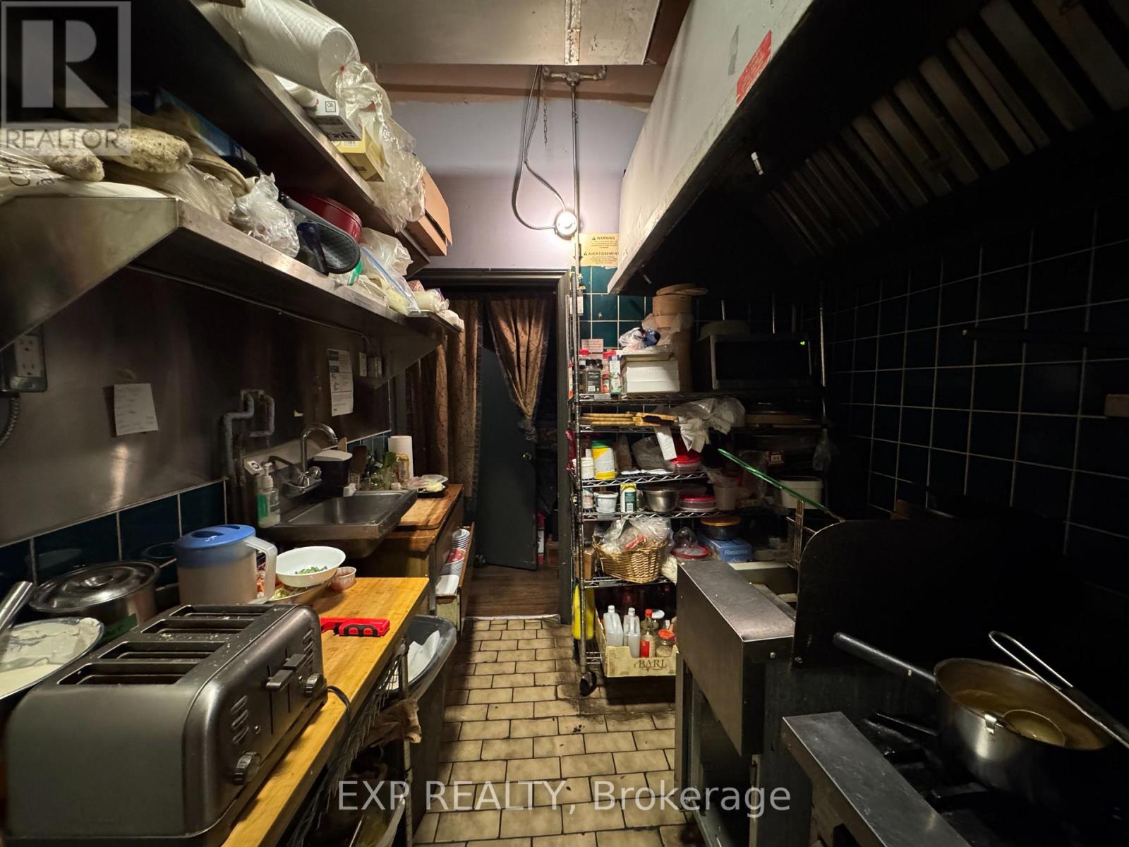 Prime Parkdale Turn-Key Restaurant & Bar opportunity. > Located in the vibrant heart of West Queen West at 1384 Queen Street West, this 1,400 sq. ft. space is fully fixtured and ready for a new concept. The interior is licensed for 30 guests, supplemented by a seasonal CaféTO patio. The facility features a high-performance 10-ft exhaust hood with fire suppression and a spacious walk-in fridge. Includes a "high and dry" partial basement for efficient storage. Benefit from a fresh 5-year lease with renewal options at favorable rates and a supportive landlord. High foot traffic and excellent visibility make this the perfect setup for an owner-operator. (id:64974)