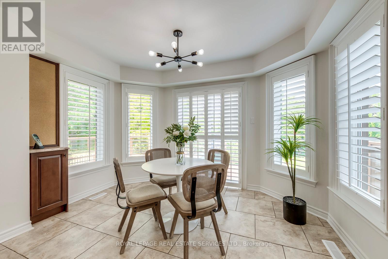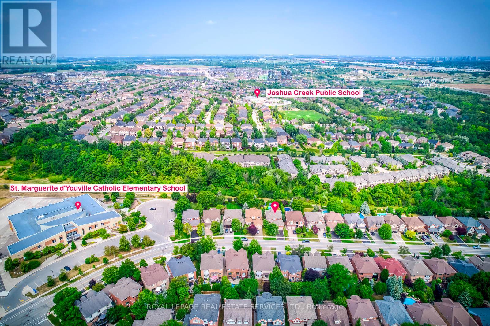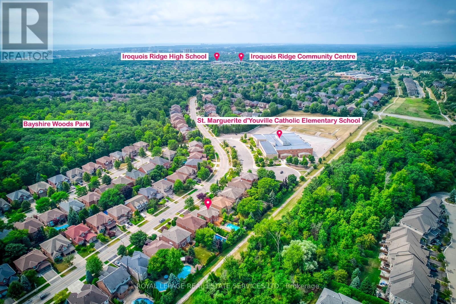 Stunning 4 Bedroom Family Home Backing onto Ravine in Prestigious Joshua Creek! This beautifully maintained 3,079 sq ft detached home offers 4 bedrooms and 4 bathrooms, situated on a premium ravine lot with breathtaking views. Enjoy spectacular sunsets from your private deck overlooking a beautifully landscaped backyard oasis with a pool, mature trees, and complete privacy. The main level is thoughtfully designed for comfortable family living-featuring a spacious dining room perfect for gatherings, a bright living room with vaulted ceilings and impressive windows, and a dedicated office for working from home.Upstairs, the large primary bedroom retreat offers a walk-in closet and a relaxing atmosphere, complemented by three additional spacious bedrooms and a beautifully renovated main bath.The walk-out basement provides fantastic extra living space with a generous rec room, bar, game area, full bath, and ample storage-ideal for entertaining or relaxing after a summer swim. Recent upgrades include stylish new flooring and upgraded stair finishes (2022), an owned hot water heater (2022). Located in the highly desirable Joshua Creek community, within top-rated school zones (Joshua Creek PS & Iroquois Ridge HS), and complete with a double garage, this home is the perfect blend of space, comfort, and location. (id:64974)