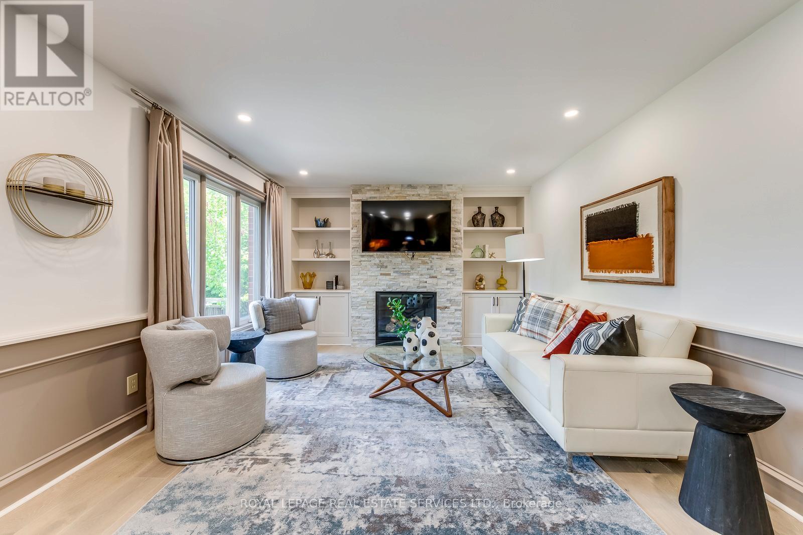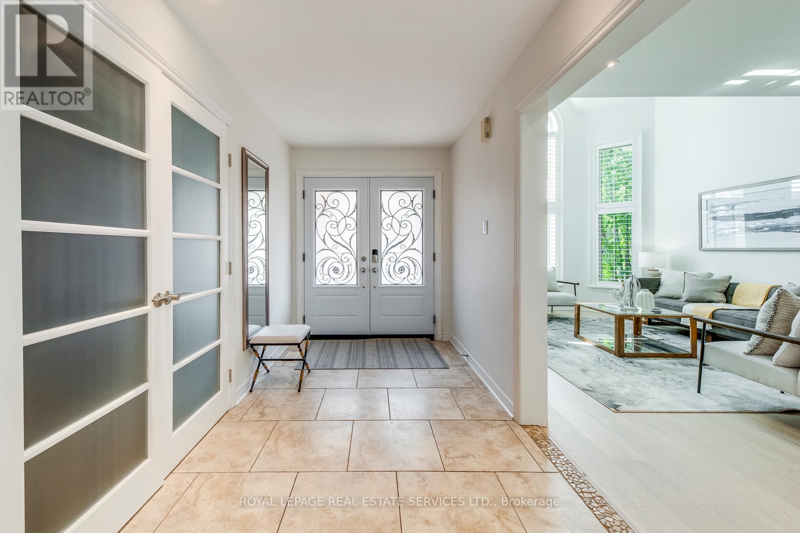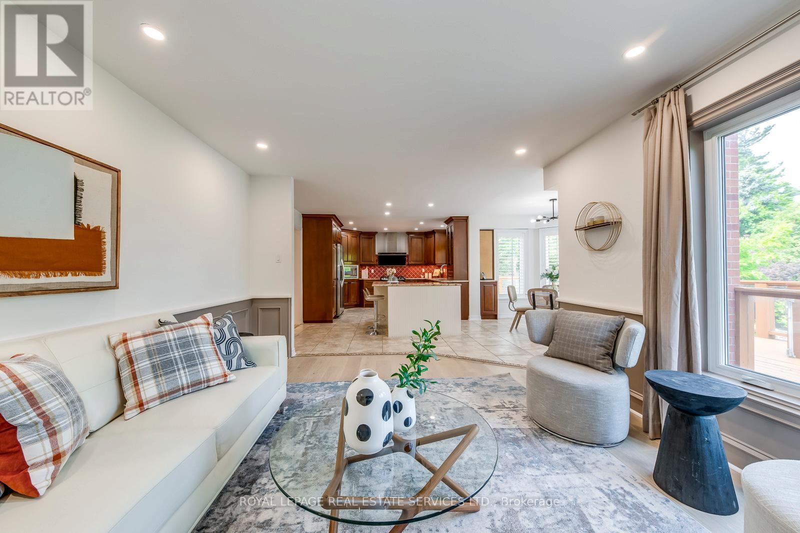 Stunning 4 Bedroom Family Home Backing onto Ravine in Prestigious Joshua Creek! This beautifully maintained 3,079 sq ft detached home offers 4 bedrooms and 4 bathrooms, situated on a premium ravine lot with breathtaking views. Enjoy spectacular sunsets from your private deck overlooking a beautifully landscaped backyard oasis with a pool, mature trees, and complete privacy. The main level is thoughtfully designed for comfortable family living-featuring a spacious dining room perfect for gatherings, a bright living room with vaulted ceilings and impressive windows, and a dedicated office for working from home.Upstairs, the large primary bedroom retreat offers a walk-in closet and a relaxing atmosphere, complemented by three additional spacious bedrooms and a beautifully renovated main bath.The walk-out basement provides fantastic extra living space with a generous rec room, bar, game area, full bath, and ample storage-ideal for entertaining or relaxing after a summer swim. Recent upgrades include stylish new flooring and upgraded stair finishes (2022), an owned hot water heater (2022). Located in the highly desirable Joshua Creek community, within top-rated school zones (Joshua Creek PS & Iroquois Ridge HS), and complete with a double garage, this home is the perfect blend of space, comfort, and location. (id:64974)
