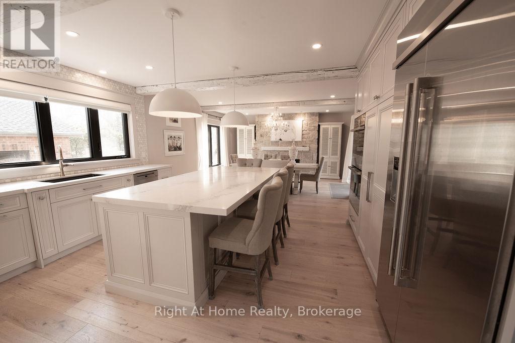 Nestled in the Heart of Downtown Oakville, this renovated 3000+ sq ft home blends historical charm with modern luxury. Offering 4 bedrooms and 2.5 baths, this home has been extensively updated throughout by Stonewood Homes and finishes that include wide-plank white oak flooring throughout, wood beams, and natural stone fireplaces. The kitchen and walk-through pantry features luxurious custom cabinetry by Chervin Kitchens, high-end appliances and Ceasarstone countertops. The outdoor spaces offer 2 distinct living areas, a Detached 2 car Garage and 2 Driveways. Convenient Downtown living, steps to dining, shopping and Oakville culture. (id:64974)