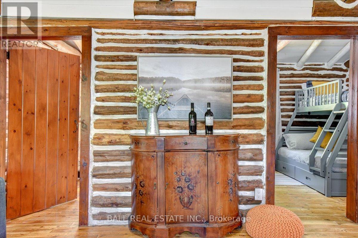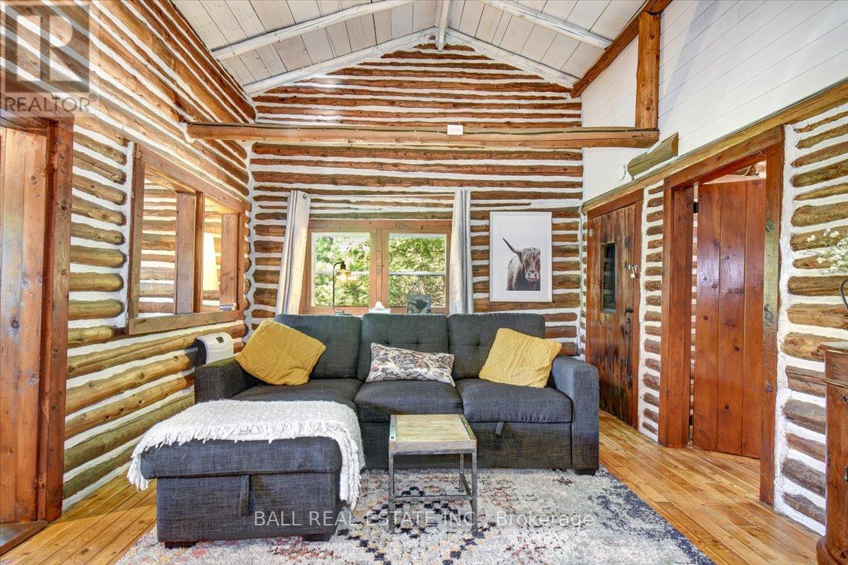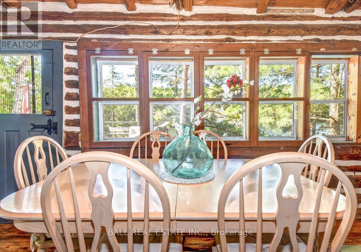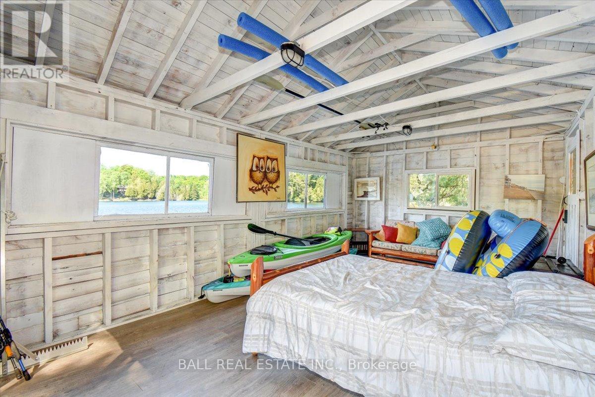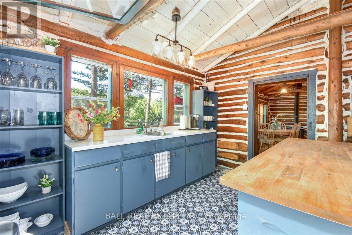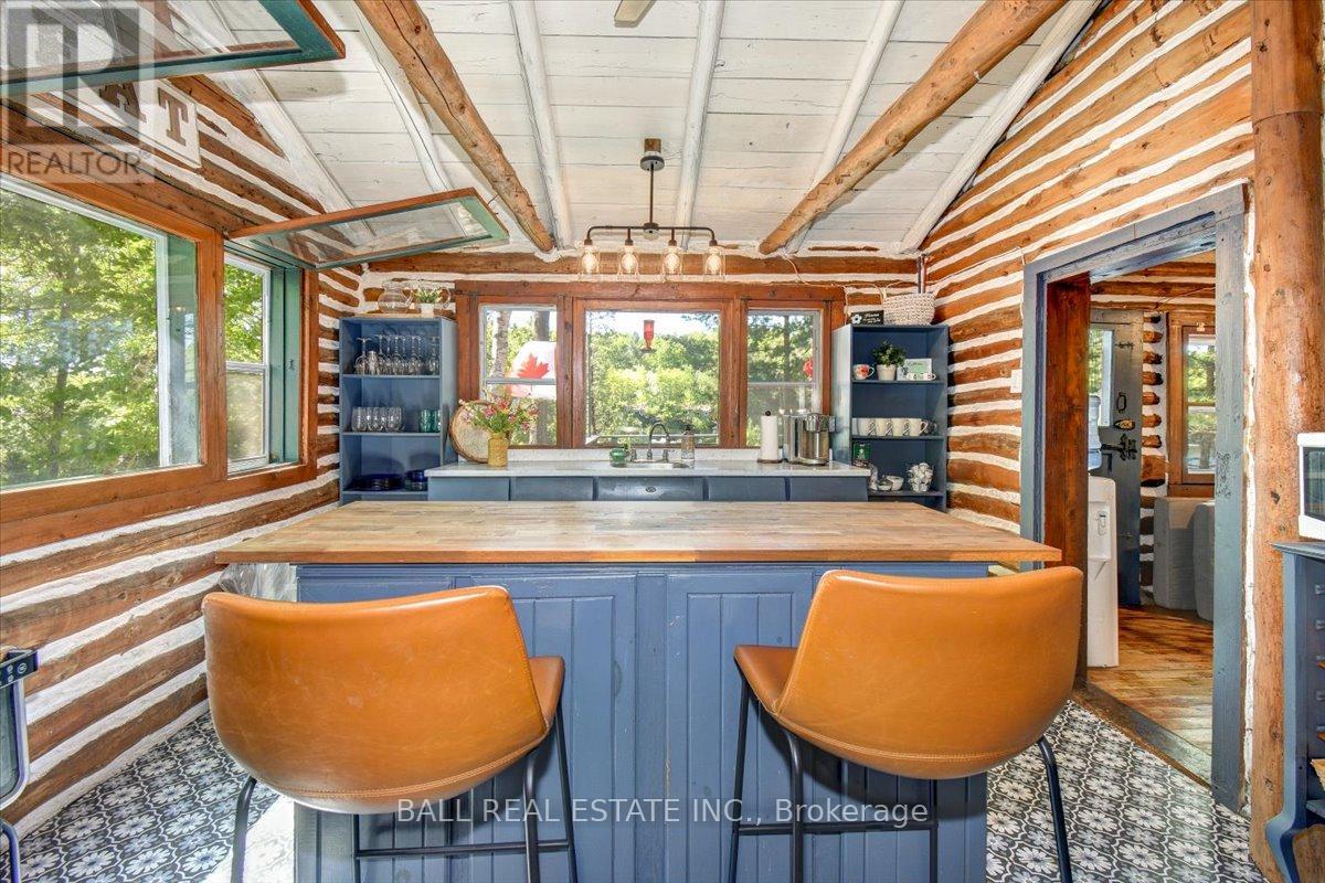 Welcome to your year round retreat on beautiful Chandos Lake! Perched among Granite outcroppings is this well maintained and lovingly cared for classic log cabin with 2 bedroom, 1 bath. Enjoy the view from the sun filled deck or make your way down the meandering path to the boathouse with wrap-around deck where you'll also find a new 12x16 dock with deep, weed-free water! Property also includes a 16 x 24 garage that is perfect for storing water toys. Chandos Lake boasts 3 marinas, Gilmour Point Marina, Shantilly's Place and Lakeview Marina. All marinas have food and gas. Close to the town of Apsley where your can find all amenities such as full service gas station, library, Post Office, LCBO and the arena! ROAD FEES $325.00 PER YEAR. (id:64974)