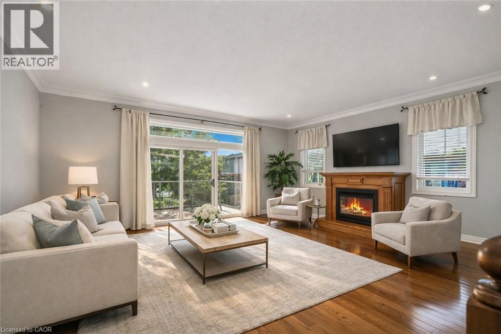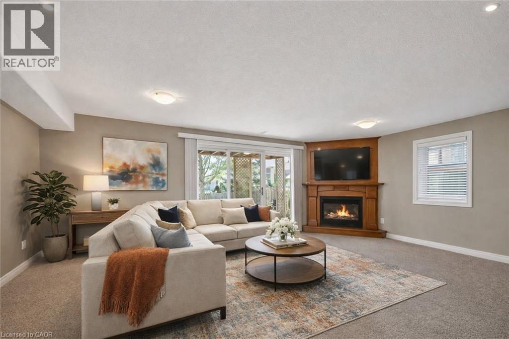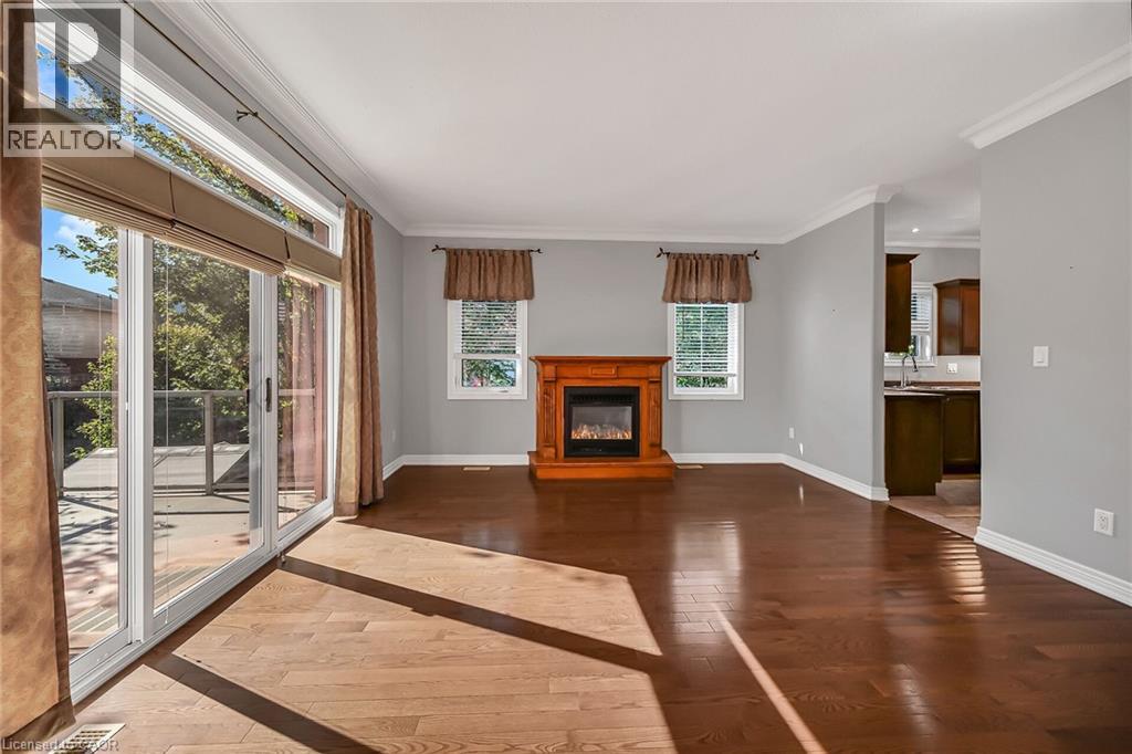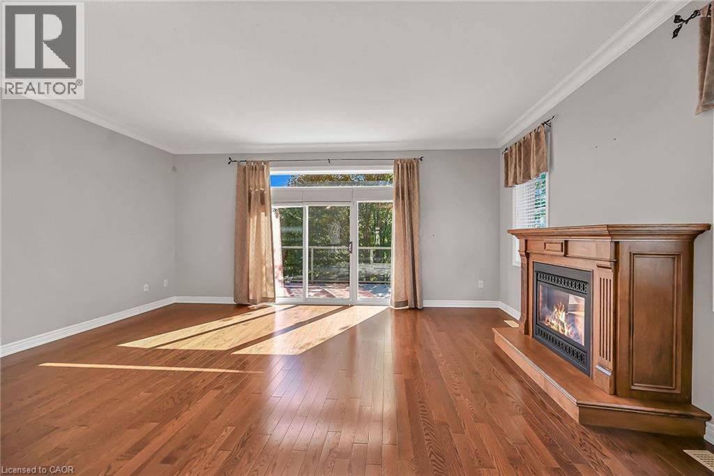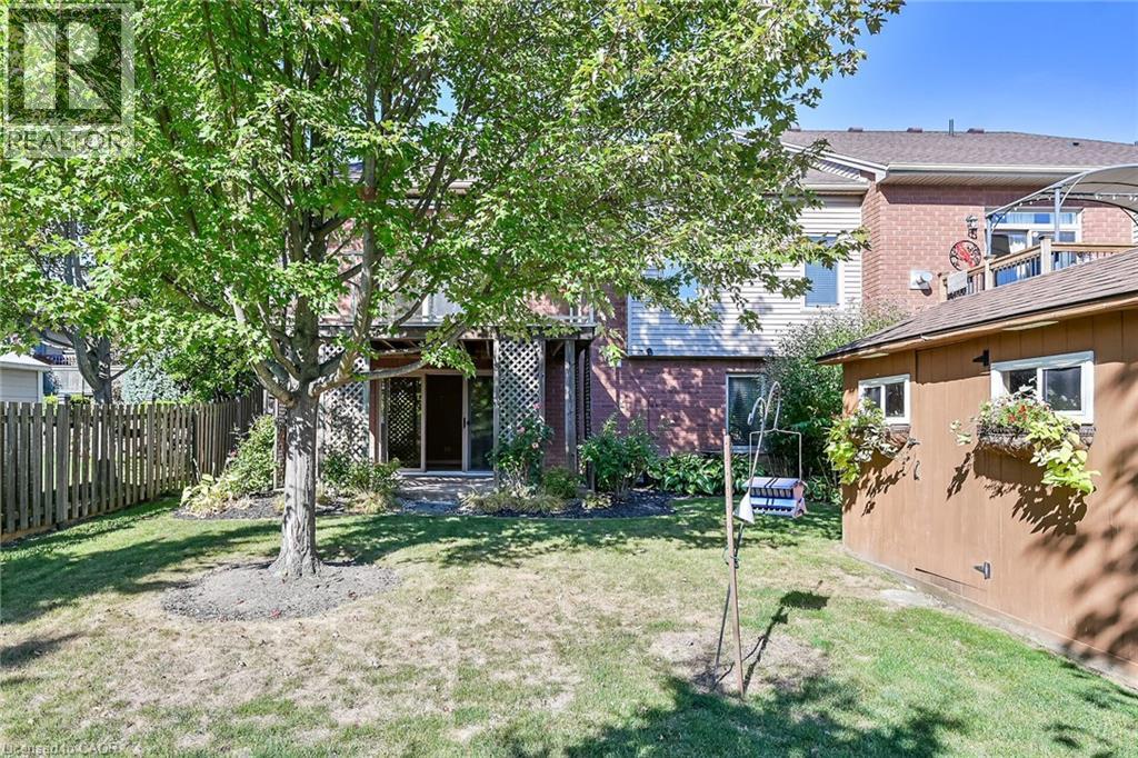 Caledonia's most attractive townhouse neighbourhood has a real beauty for sale! This one floor double garage property is one of only 3 units on Stirling Street. This home boasts a private fenced rear yard with mature trees, large storage shed and walk out from family room to a private stamped concrete patio. Gorgeous mature landscaping with several flowering bushes, hostas and rose bushes. Inside the rooms have large bright windows and feel even more spacious because of the 9' ceilings. There is plenty of space for a kitchen table, lots of cabinets and a gas stove all ready for the family chef. The living room has a walkout balcony with natural gas hook up for bbq and an awning to block the sun in summer. The spacious living room has lovely hardwood flooring and a cozy gas fireplace. This owner used the 2nd bedroom as a formal dining room - it could have many uses and be whatever you wish. The 4 piece main bathroom also houses the washer and dryer and master bedroom has ensuite privilege. Master overlooks your private back yard from 2 large windows. The lower-level family room has another cozy gas fireplace. Third bedroom and additional 3 piece bath makes this a perfect space for guests. There is another room which the seller used as a sewing / hobby room. There is a handy wall heater to keep you toasty. This could be an additional bedroom, exercise / yoga space, office ... endless possibilities. There are plenty of storage spaces downstairs - under the stairs, the furnace room, and a separate small space with lots of shelves. This home is a real gem and its desirable location makes it one of a kind! Don't wait to make it yours. RSA (id:64974)