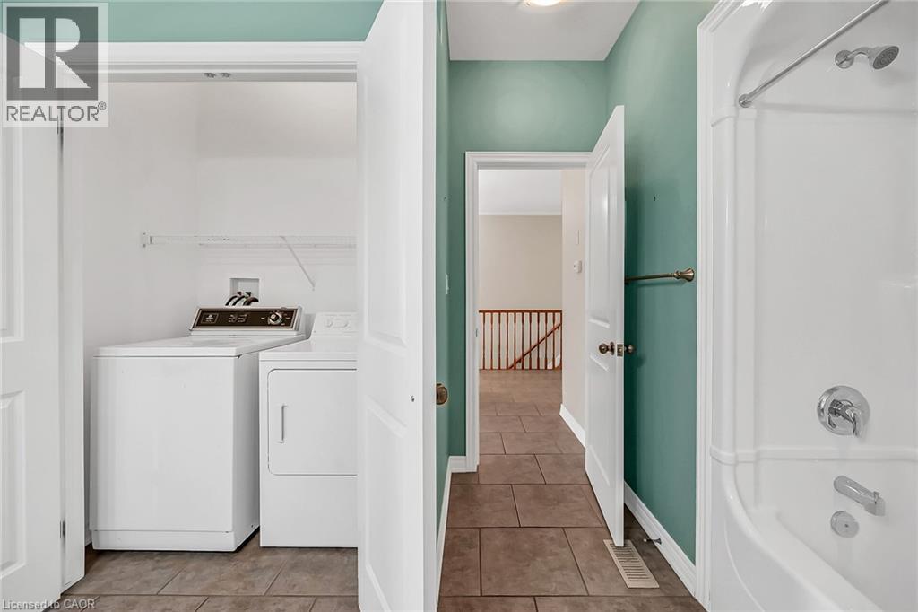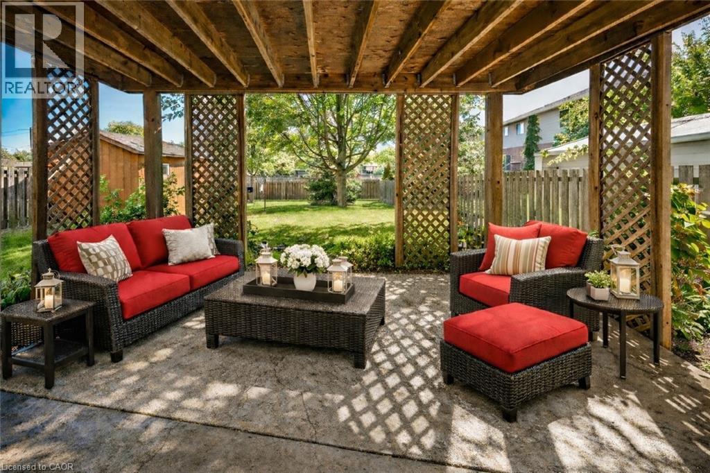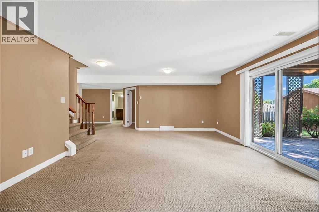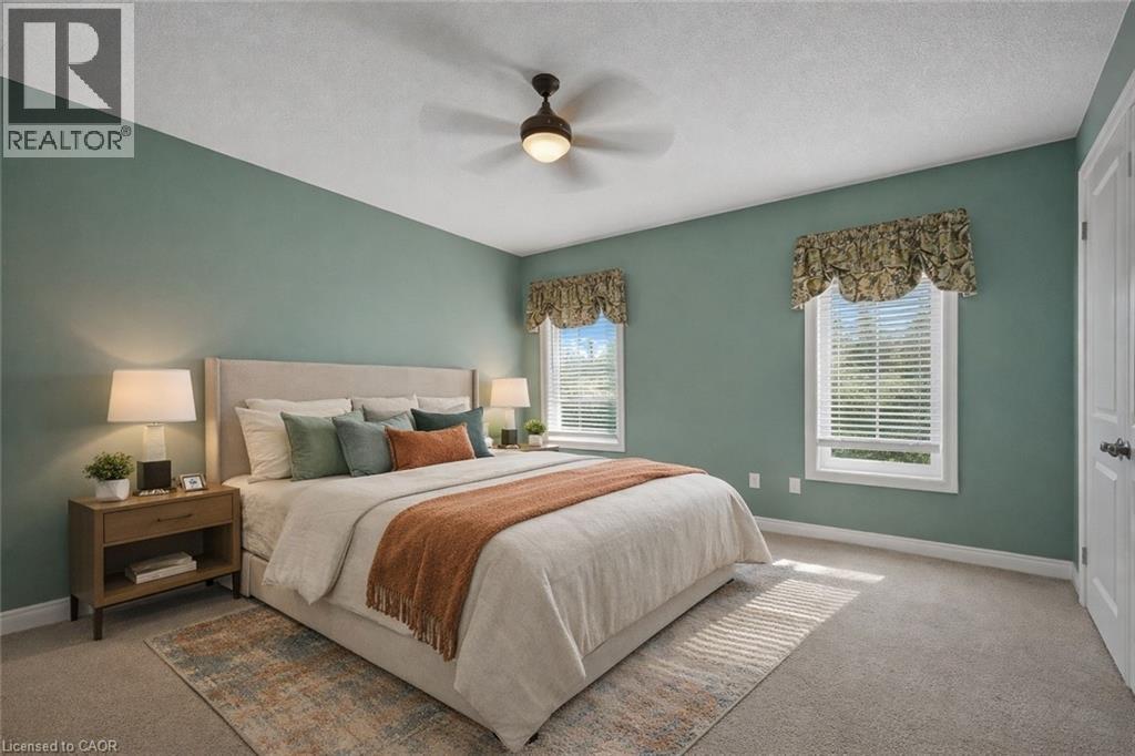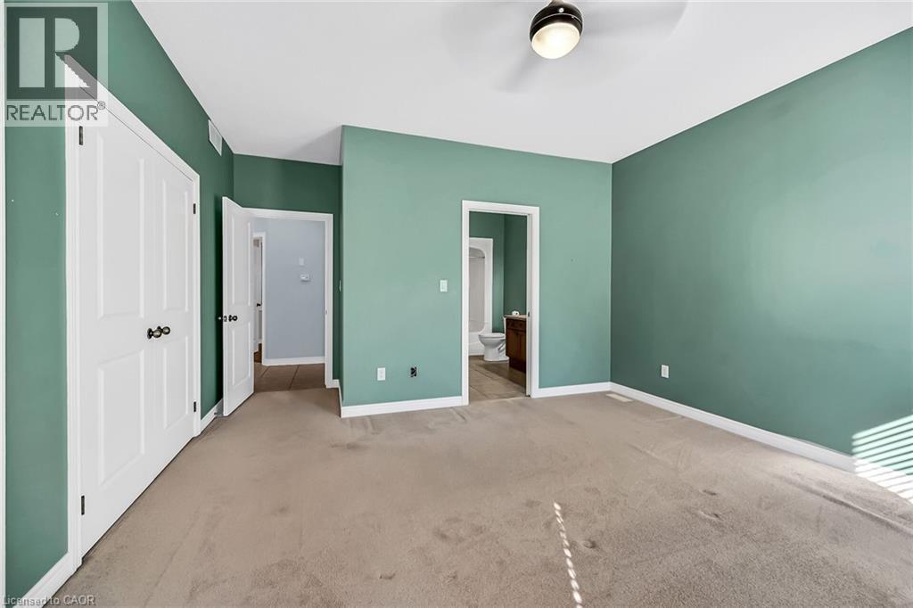 Caledonia's most attractive townhouse neighbourhood has a real beauty for sale! This one floor double garage property is one of only 3 units on Stirling Street. This home boasts a private fenced rear yard with mature trees, large storage shed and walk out from family room to a private stamped concrete patio. Gorgeous mature landscaping with several flowering bushes, hostas and rose bushes. Inside the rooms have large bright windows and feel even more spacious because of the 9' ceilings. There is plenty of space for a kitchen table, lots of cabinets and a gas stove all ready for the family chef. The living room has a walkout balcony with natural gas hook up for bbq and an awning to block the sun in summer. The spacious living room has lovely hardwood flooring and a cozy gas fireplace. This owner used the 2nd bedroom as a formal dining room - it could have many uses and be whatever you wish. The 4 piece main bathroom also houses the washer and dryer and master bedroom has ensuite privilege. Master overlooks your private back yard from 2 large windows. The lower-level family room has another cozy gas fireplace. Third bedroom and additional 3 piece bath makes this a perfect space for guests. There is another room which the seller used as a sewing / hobby room. There is a handy wall heater to keep you toasty. This could be an additional bedroom, exercise / yoga space, office ... endless possibilities. There are plenty of storage spaces downstairs - under the stairs, the furnace room, and a separate small space with lots of shelves. This home is a real gem and its desirable location makes it one of a kind! Don't wait to make it yours. RSA (id:64974)