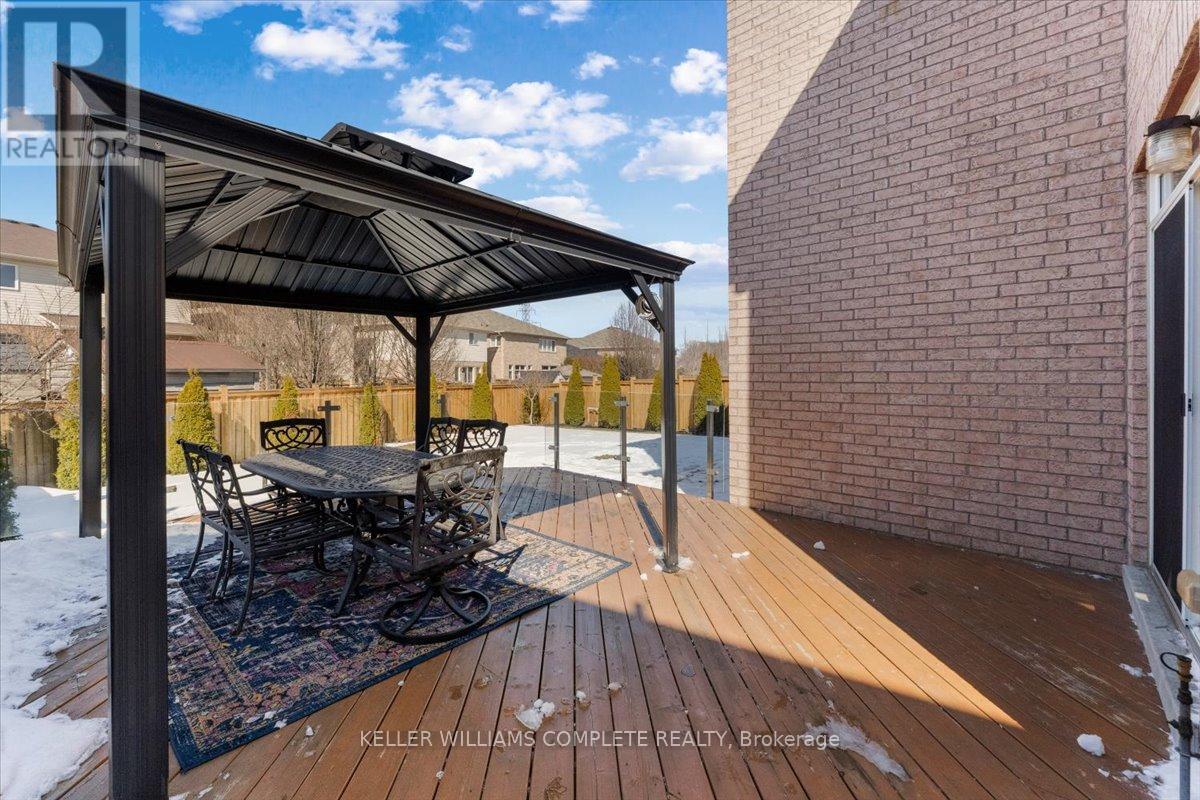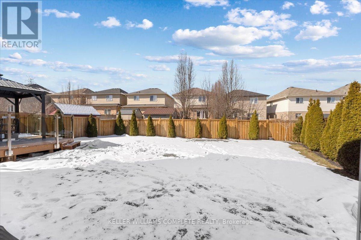 Welcome to this beautifully maintained, move-in-ready home in the highly sought-after Meadowlands community-known for it's quiet streets, family-friendly environment, and excellent proximity to all conveniences. This impressive property features an elegant oak staircase with an iron railing, engineered hardwood flooring throughout, and a full two-car garage equipped with a 240-volt EV outlet. The wide exposed-aggregate driveway and double front entry doors add strong curb appeal from the moment you arrive. Roof was replaced approximately 3 years ago for added peace of mind. The modern kitchen showcases a premium quartz waterfall countertop with an extended matching backsplash, designed for both functionality and contemporary style. A finished basement provides valuable additional living space suitable for a recreation area, home office, or multi-use family room. Set on a premium pie-shaped lot, the expansive backyard is ideal for hosting and everyday enjoyment. It includes a generous wood deck with glass railing and a well-lit storage shed, offering both comfort and practicality for outdoor living. Located close to top-rated schools, major shopping power centres, parks, transit, and quick highway access, this home is an excellent choice for families planning to grow or for those looking to downsize while maintaining comfort, quality, and convenience. (id:64974)