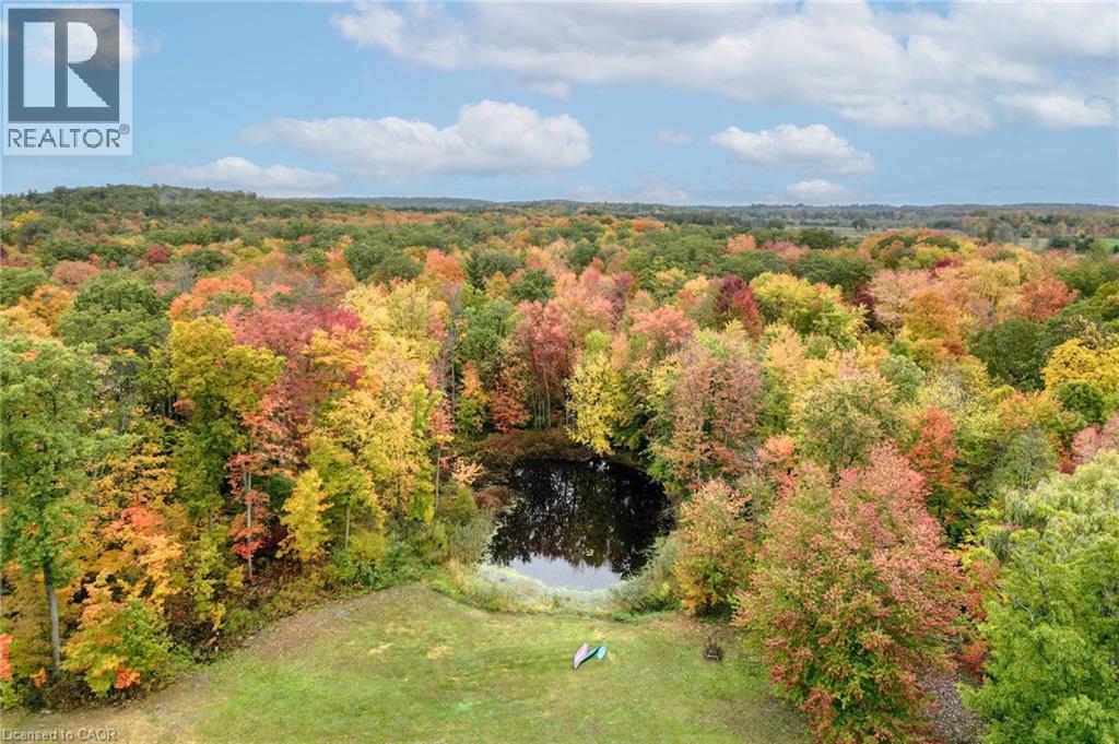 UNPARALLELED Privacy on 32 ACRES — A Rare Country Estate with Modern Comforts. Welcome to an extraordinary retreat offering breathtaking views and endless possibilities, combining refined living with the tranquility of nature. The expansive 5-bedroom bungalow showcases timeless design and light-filled spaces throughout, featuring a grand living room with floor-to-ceiling windows framing sweeping views of open fields and forest. The beautiful primary bedroom offers a private fireplace, a luxurious ensuite with a standalone tub & shower — a perfect sanctuary for relaxation. A walkout lower level provides equally impressive natural light and panoramic views, expanding your living and entertaining areas with a seamless indoor-outdoor connection. Step onto the large elevated deck and enjoy a serene, cottage-like ambiance — the ideal setting for gatherings or quiet moments in total seclusion. A spacious mudroom provides ample storage for every family’s needs, blending practicality with style. The 3-bedroom accessory apartment offers exceptional flexibility for extended family, guests, or a premium rental opportunity. For those seeking income potential, the property includes solar panels, selective forest logging, and approximately 10 acres of rentable farmland, creating a unique balance of lifestyle and investment. Nature enthusiasts will love the 1-acre pond, perfect for skating, fishing, or peaceful reflection, while acres of private forest with winding trails invite exploration. A 10’ x 20’ greenhouse, orchards, and raised garden boxes support a sustainable lifestyle. Thoughtful design continues with two 3-car garages, a newly paved asphalt driveway, and ample parking. Located in the sought-after town of Ayr, this estate offers small-town charm minutes from Cambridge, Brantford, KW, and Hwy 401 — providing effortless access wherever life takes you. Don’t miss this opportunity to own a one-of-a-kind home, where every day feels like a private getaway. (id:64974)