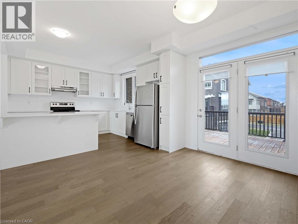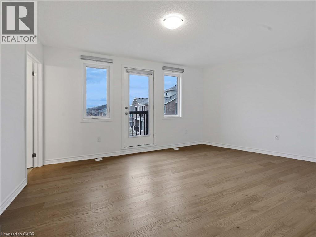 Sought-after Preserve West community! This executive 3+1 bedroom, 3-bath townhome offers an extra-wide layout and approximately 2,361 sq. ft. of modern living space. Welcoming double-door entry leads to a bright, open-concept interior finished in neutral décor throughout. The stylish eat-in kitchen features white cabinetry, quartz countertops, a large island, pantry, and stainless steel appliances, with a walk-out to a spacious private rear balcony-perfect for entertaining.Designed for contemporary living, the home is carpet-free, showcasing 5 oak hardwood floors, a hardwood staircase, and oversized windows on every level that flood the space with natural light. Enjoy the convenience of second-level stackable laundry, a functional mudroom with inside access to the garage, and a private rooftop terrace ideal for relaxing outdoors.The primary bedroom retreat includes a walk-in closet and 3-piece ensuite bath. Modern finishes throughout complete this exceptional home. Steps to Oakville Trafalgar Memorial Hospital, 16 Mile Creek trails, top-rated schools, and everyday amenities. A must-see! (id:64974)