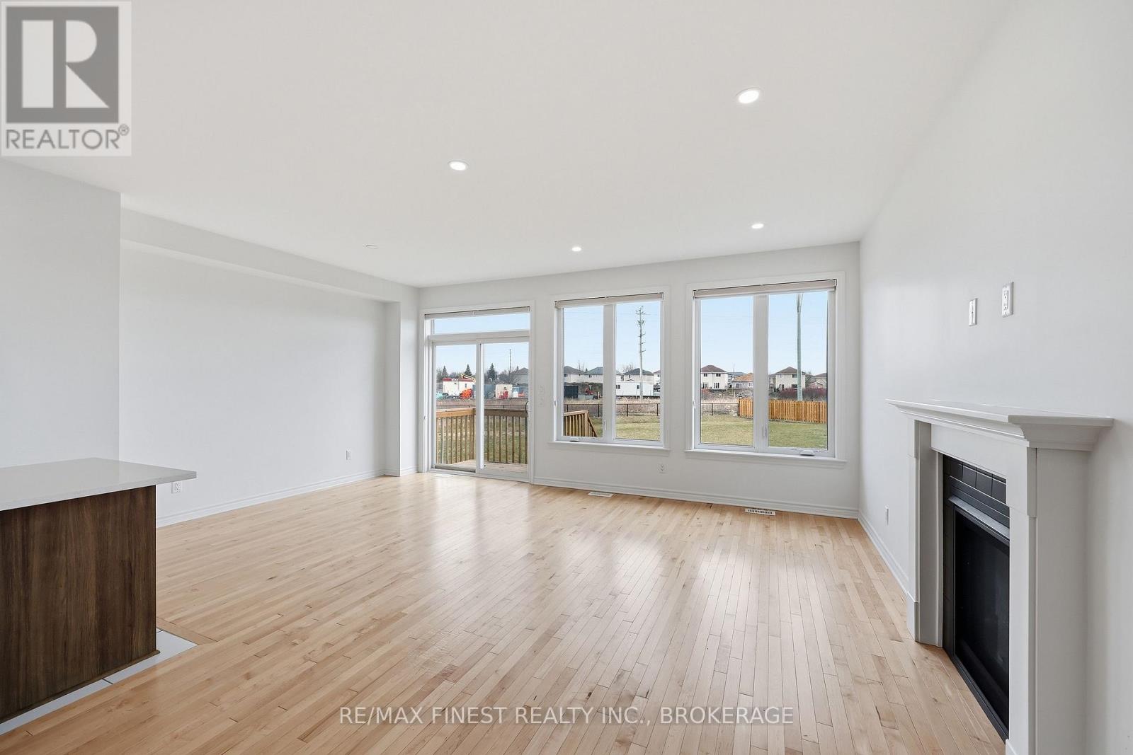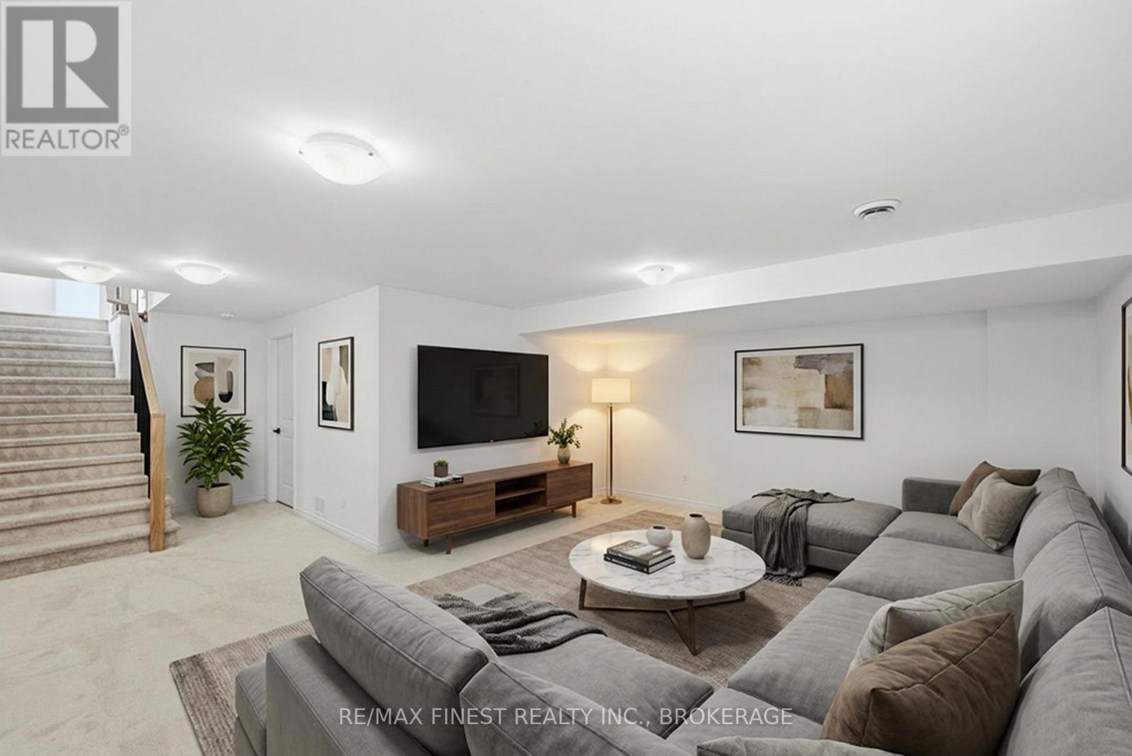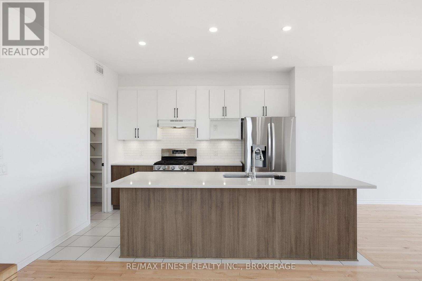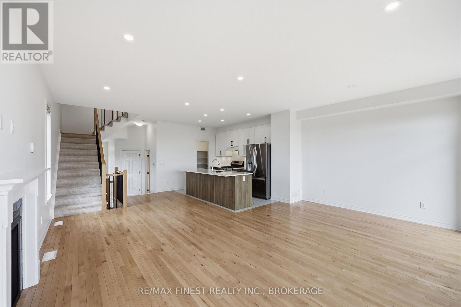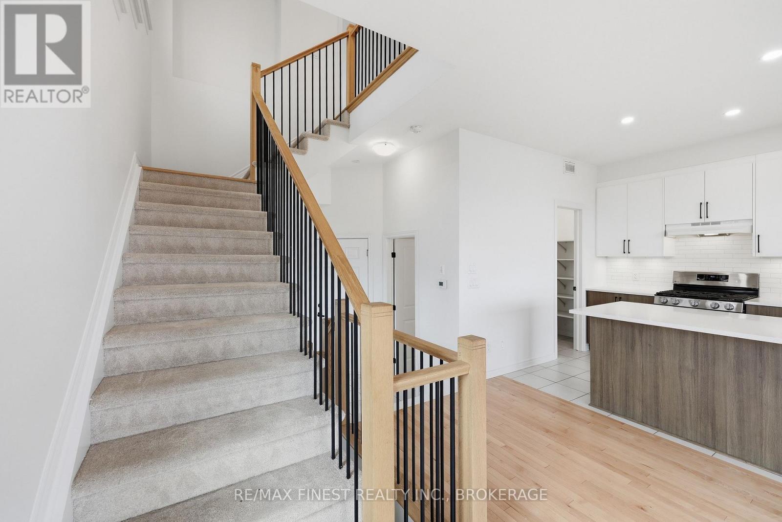 This fantastic end unit townhouse is a beautiful home to settle in and enjoy all of the features it has to offer! Impeccably built, with over 2155 sq ft of finished living space on three levels, the neutral and calming design is the perfect place to call your own! The main floor features an open concept design with gas stove, quartz counter tops, tile backsplash, large island, pantry, beautiful kitchen cabinets. There are pot lights throughout the main floor and a cozy gas fireplace in the living room for you to enjoy. On the upper level, the primary bedroom is very spacious and has an amazing walk-in closet with a spa-like ensuite! Soaker tub, custom tiled glass shower & large vanity perfect for storage, finishes it off! The two additional bedrooms also offer fantastic space and have good sized closets for storage. In the lower level you will find a finished rec room that is perfect for movie night, kids play area, office or additional storage space. There is a bonus rough-in for a bathroom as well. This home is also situated on a premium lot that is pie-shaped and has so much space and potential for your summer enjoyment! This property is worth your time to come and take a peek! (id:64974)
