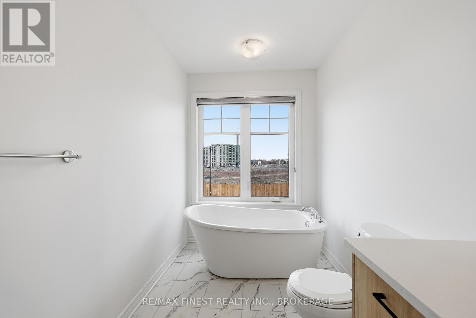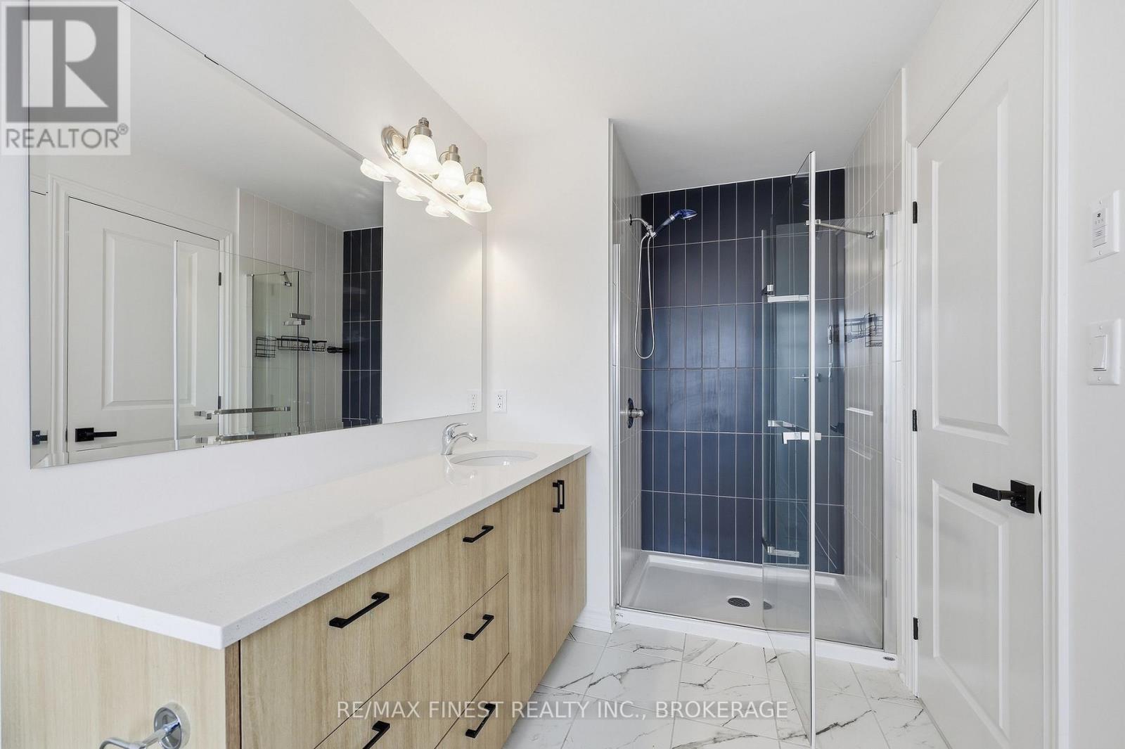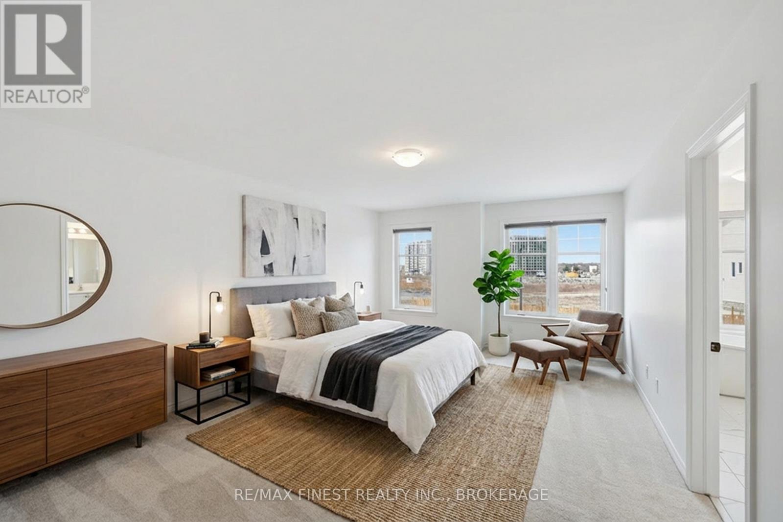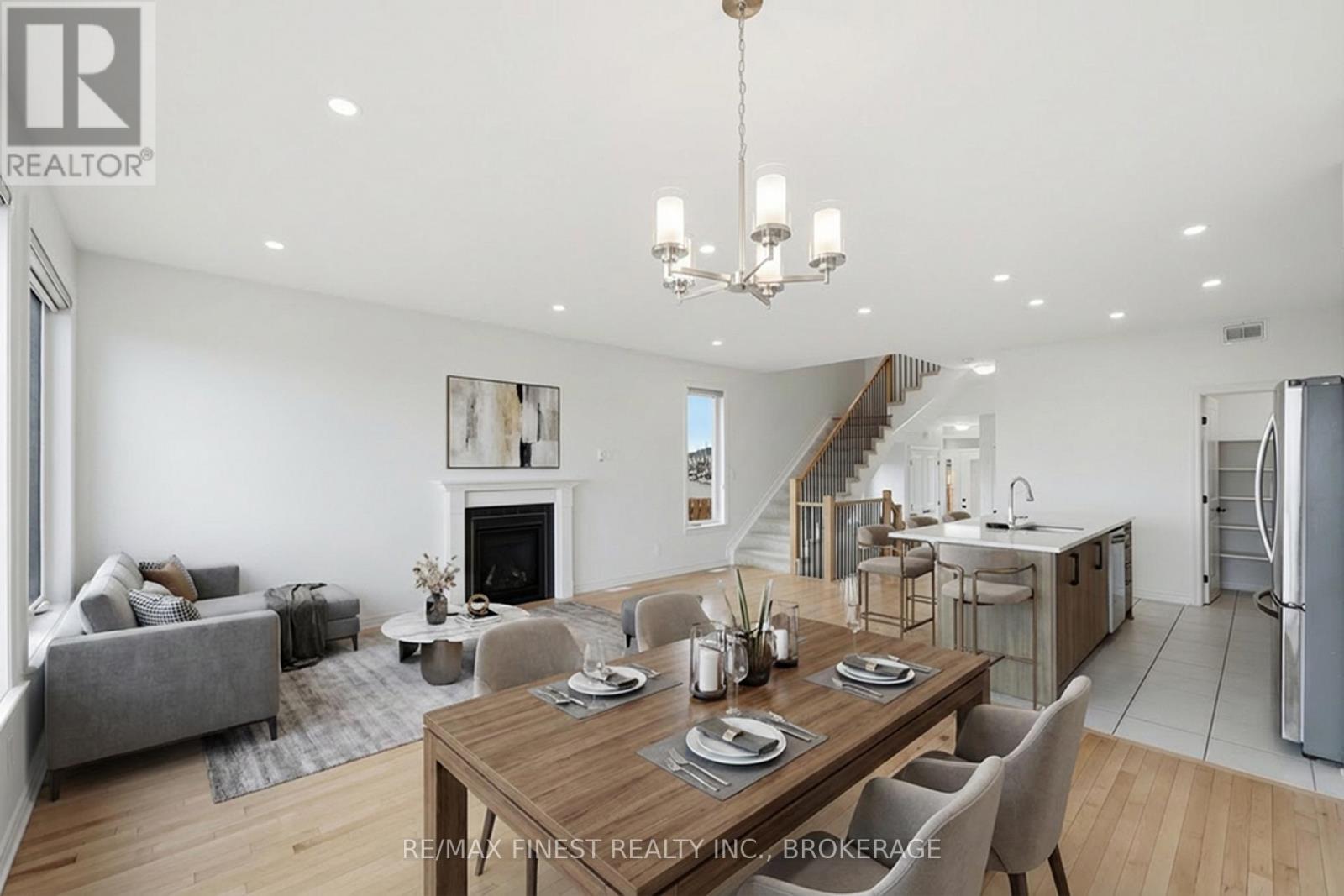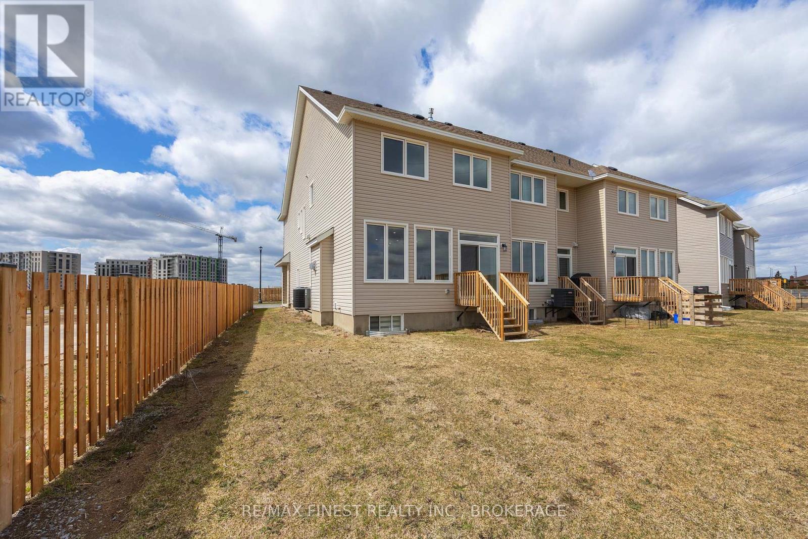This fantastic end unit townhouse is a beautiful home to settle in and enjoy all of the features it has to offer! Impeccably built, with over 2155 sq ft of finished living space on three levels, the neutral and calming design is the perfect place to call your own! The main floor features an open concept design with gas stove, quartz counter tops, tile backsplash, large island, pantry, beautiful kitchen cabinets. There are pot lights throughout the main floor and a cozy gas fireplace in the living room for you to enjoy. On the upper level, the primary bedroom is very spacious and has an amazing walk-in closet with a spa-like ensuite! Soaker tub, custom tiled glass shower & large vanity perfect for storage, finishes it off! The two additional bedrooms also offer fantastic space and have good sized closets for storage. In the lower level you will find a finished rec room that is perfect for movie night, kids play area, office or additional storage space. There is a bonus rough-in for a bathroom as well. This home is also situated on a premium lot that is pie-shaped and has so much space and potential for your summer enjoyment! This property is worth your time to come and take a peek! (id:64974)