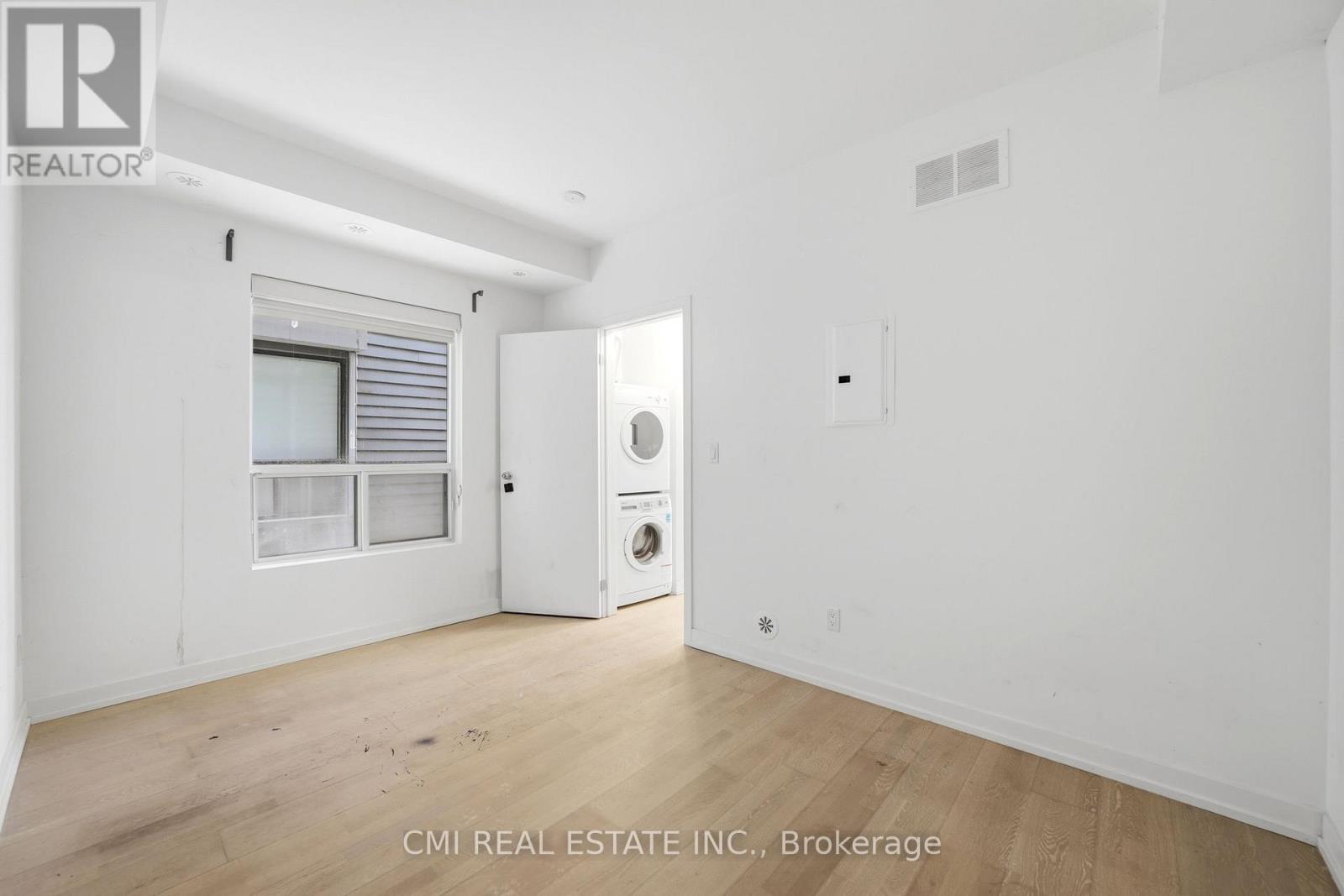 Modern and private one-bedroom condominium in boutique East Village Leslieville. This upgraded end unit features contemporary designer finishes throughout, including engineered hardwood flooring, a sleek kitchen with quartz countertops, custom cabinetry, and thoughtfully selected designer details. Expansive south-facing windows flood the space with natural light. Enjoy outdoor living on the large 112 sq. ft. ground-floor patio with unobstructed southern exposure and peaceful backyard views, complete with a gas BBQ hookup. Ideally located just steps to Leslieville shops, the farmers' market, Michelin Guide-listed restaurants, streetcar access, live music venues, parks, and more. (id:64974)