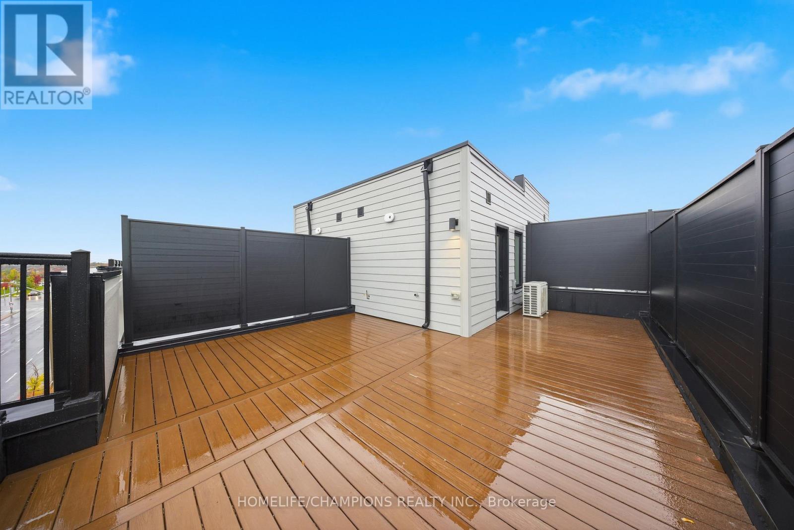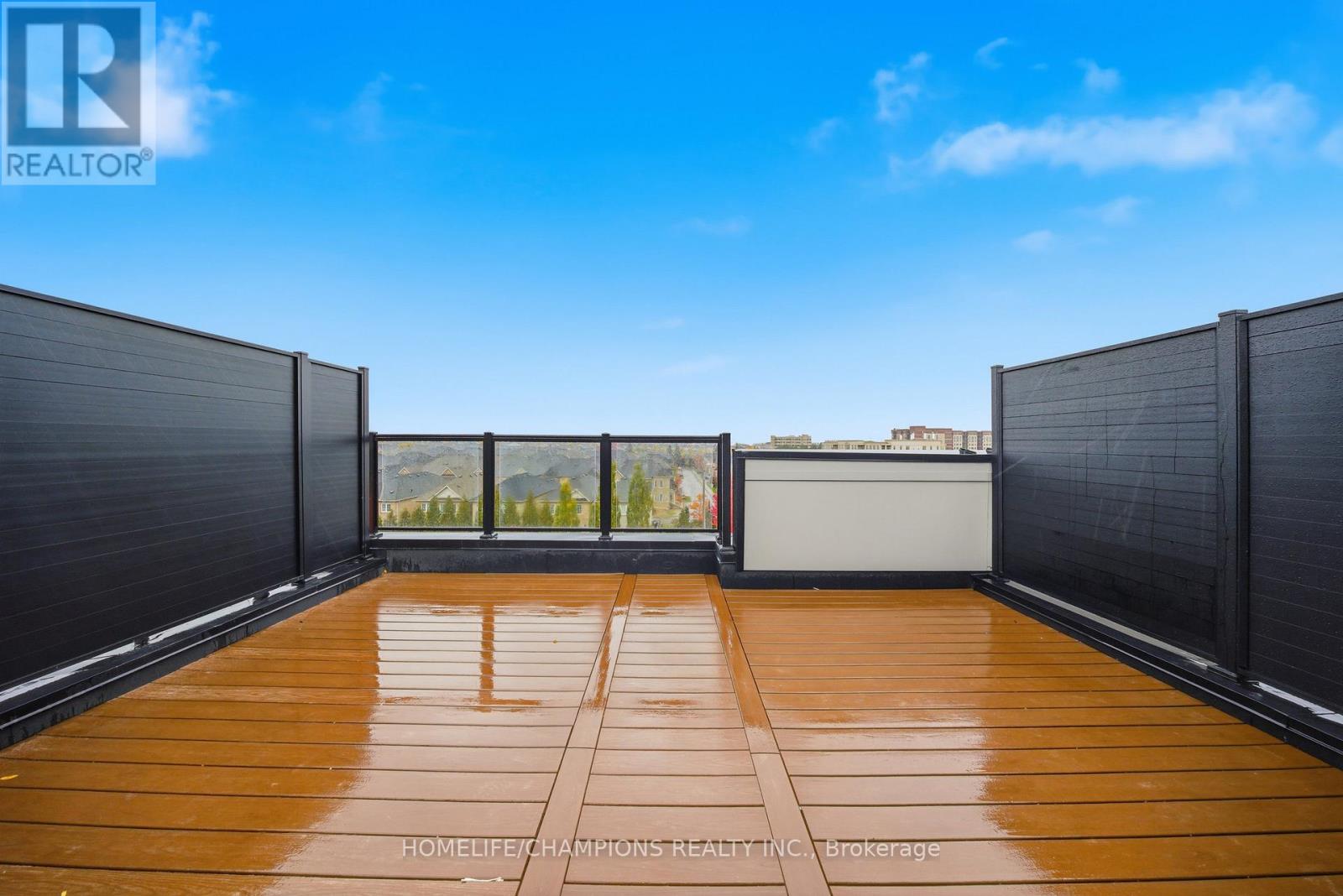 Experience modern living in this beautifully designed, brand-new 3-bedroom stacked townhouse. Featuring contemporary finishes, a smart and functional layout, and balcony or outdoor access on every living level, this home offers exceptional convenience and comfort. The open-concept kitchen is equipped with premium appliances and seamlessly flows into the bright dining and living area. The versatile main-floor bedroom can be used as a third bedroom, guest room, or home office. The primary suite features a sleek ensuite bath, a spacious closet, and large windows that provide abundant natural light. A standout feature is the massive rooftop terrace with BBQ hookups-perfect for gatherings, outdoor dining, and summer evenings. The home also includes a private sun deck, ideal for everyday relaxation or hosting. Located in a desirable community near Markham Rd & Denison St, this townhome offers unbeatable convenience with close proximity to grocery stores, Costco, Walmart, Rona, top-rated schools, parks, shops, TTC, GO Transit, and Hwy 407. (id:65010)