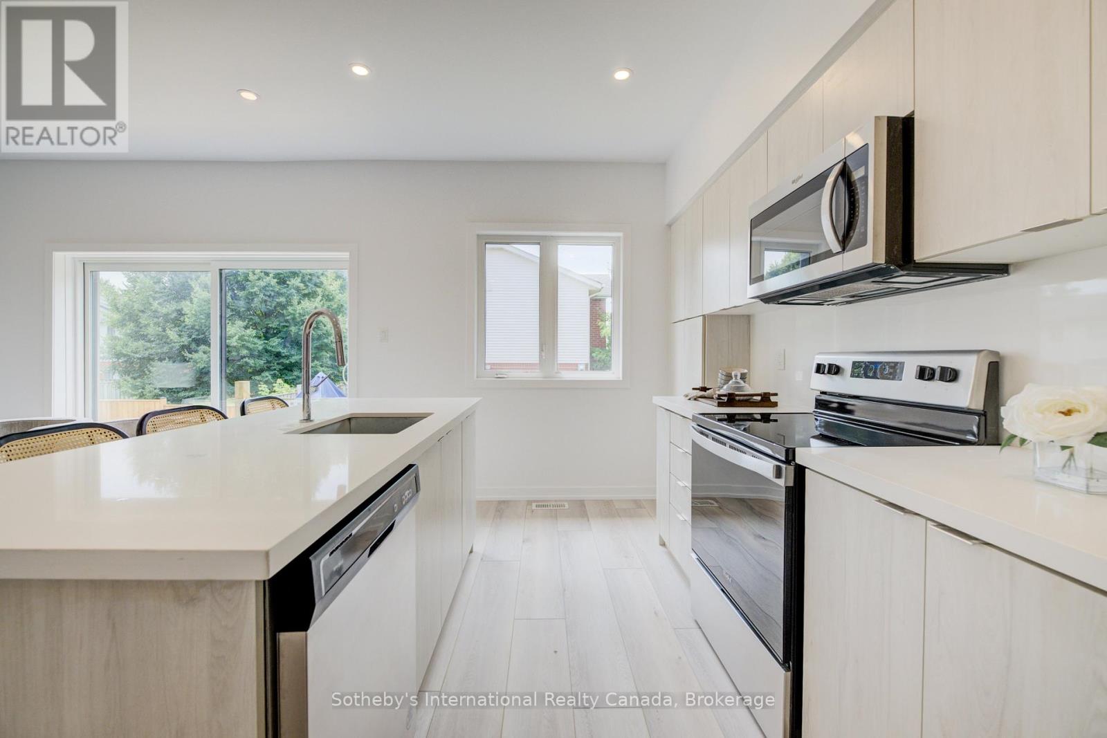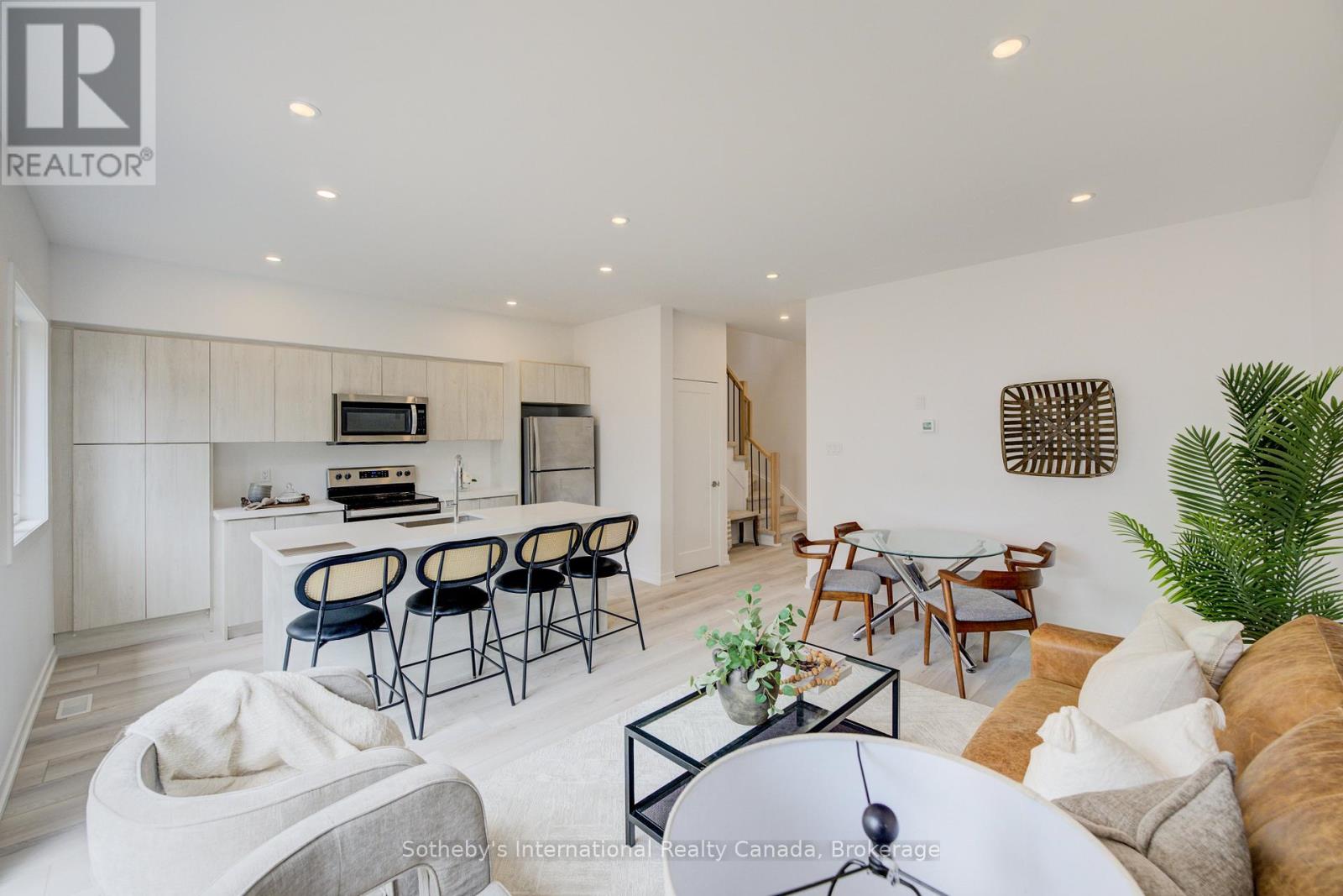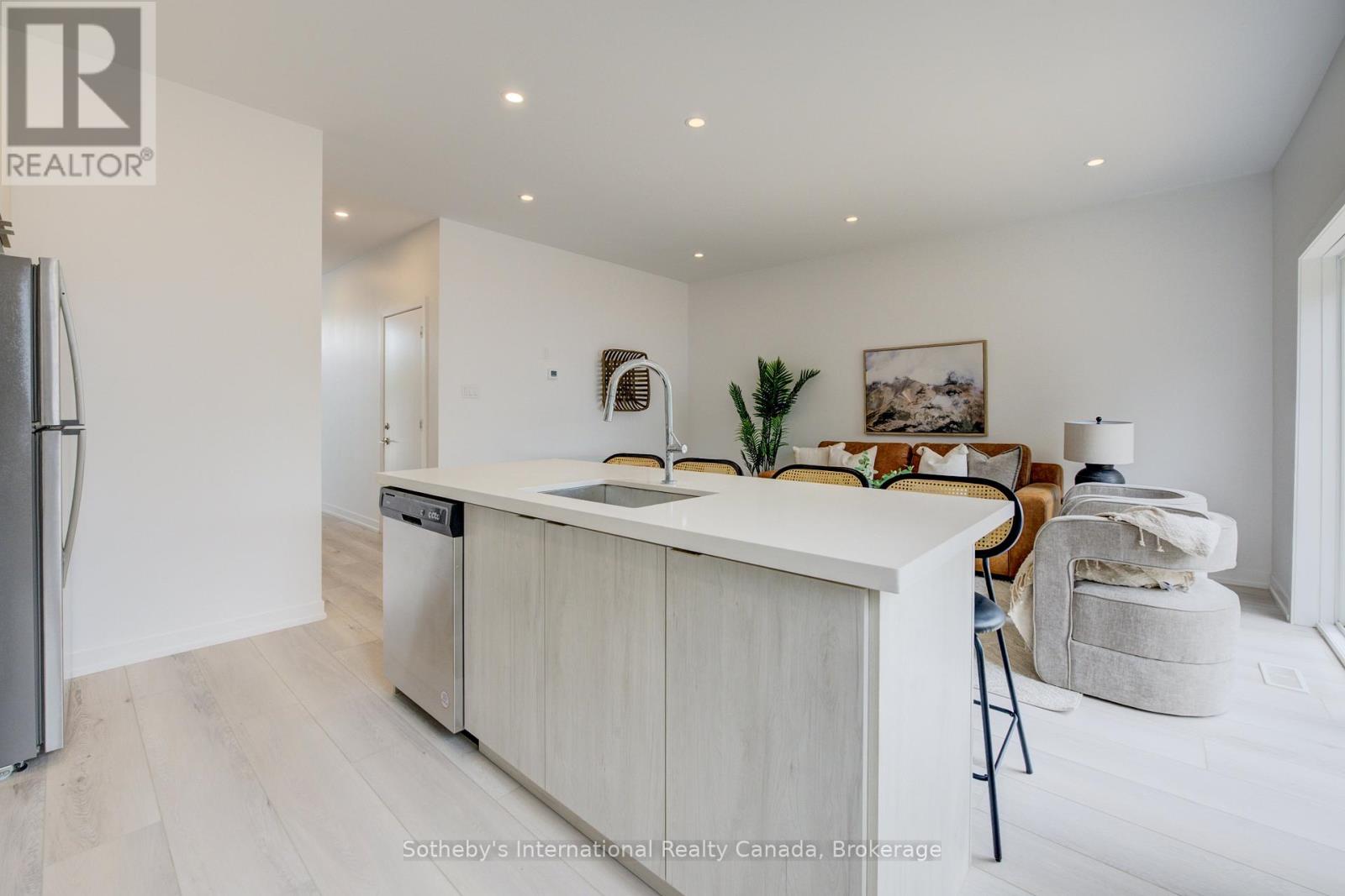 Discover an exceptional, never-lived-in townhouse in a prime Cambridge location. This spacious, contemporary home offers a flexible floor plan with 3 bedrooms and 2.5 baths, boasting high ceilings, modern vinyl flooring, and expansive windows that flood the space with natural light. The thoughtfully designed layout showcases elegant finishes throughout, perfect for young professionals or investors. The gourmet kitchen features quartz countertops, modern cabinetry, a large island, and stainless steel appliances. The primary bedroom provides a serene retreat with an ensuite bath, a double vanity, and his-and-hers closets. Enjoy seamless indoor-outdoor living with a family room that opens to a large deck and private backyard, ideal for relaxation and entertaining. With local shopping, public transit, and schools just steps away, this home offers unparalleled convenience and style. (id:64974)