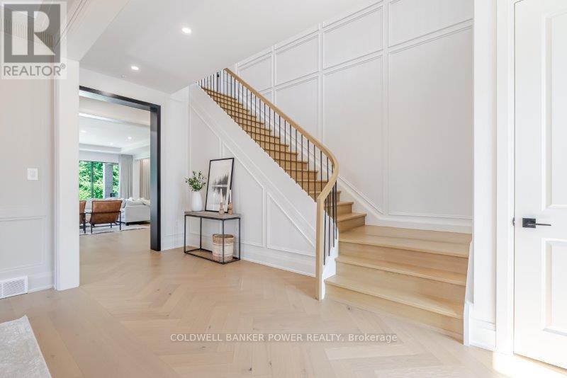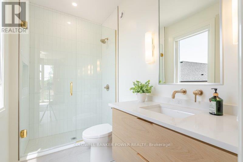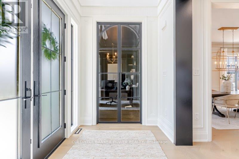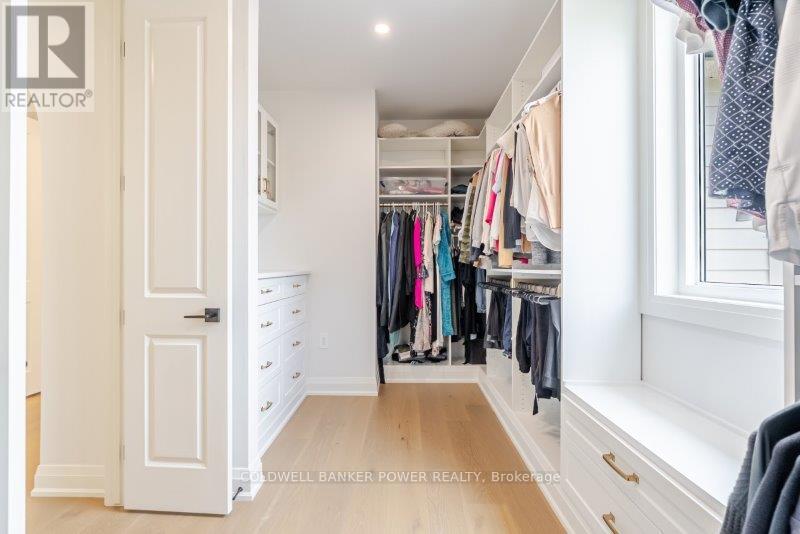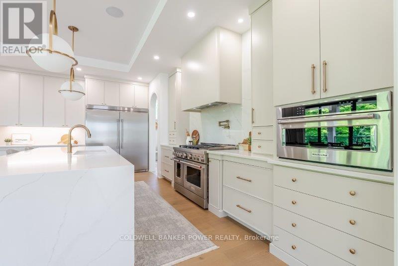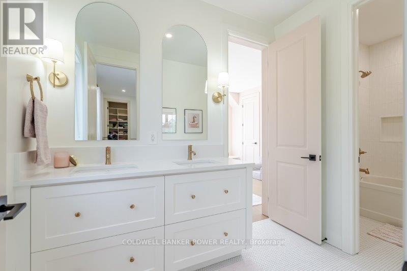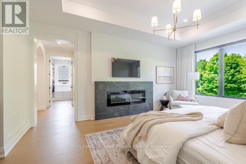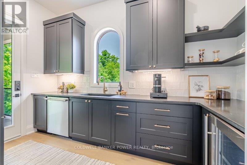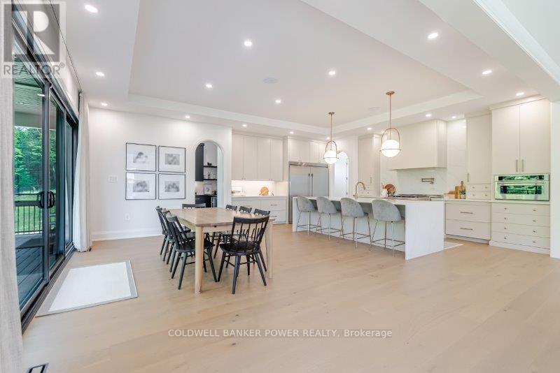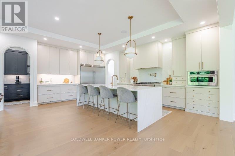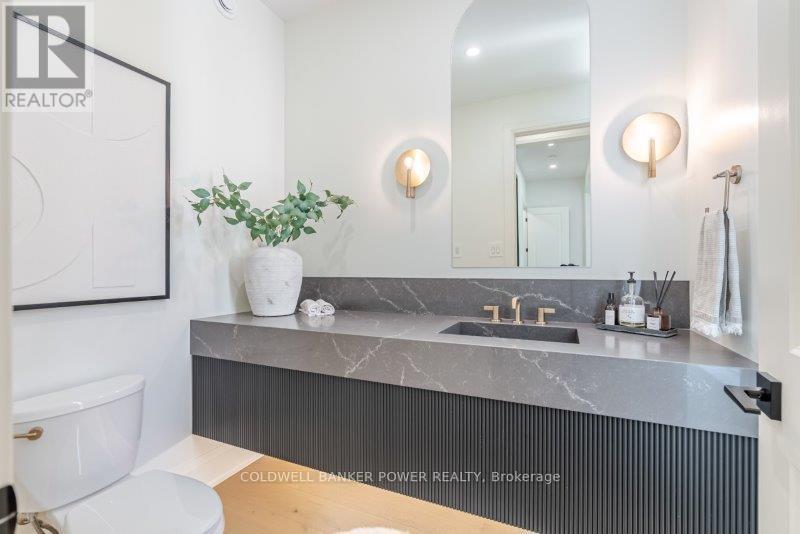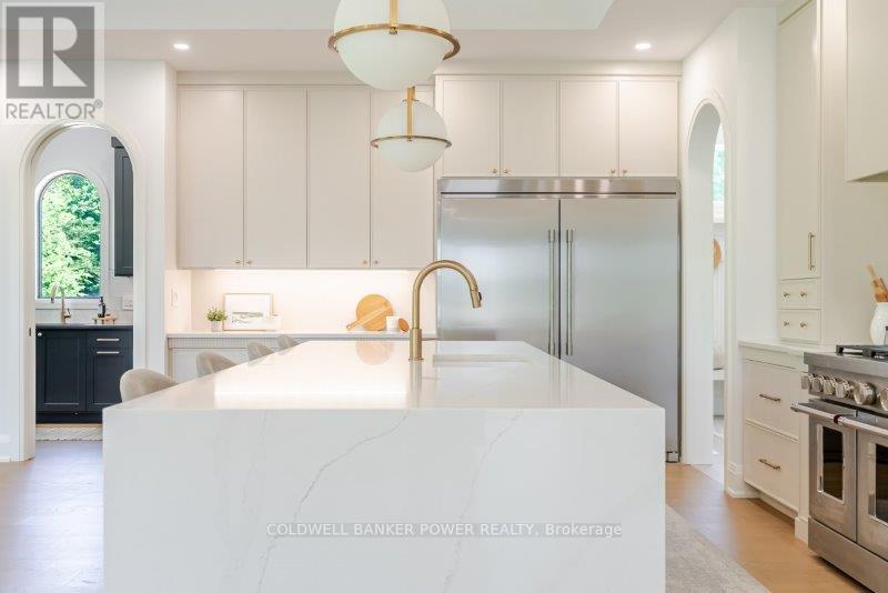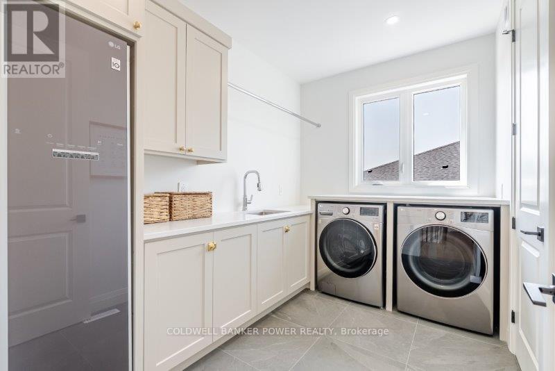 Prepare to be amazed. This 2023 custom built home by MCR Homes is unlike anything else in London. A rare blend of striking architecture thoughtful design & finishes that raise the bar for luxury living. Set on a premium walkout lot backing onto protected green space the home delivers privacy elegance & breathtaking natural views from every angle. Stunning sight lines & finishes is something yo see in person!The front elevation is a showpiece of design with bold roof pitches precast banding & stonework that set the tone for the property. A landscaped front yard finished with low maintenance artificial turf provides a polished welcome that matches the homes exceptional presence.The grand foye rmakes an immediate statement w/ crown moldings detailed trim & a curved staircase over herringbone floors. Off the entrance the office features custom glass doors by Mark Deren built in cabinetry integrated audio & designer window treatments. The formal dining room is framed with coved ceilings.The family room is the center piece. Floor to ceiling windows capture views of the forest filling the space with light. A custom gas fireplace anchors the room. The kitchen crafted by Stoll Brothers includes solid wood cabinetry dovetail boxes high end appliances a large island & separate prep kitchen with walk in pantry. Expansive glass doors open to a covered composite deck for perfect indoor outdoor living.Upstairs 9 & 10 ft ceilings extend across 4 bedrooms each with hardwood walk in closets & access to 3 luxury baths. The primary suite spans the back with gorgeous views a spa inspired ensuite featuring picture window soaker tub curbless shower dual vanities & make up desk. Laundry includes custom built ins & a steamer unit.The finished W/out basement adds a home gym rec room wine cellar stone fireplace & guest suite w: ensuite. Sliding doors lead to a landscaped yard with artificial turf saltwater pool & multiple seating areas. (id:64974)