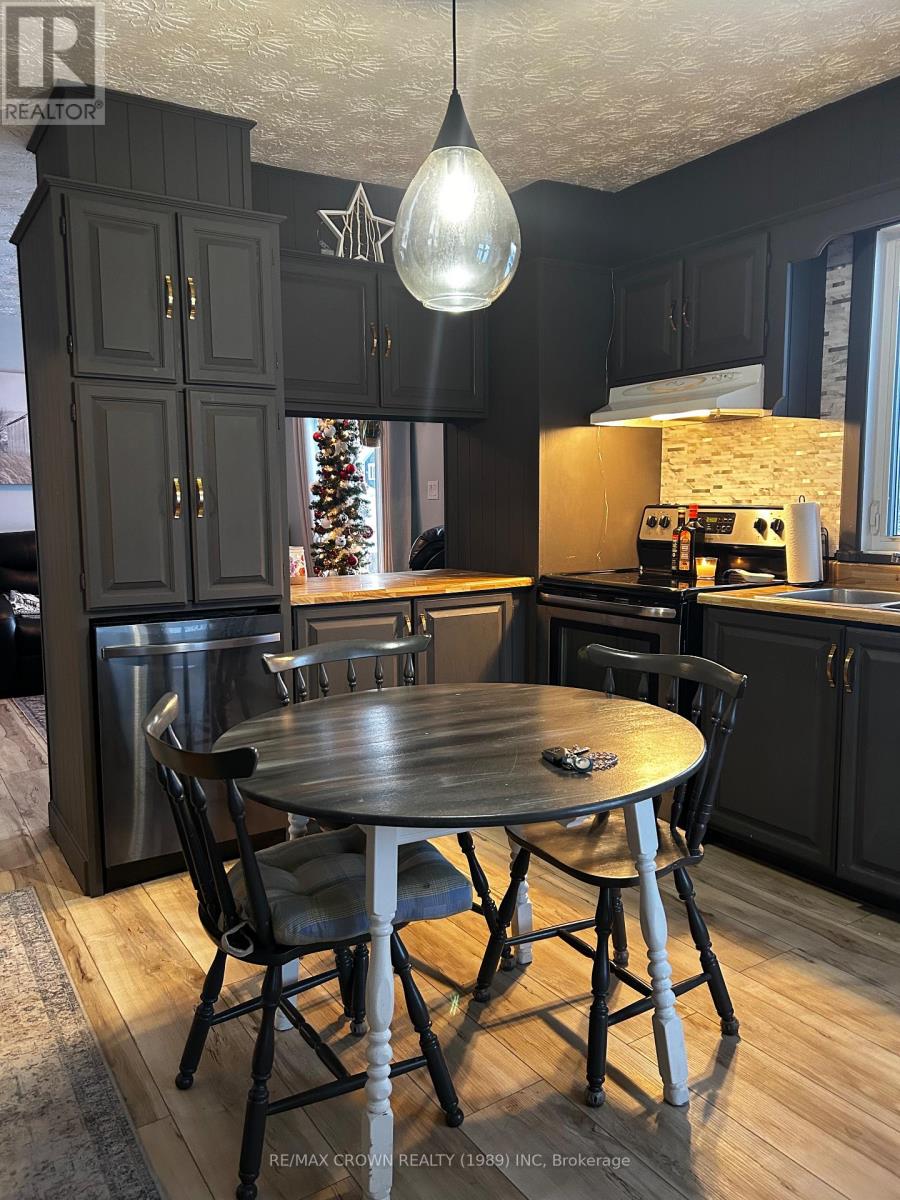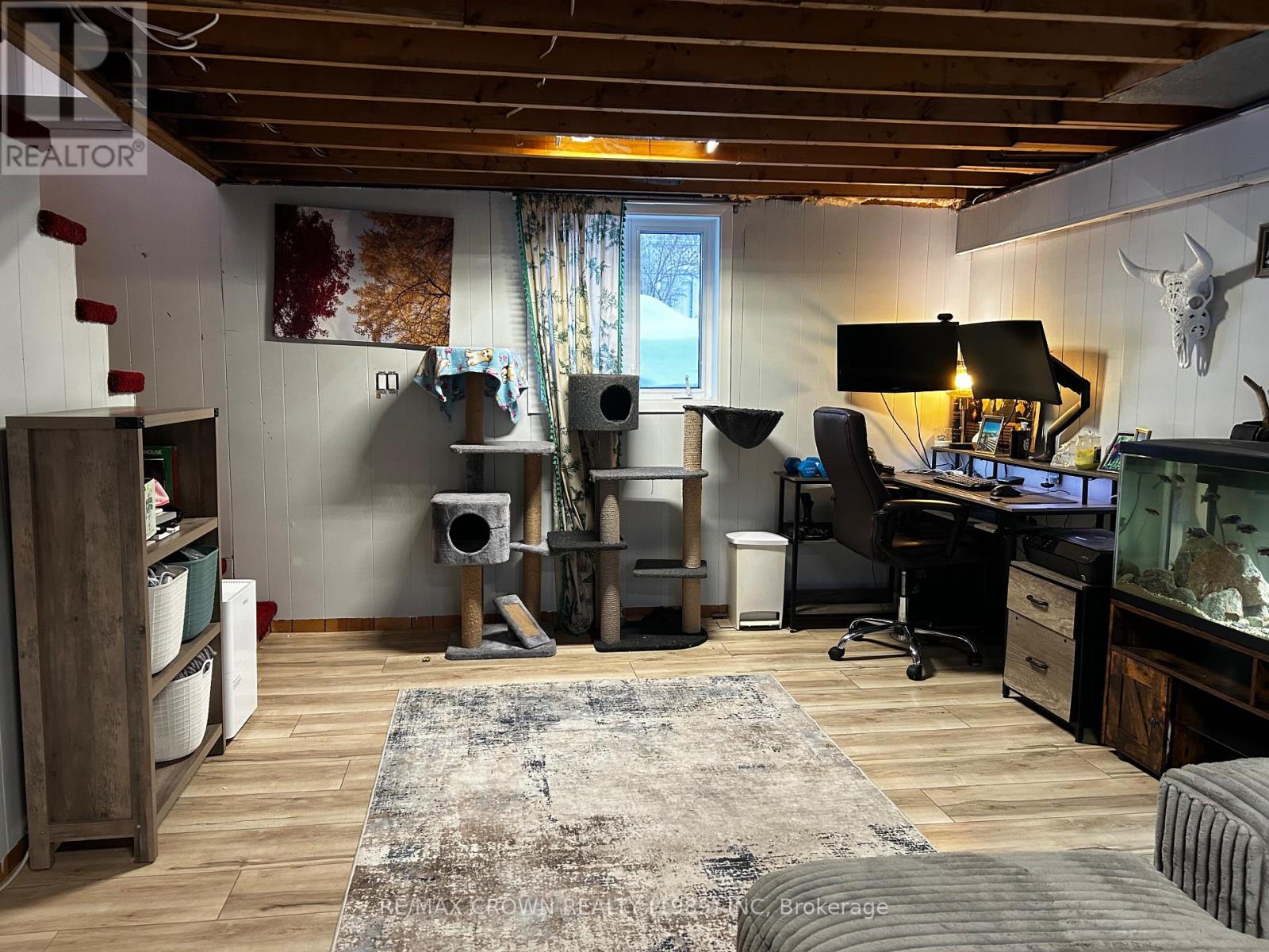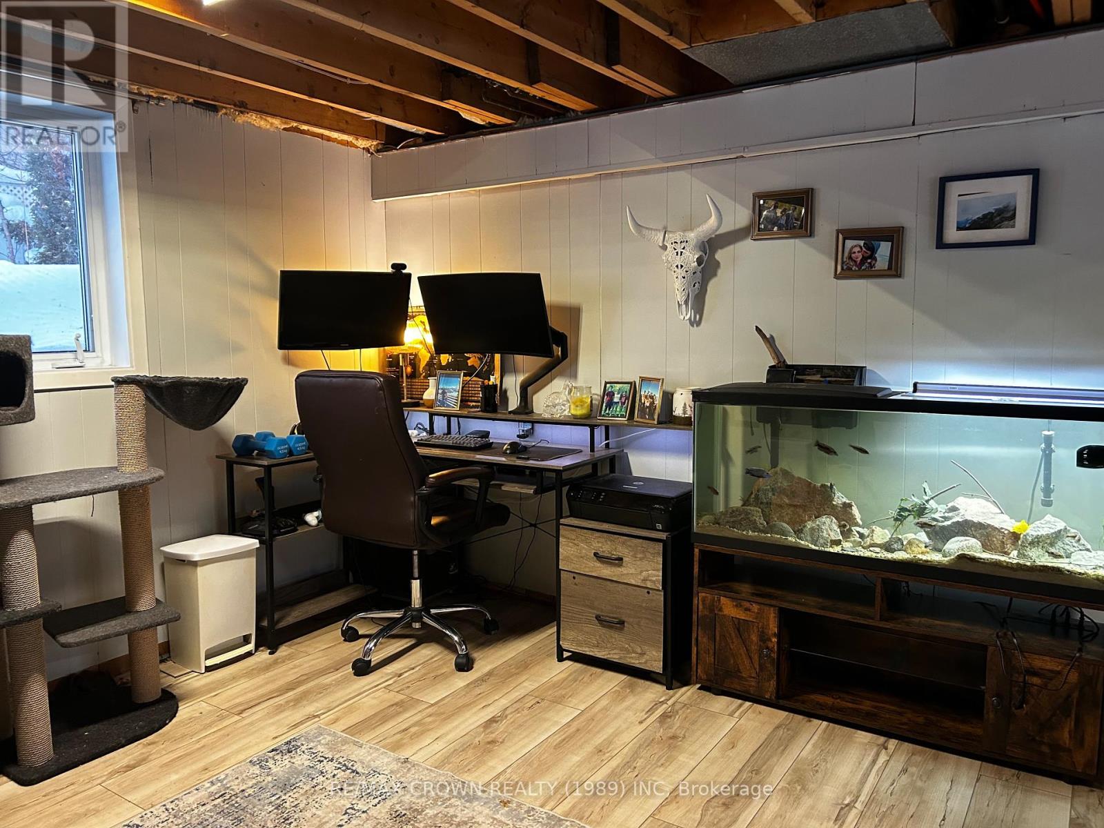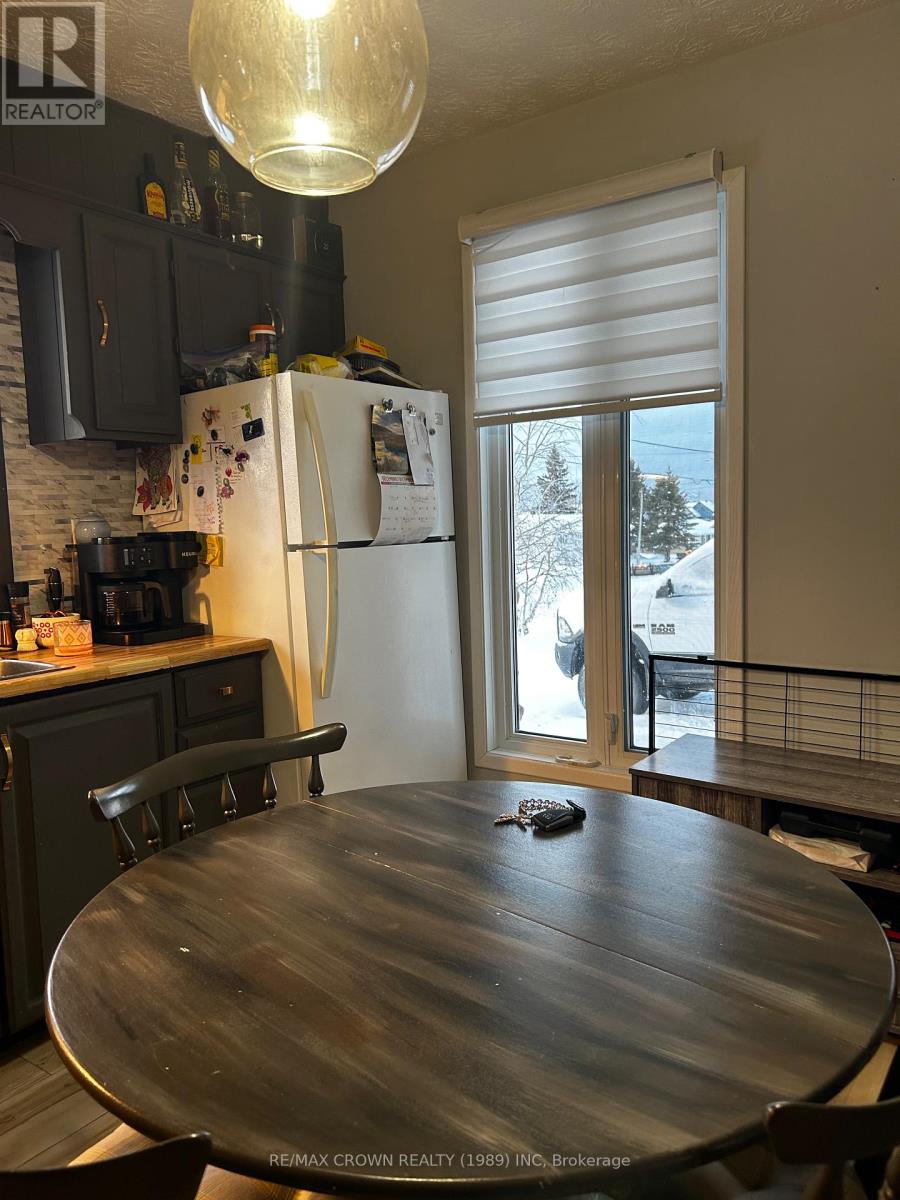 Cosy well-maintained 2+1 Bedroom, 2 Bathroom Brick bungalow located in quiet residential area (Val Albert area) in our beautiful Model Town of Kapuskasing. Main level has a spacious an eat-in kitchen with custom freshley painted cabinets, west facing living room2 Bedrooms and a 4piece bathroom. Finished basement has a family room, laundry area 3rd bedroom and a 2pc bathroom. Forced Air natural gas heating (2006), 100 amps breakers (updated in 1994), roof singles on home replaced in 2021 and on garage replaced in 2014. Detached garage (18x28) insulated and heated (electric heater). Paving stone driveway mature landscaping. Perfect starter home or for someone looking to downsize. (id:64974)