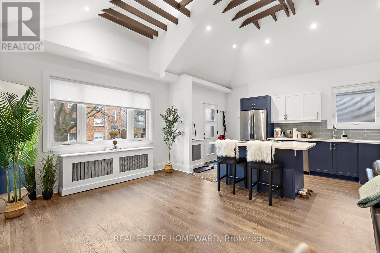 Spectacular fully renovated modern bungalow offering a rare open concept layout unlike anything else in the area. Featuring soaring cathedral ceilings exceeding 15 feet across the main level, this home feels incredibly spacious and truly exceptional. Boasting 2 modern kitchens on the main floor and basement, both updated within the last 5 years with appliances, along with 2 beautifully renovated bathrooms including heated floors. Gorgeous engineered hardwood flooring, baseboards, trim, windows, doors and more. This home truly shows pride of ownership. The fully finished basement offers excellent income or multi generational living potential, complete with a separate side entrance, full kitchen and full bathroom. Additional upgrades include a newer roof re-shingled within the last few years, a brand new high efficiency boiler system installed within the past year with a 10 year warranty, new glass shower enclosures, updated bannister, and extensive exterior improvements including a new deck, fencing and landscaping. Brand new built-in shelving in massive basement laundry area, great for storage! Detached garage at the rear provides parking for up to two vehicles. The property also presents an exciting opportunity for future development! The lot is well suited for a detached garden suite under current Toronto zoning regulations, with a preliminary review indicating no major regulatory barriers, offering strong long-term value and potential for income or family expansion! A turnkey opportunity showcasing exceptional craftsmanship throughout! This is an absolute must see! See attachments for existing floorplans and preliminary ADU information! (id:64974)