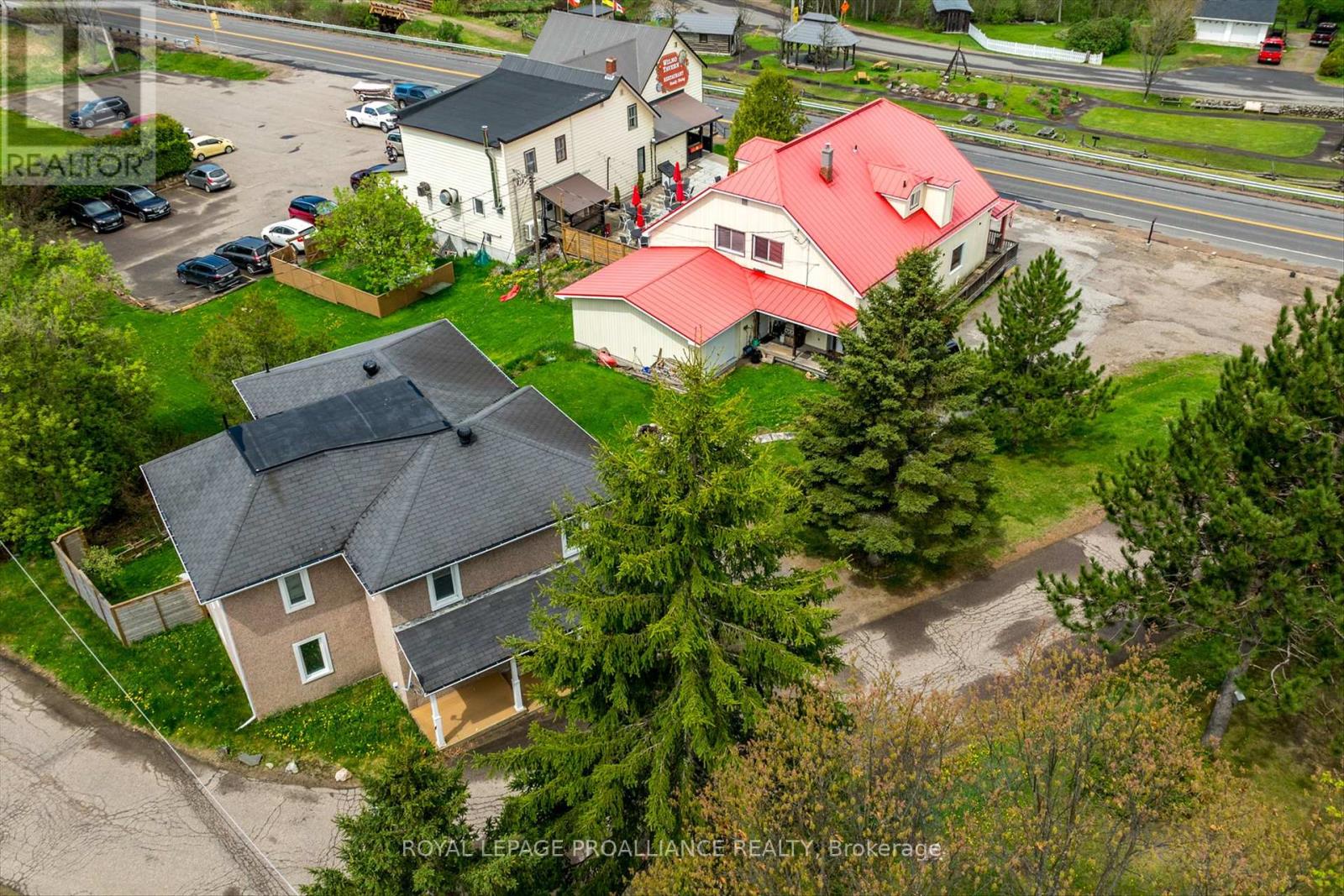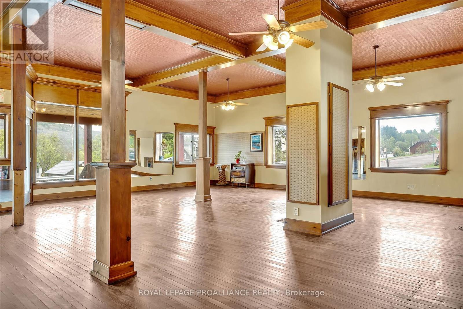 Incredible Turnkey Opportunity on Highway 60 in Wilno, Ontario. Welcome to a rare and exceptional offering in the heart of Wilno - two turnkey buildings on a high-visibility stretch of Highway 60, both included in the price! Whether you're an owner/operator ready to launch your dream business or a savvy entrepreneur looking for a versatile investment, this property delivers unmatched potential. Building One - Commercial Storefront + Apartment. This stunning highway-facing commercial space features soaring ceilings, gorgeous wooden beams and posts, and expansive front windows that flood the space with natural light. With beautiful hardwood floors, a walk-in refrigerator, and a heated, insulated garage, it's perfectly set up for retail, food service, or a studio. A 400 sq ft loft overlooks the main floor, offering flexible space for office use or additional display. Above the commercial unit is a bright and inviting one-bedroom apartment, ideal for live-work convenience or rental income. Building Two - Spacious Country Home - Tucked privately behind the storefront is a charming and meticulously finished 4-bedroom, 3-bathroom home with over 2,100 sq ft of living space. Highlights include a custom kitchen with stainless steel appliances and an island, hardwood flooring, propane fireplace, main floor laundry, and on-demand hot water heater. The primary suite features a luxurious 4-piece ensuite, and the wrap-around porch provides the perfect space to relax and enjoy the peaceful country setting. A Rare Find in Cottage Country. This unique property offers endless possibilities, operate your business up front while enjoying the comfort of a beautiful home in the back, or rent both spaces for solid income potential. Don't miss your chance to own this one-of-a-kind package in a thriving, high-traffic location. Book your private showing today and unlock the potential of this exceptional Wilno property! (id:64974)