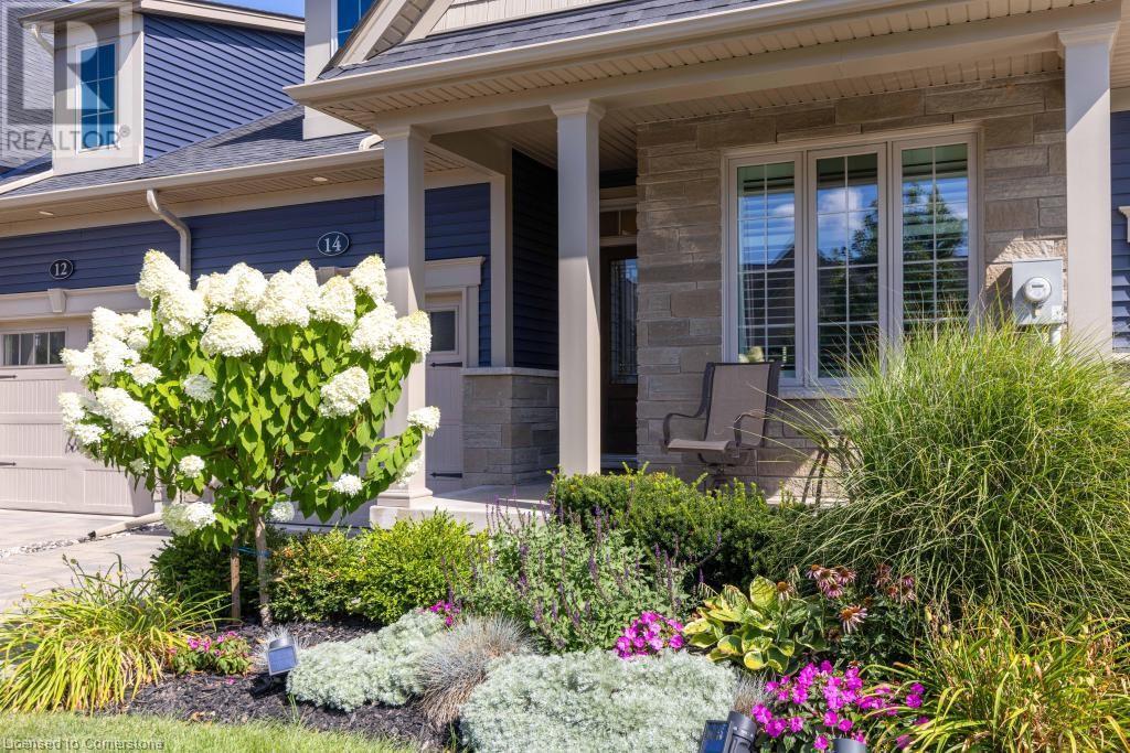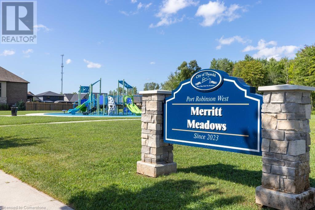 Welcome to your dream home in the coveted Merritt Meadows community! This Rinaldi-built luxury bungalow townhome perfectly blends elegance and comfort. The thoughtfully designed layout includes two main-floor bedrooms, two full bathrooms, and convenient laundry. The open-concept kitchen features premium cabinetry, a stylish backsplash, quartz countertops, and an expansive island for entertaining. The master suite is a retreat with an ensuite bathroom, walk-in shower, double sinks, and a spacious walk-in closet. Neutral hardwood flooring extends from the master bedroom to the great room, dining room, hallway, and front office/bedroom. The fully finished custom lower level (2021) adds two more bedrooms, a full bathroom, and a large recreation room, ideal for gatherings or a home theater. Step outside to your private courtyard with a covered rear deck, low-maintenance backyard, aggregate patio, and manicured gardens. Additional highlights include a front porch, single-car garage with inside entry, custom rod iron railings, and a double gas line for your BBQ or outdoor fireplace. Experience unparalleled quality and craftsmanship at Merritt Meadows! (id:64974)