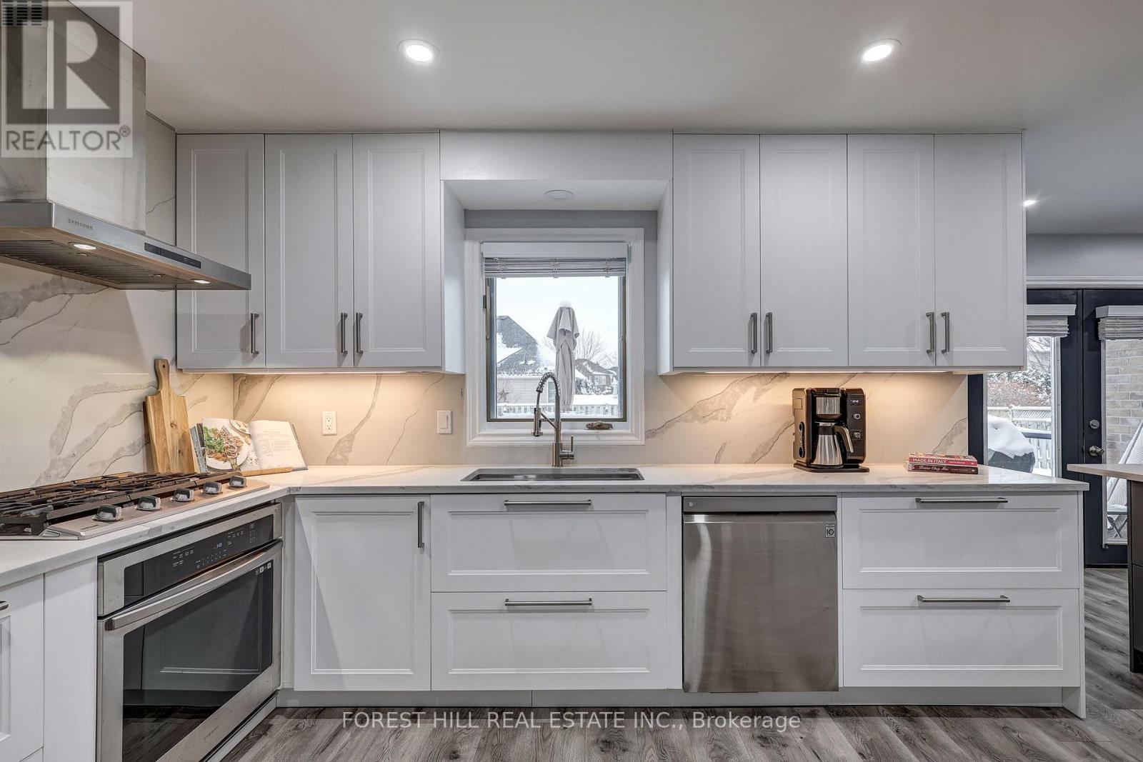 Where Luxury Meets Lifestyle: Gourmet Kitchen, Private Office & Resort-Style Backyard with Heated Pool. This 4-bedroom, 5-bathroom home has been thoughtfully designed for modern living and entertaining. At the front of the house, a perfectly positioned private office offers quiet and privacy-ideal for working from home or studying. The heart of the home is a gourmet chef's kitchen, complete with a massive island, premium appliances, sleek quartz countertops, and custom built-ins-perfect for family meals or entertaining friends. The main floor is bright and inviting, featuring a vaulted ceiling in the family room, a cozy gas fireplace, a large walk-in pantry, and elegant built-ins. Retreat to the upgraded spa-like 5-piece ensuite, or enjoy one of the other beautifully renovated bathrooms, each designed with comfort and style in mind. Walk-in closets in most bedrooms add practical luxury throughout.There is no shortage of storage in this home! The fully finished lower level offers a separate entrance from the garage, a full kitchen, expansive family room with electric fireplace, a games area, exercise space, and a large cold cellar. This space can immediately function as an accessory unit or in-law suite, providing flexibility for multi-generational living, hosting guests, or generating rental income. Car enthusiasts and hobbyists will appreciate the oversized gas-heated garage with dedicated workshop space or storage for a boat or motorcycle. A private backyard oasis: tiered decks, bar area with built-in gas BBQ, mini-fridge, stereo, heated inground pool, two storage sheds, lush gardens, and plenty of grassy space for play or relaxation. It's the ultimate setting for summer entertaining or quiet evenings at home. Additional updates include 50-year shingles (2016), upgraded R60 insulation (2019), furnace (2019), and central air (2020). Every detail has been thoughtfully maintained and upgraded, making this home truly move-in ready. (id:64974)