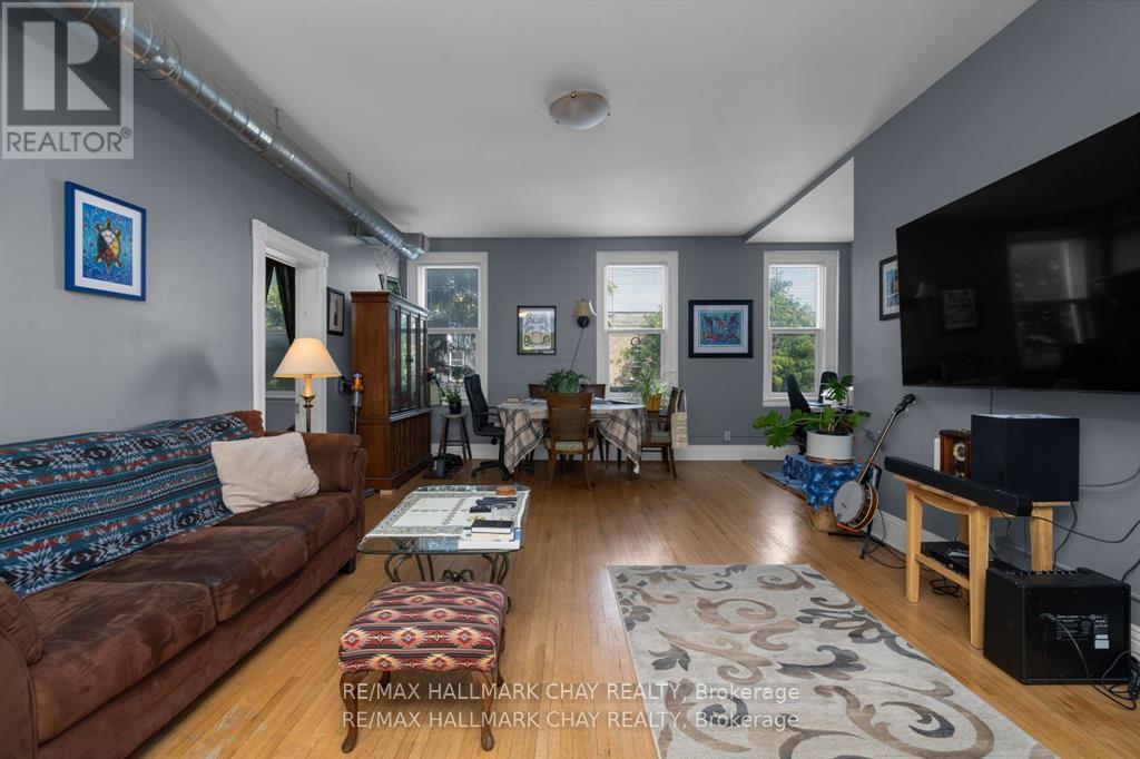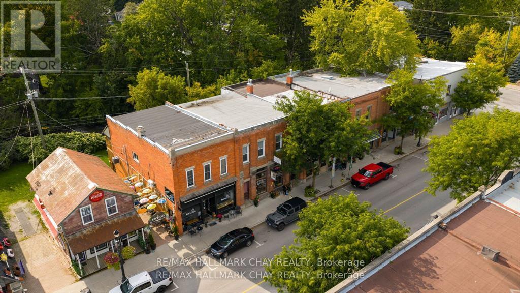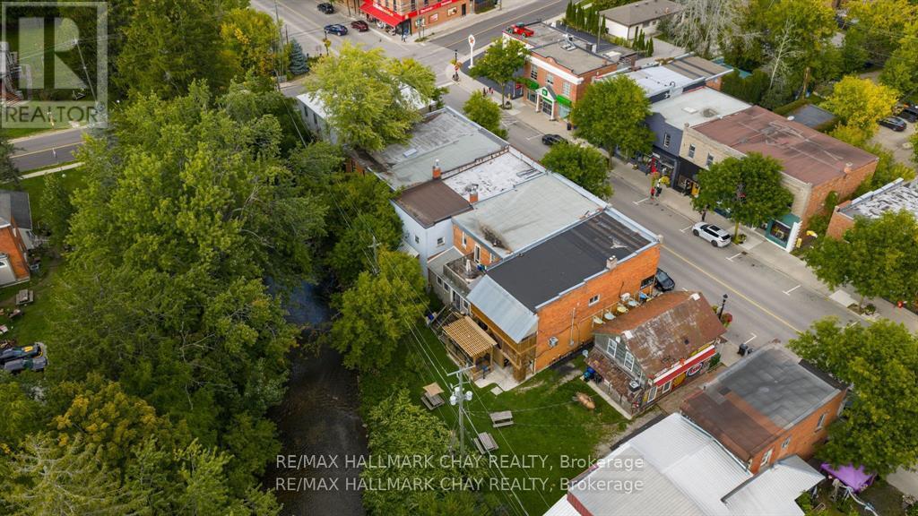 Century commercial building backing onto Coldwater River in the business heart of the Town of Coldwater. Lots of character and charm in this building. This multi use building offers retail on the mail level and a 2 bedroom plus den apartment on upper. The main floor retail space has 12 foot ceilings and a sunroom addition with a walk out to the scenic river. There is also an unfinshed dry basement with a 2 pc bathroom and great storage. The upper apartment also has high ceiling, laundry in suite and a walk out to the deck from the kitchen. 2 A + tenants who would like to continue to rent. All appliances included. Separate meters and furnaces for both units. (id:64974)