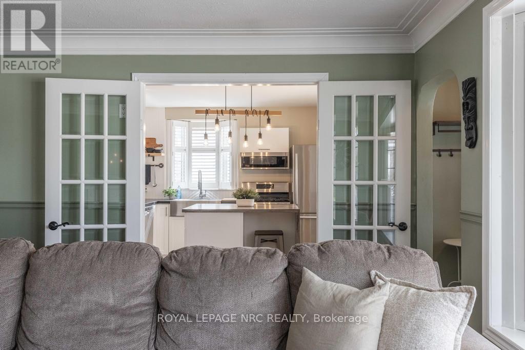 Classic charm, generous space, and the kind of thoughtful details that make a house feel like home come together at 14 Duncan Drive. A huge covered front porch sets the tone, creating a quiet place to sit, watch the seasons change, and enjoy the friendly rhythm of a well-loved neighbourhood. Inside, a foyer opens into a bright main floor where large windows draw in natural light. The living room centres around a fireplace and a bay window that bring warmth and character to the space. Just beyond, the dining room is ready for everyday meals and special gatherings, with sliding doors leading directly to the covered deck and backyard. The kitchen pairs style with everyday ease, featuring stainless steel appliances, modern lighting, open shelving, and a large island with storage. Two pantries provide extra room for organization, helping the space keep pace with busy family life. A spacious 4-piece bath completes the main floor with a separate soaker tub and stand-alone shower. Upstairs, two large bedrooms bring comfort and personality. The primary bedroom stands out with a fireplace, walk-in closet, and a cozy nook that could be a reading corner or creative space. The second bedroom is equally generous with a closet and plenty of room to grow. The basement expands the living space with a rec room, bedroom, and laundry area. Distinctive features like French doors, California shutters, and a skylight contribute to the home's timeless character. Outside, the space is ready for gatherings and everyday living. A 6-car drive leads to a detached 2-car garage, with additional storage in the backyard shed. The fenced yard includes a covered deck, patio, and a second covered patio off the garage, creating plenty of room for summer dinners, celebrations, and relaxed evenings at home. Set in a family-friendly St. Catharines neighbourhood close to schools, parks, and amenities, this is the kind of home where everyday moments settle in and lasting memories are made. (id:64974)