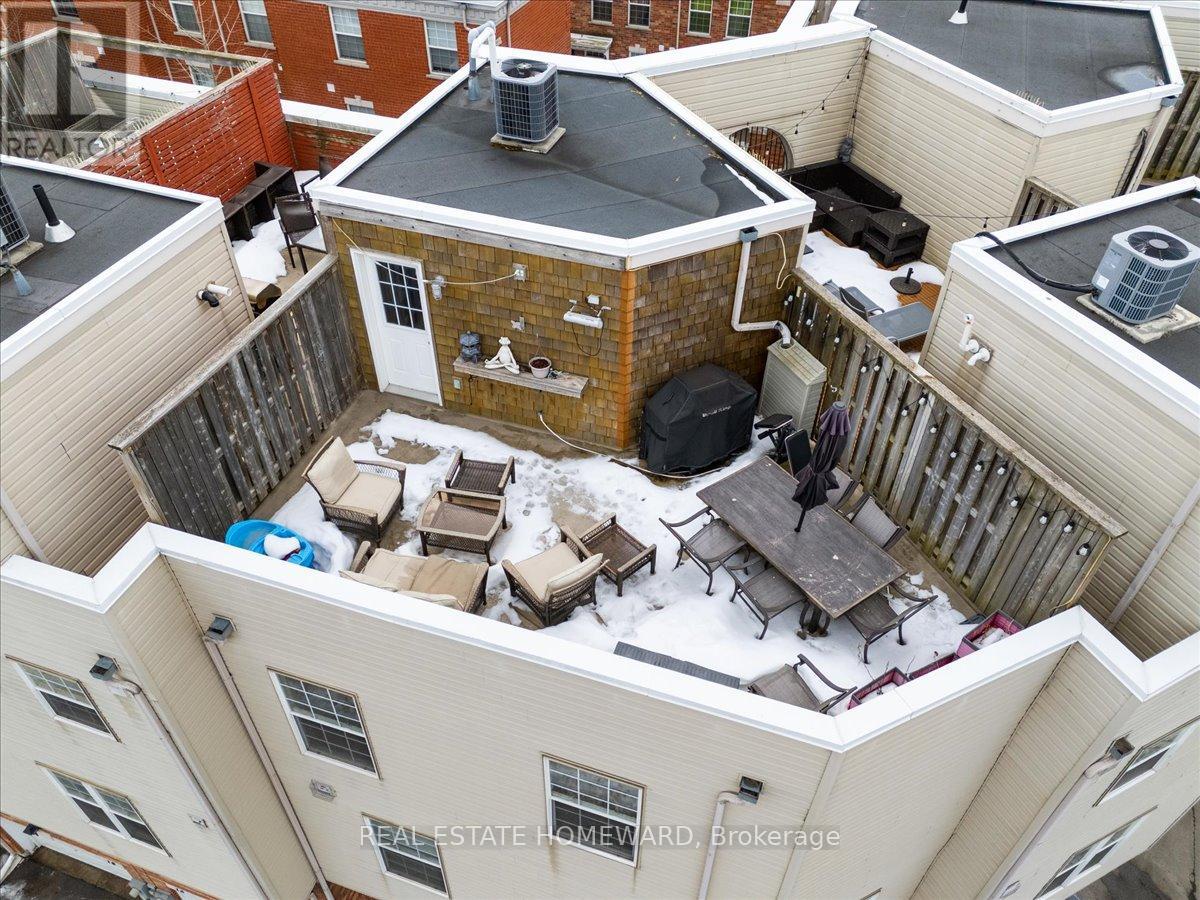Welcome to 14 Fairhead Mews! Corner Unit (Making it one of the Largest Layouts in the Complex) 3-Storey Townhome with a Fabulous N/W facing roof top terrace perfect for family gatherings or quiet evenings enjoying the sunset. A unique, freshly painted, main floor layout with 9ft ceilings, a Juliette balcony, an open kitchen with extra tall cabinets for additional storage and updated SS appliances. Second floor offers 2 generous sized rooms (freshly painted) and a bathroom with sep shower and tub. The 3rd floor primary oasis has walk-in closet, 2 windows for extra brightness, and a 5pc ensuite with his/hers sinks and separate tub and shower. Upper level offers a kitchenette with a beverage fridge and microwave making entertaining on the large open terrace more convenient. Direct access to your car (without having to go outside!) from the basement with garage door opener. And with no snow shovelling to worry about, this home has all the conveniences of a house, without the outdoor maintenance. Highly walkable area with a Walking Score of 81, walk to grocery stores, community centre, library, 5 min to the Danforth GO (which passes every 15 min in rush hour and gets you downtown in 15 min), 10min to Main St Subway station. Monthly Fee of $367 includes snow removal, garbage/recycling, maintenance of common areas, and visitor parking. See Virtual Tour & Floor Plans for room measurements. (id:64974)